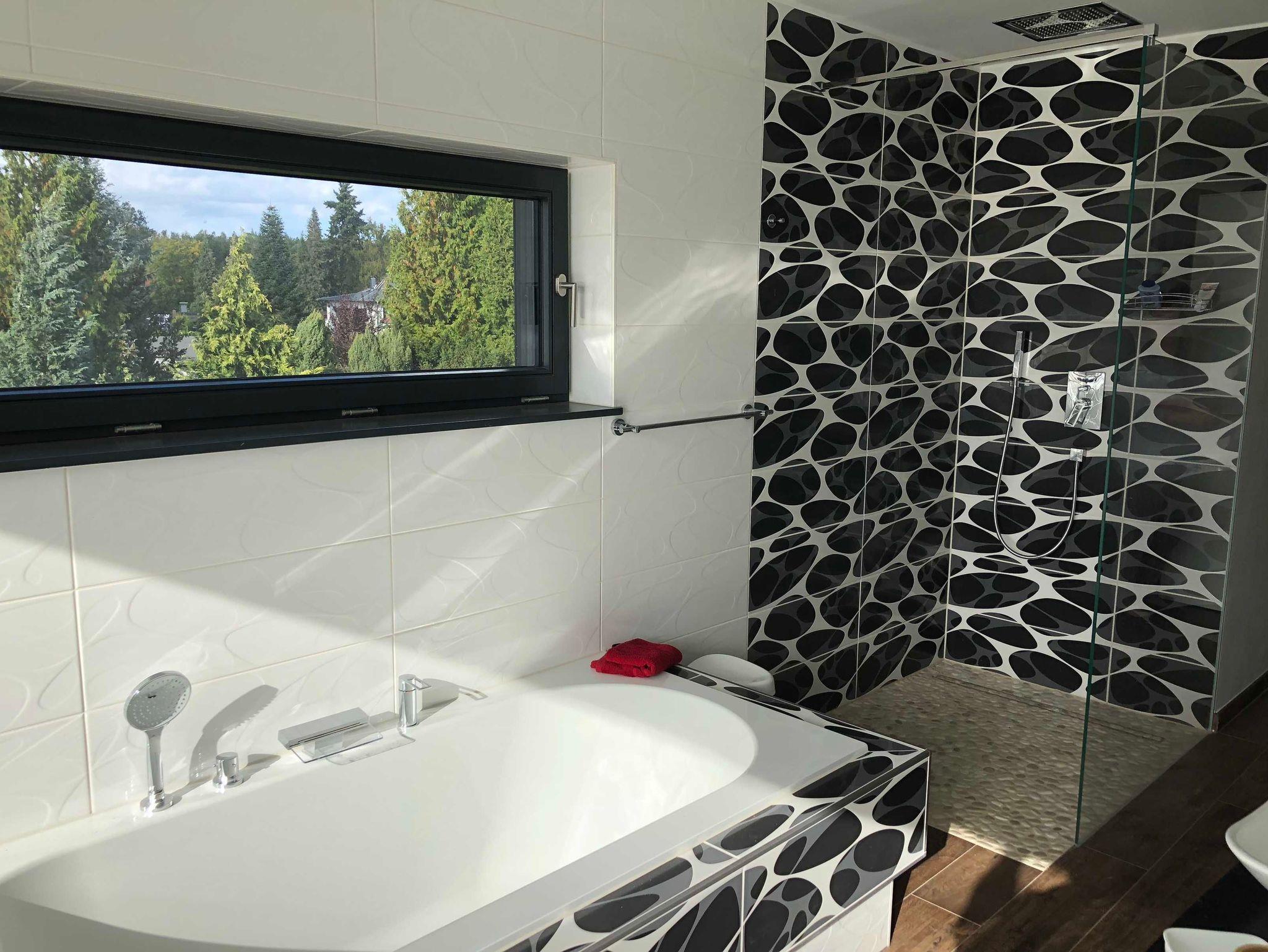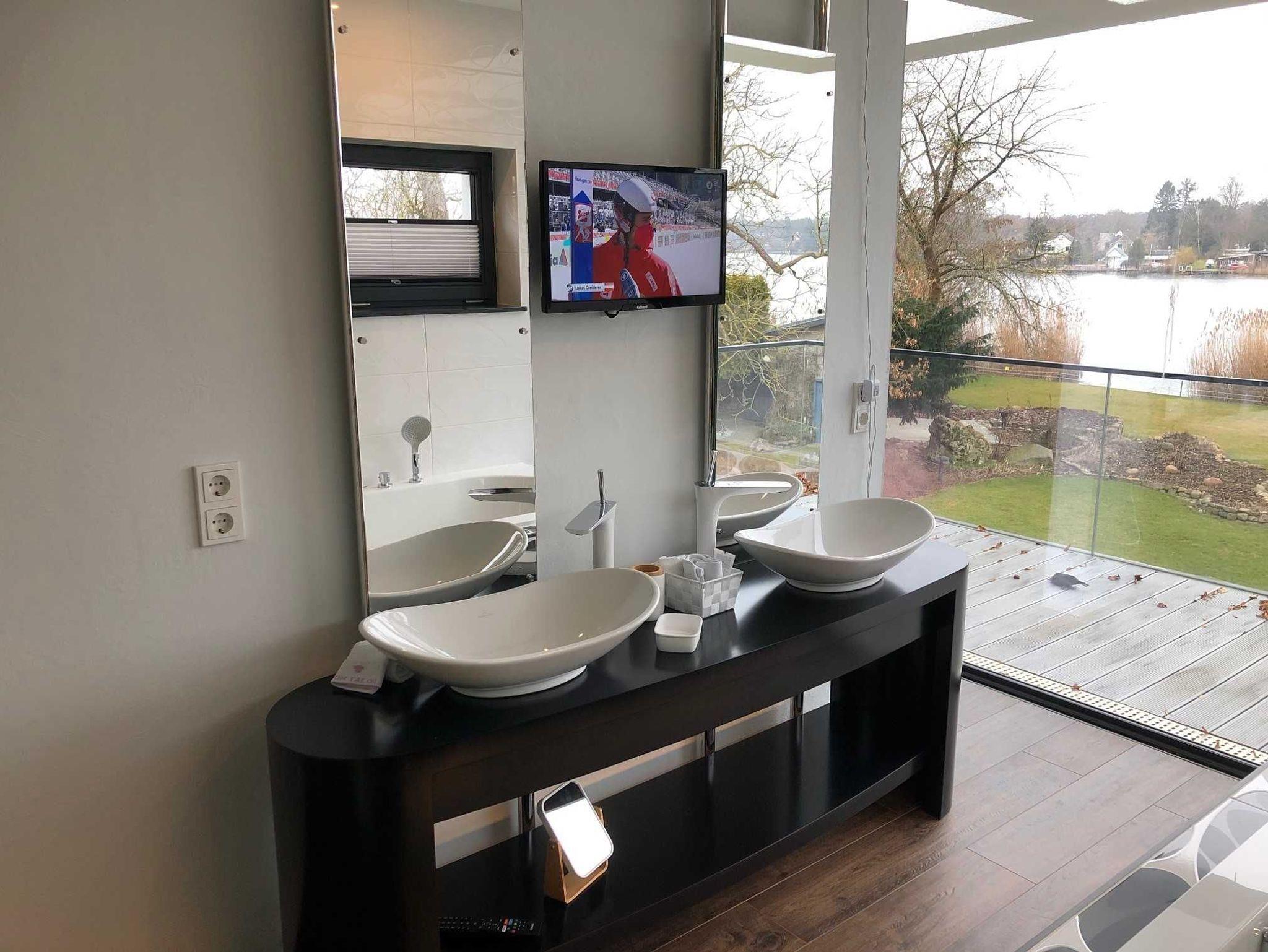 Im Masterbad kann man aus der Badewanne auf den See schauen.