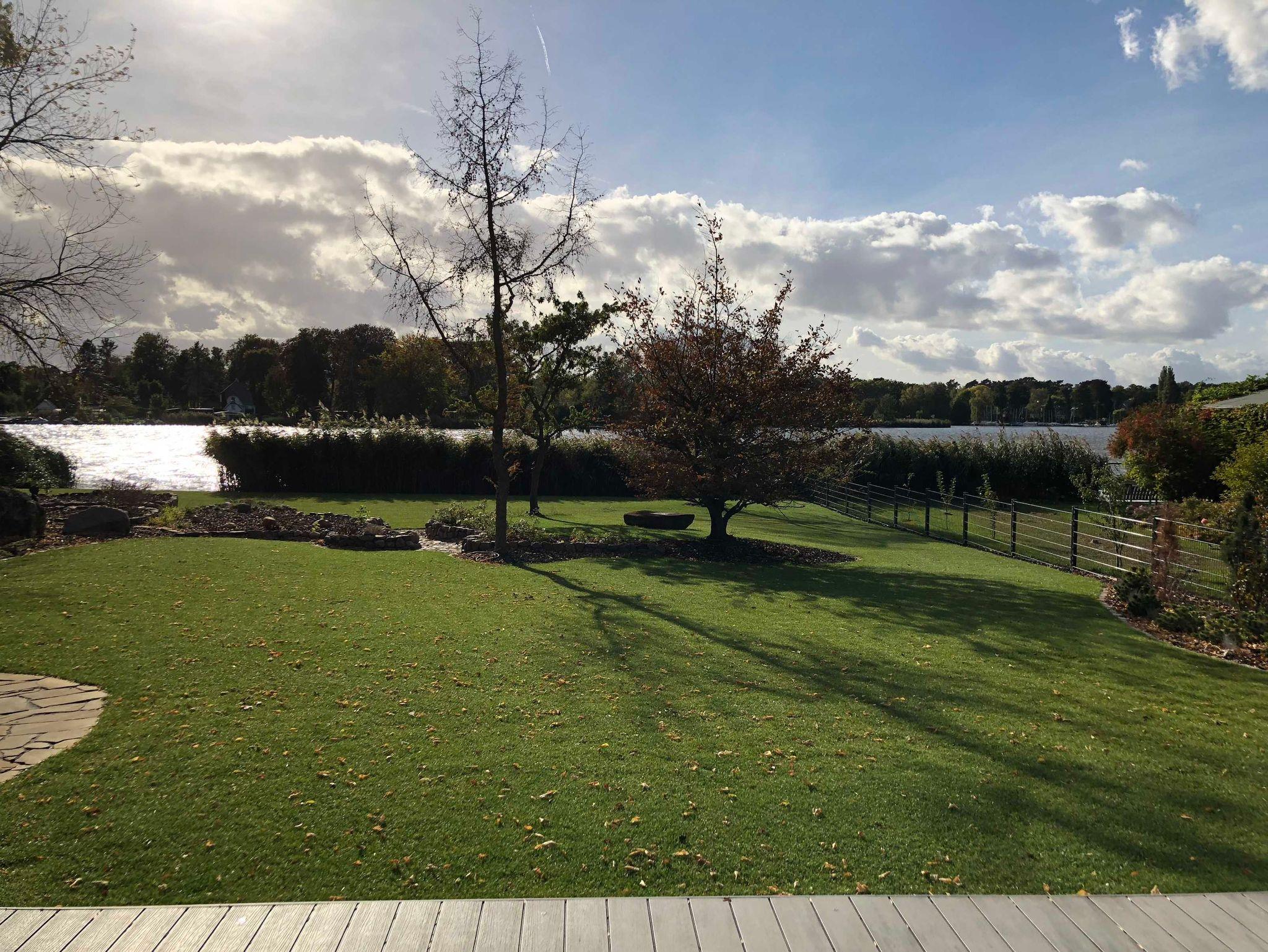 Die Seevilla Berlin liegt auf einem ca. 2000m² großen Wassergrundstück mit ca. 35m Wasserfront.