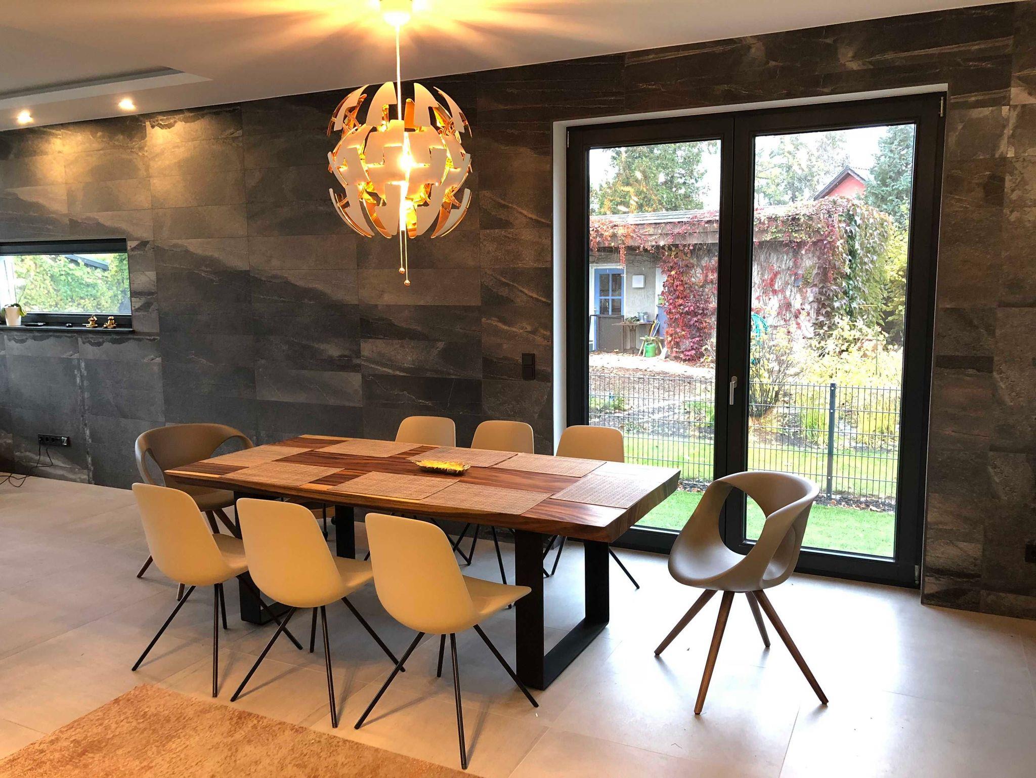 Im Essbereich befindet sich ein Tisch für 8 Personen und im Wohnbereich ein Frühstücksbereich für 4 Personen.