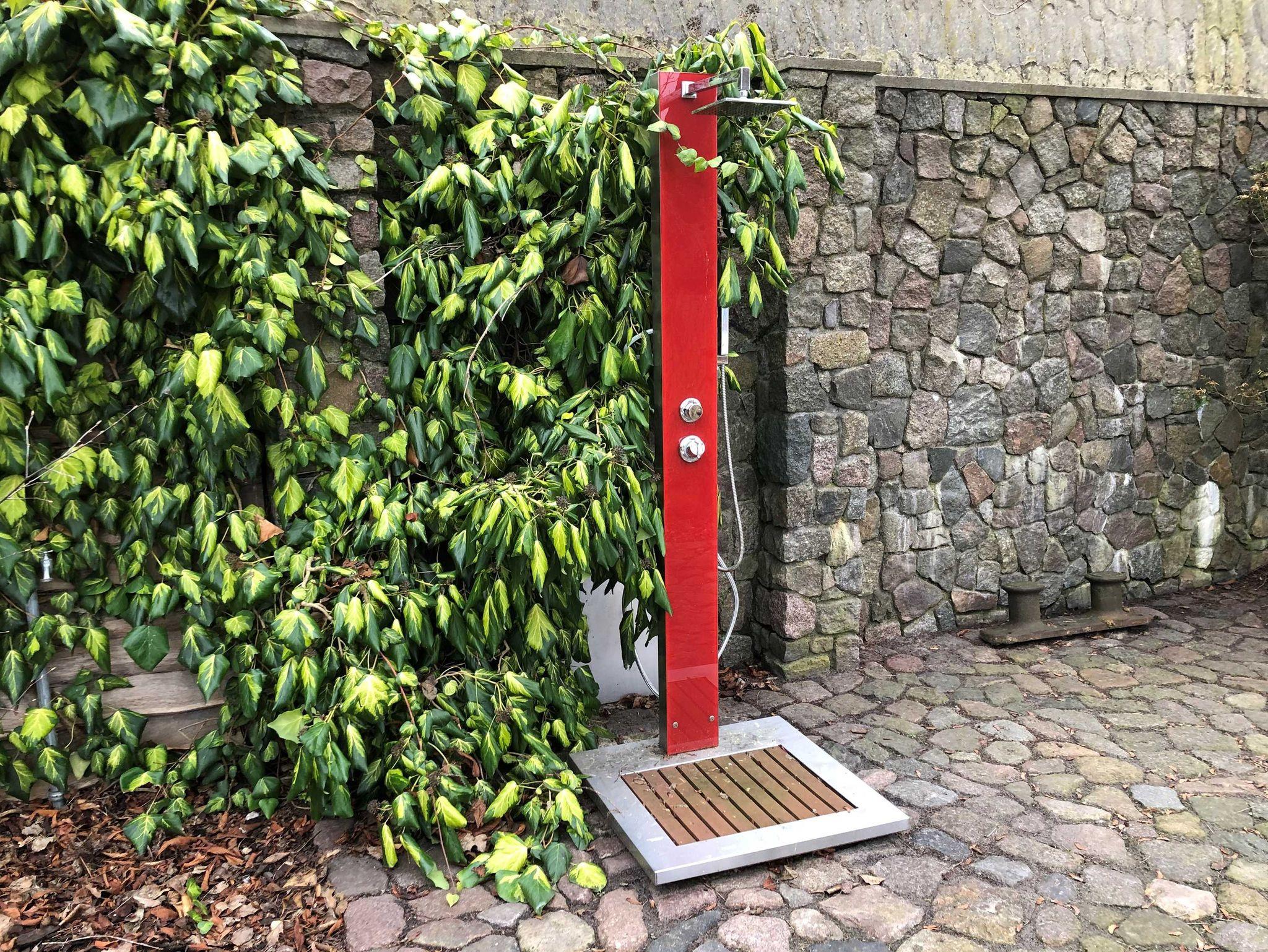 In der frostfreien Zeit steht Ihnen eine Außendusche und ein Außenwirlpool mit Kalt- und Warmwasser zur Verfügung.