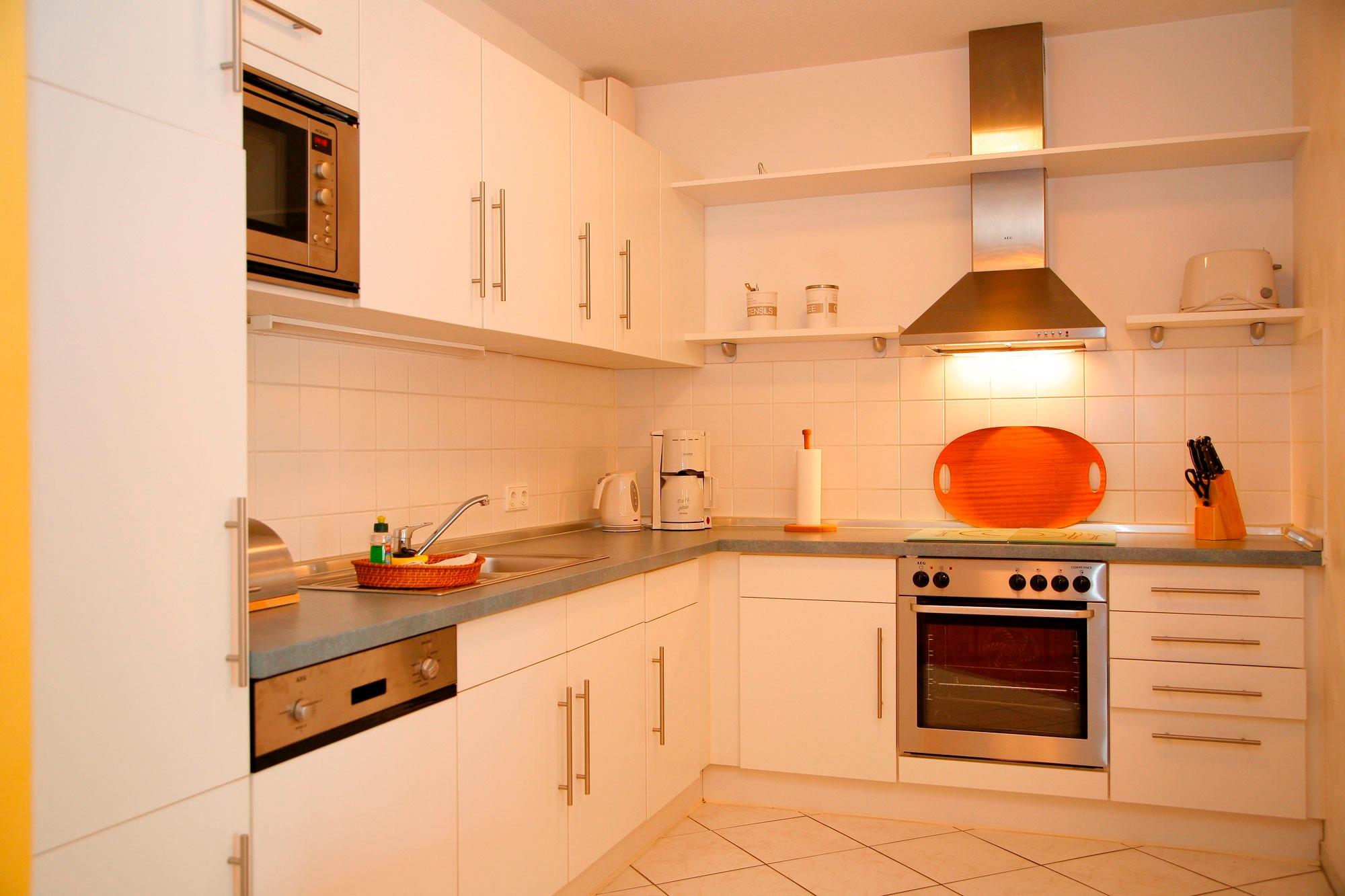 Eine komplett ausgestattete Küche mit Esstisch für 6 Personen und einer Sitzgruppe mit hochwertiger Schlafcouch lassen keine Wünsche offen. Der obligatorische Schreib- sowie Schminktisch und das großräumige Wannenbad mit separater Toilette sind in diesen Apartments auf ca. 70 - 120 qm Wohnfläche verteilt.