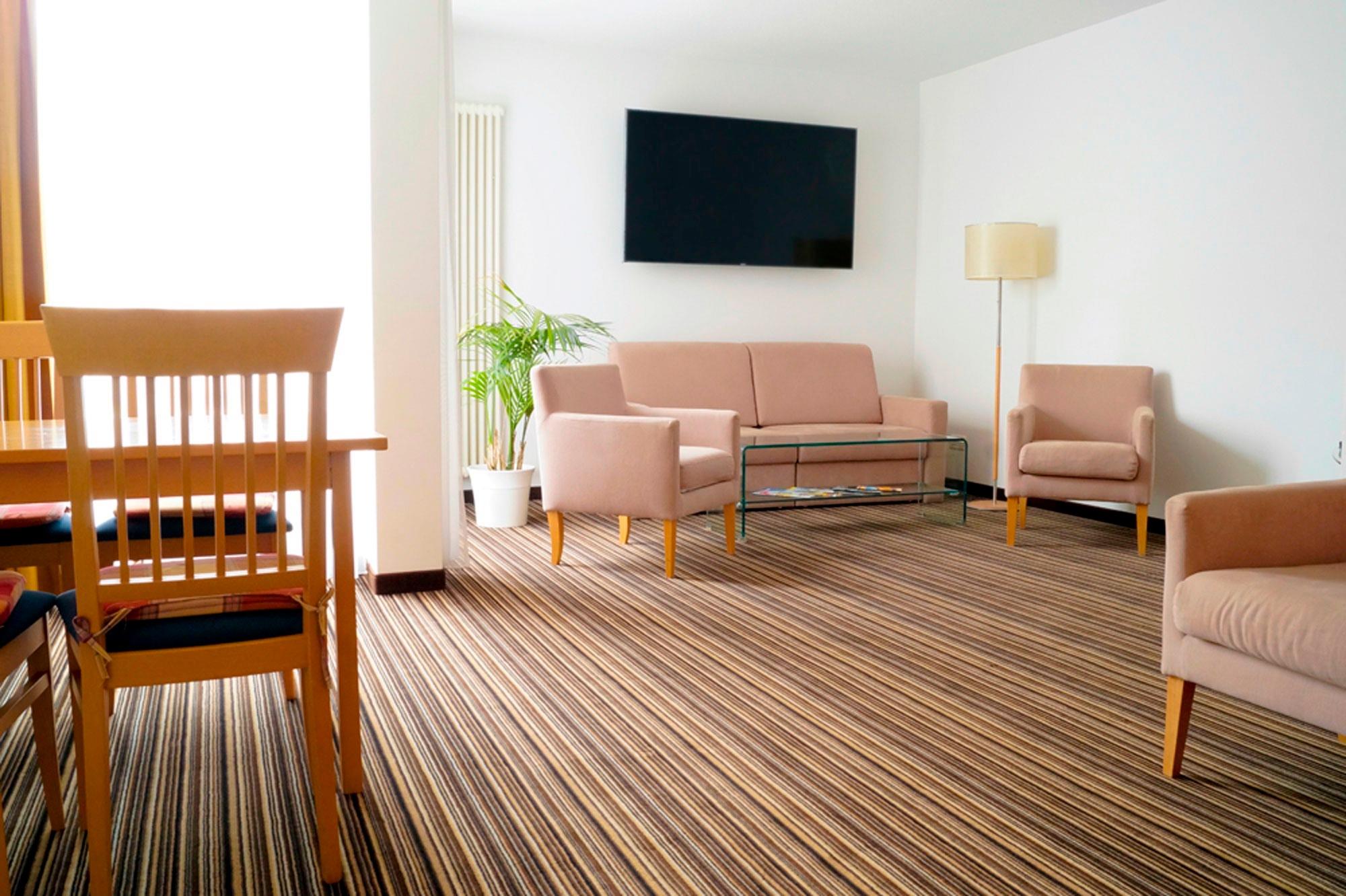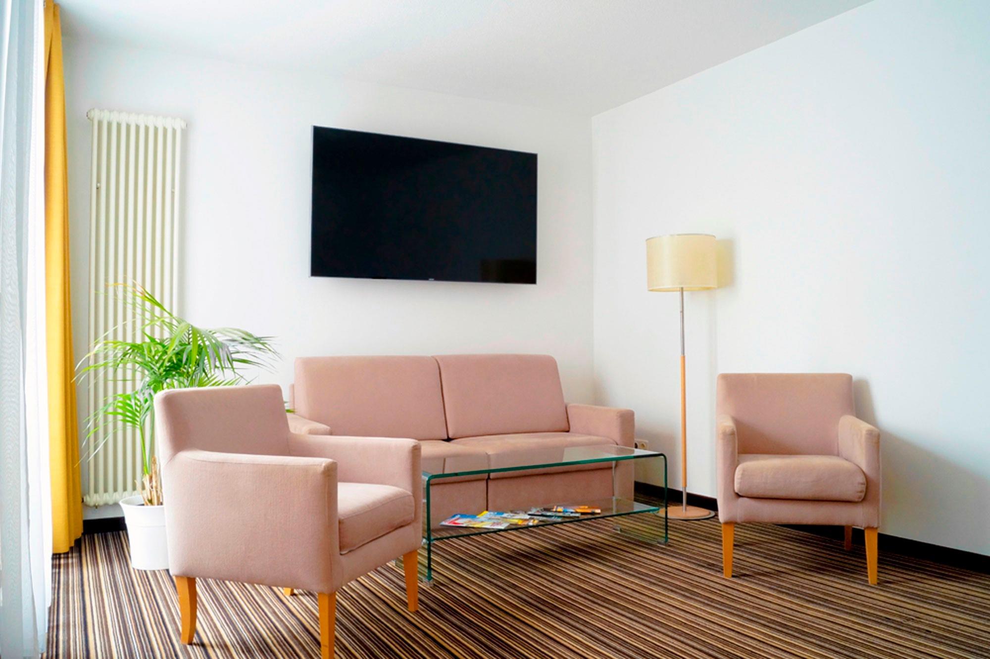 Eine komplett ausgestattete Küche mit Esstisch für 6 Personen und einer Sitzgruppe mit hochwertiger Schlafcouch lassen keine Wünsche offen. Der obligatorische Schreib- sowie Schminktisch und das großräumige Wannenbad mit separater Toilette sind in diesen Apartments auf ca. 70 - 120 qm Wohnfläche verteilt.