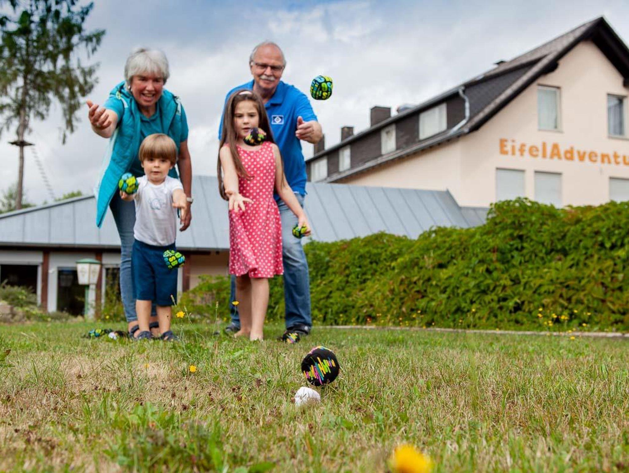 Deine Reise zu uns führt dich in die traumhafte Landschaft der Vulkaneifel, wo du Ruhe und Entspannung mitten im Grünen und gleichzeitig außergewöhnliche Abenteuer-Erlebnisse genießen kannst. Wir liegen direkt am Waldrand sowie an Wander- und Fahrradwegen, die zu ausgiebigen Erkundungs- und Mountainbike-Touren einladen. Darüber hinaus erwarten dich unmittelbar vor der Haustüre einzigartige Abenteuermöglichkeiten, wie z. B. Ziplining, Adventure-Minigolf, Boccia, Cross-Boule oder Fussball-Billard.