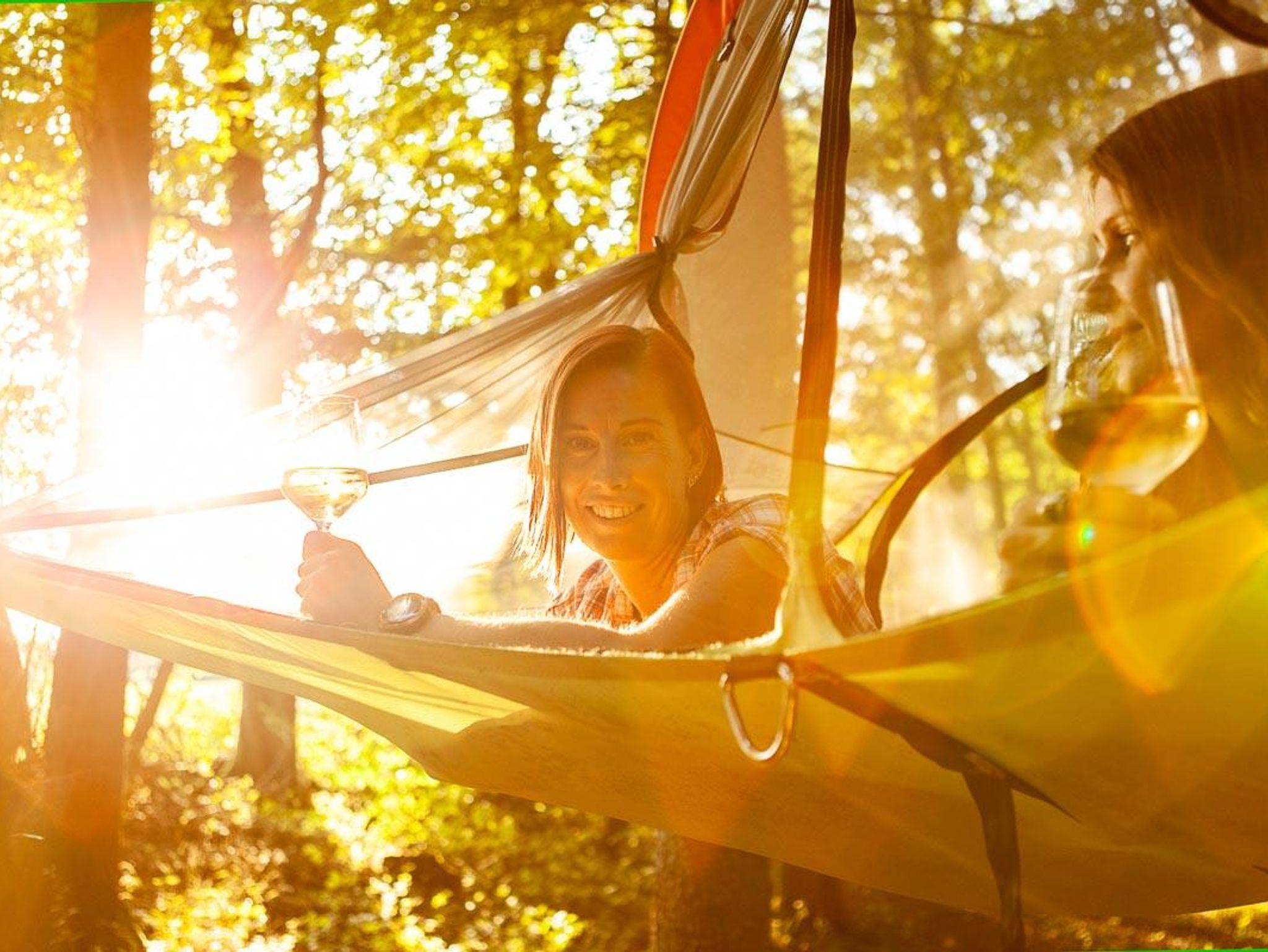 Falls du deine Übernachtung noch aufregender gestalten möchtest, kannst du bei uns auch im Baumzelt übernachten: Träumen in den Bäumen!