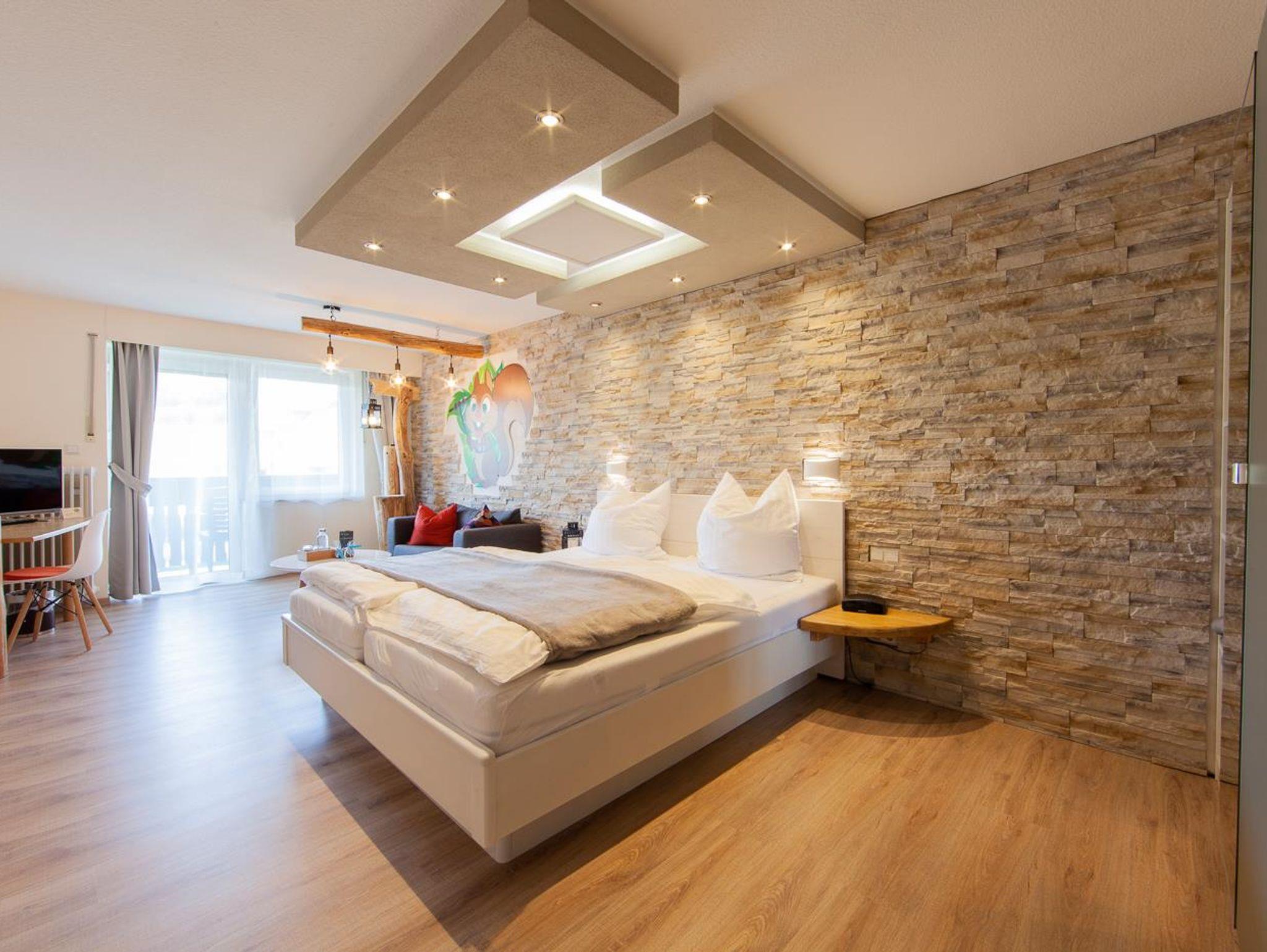 Unsere Adventure-Suite verfügt über einen großzügigen Schlaf-/Wohnbereich mit Flachbildfernseher, ein komfortables Badezimmer mit Dusche und WC inkl. Fön, sowie einen Balkon.