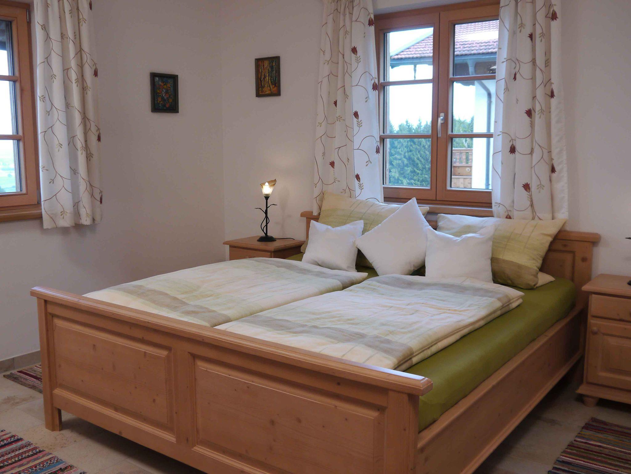 Sie planen einen ländlichen Urlaub im schönen Chiemgau? Sie wollen einfach entspannen, abschalten und die Ruhe genießen? Dann sind Sie bei uns genau richtig!Wir bieten Ihnen einen unvergesslichen Urlaub auf unserem familienfreundlichen Bauernhof mit Mutterkuhhaltung und zahlreichen Kleintieren. Bei uns erfahren vor allem die Kleinsten, wo beispielsweise die Milch und das Frühstücksei am Morgen herkommt und auch den Umgang mit den Tieren. Unser Anwesen ist in einer idyllischen etwas abgelegenen Ortschaft, dennoch ist man auf kurzem Weg am Chiemsee oder in den herrlichen Chiemgauer Alpen. Unsere Gegend bietet in dieser Hinsicht viele Ausflugsziele. Unsere Ferienwohnungen bieten einen traumhaften Blick auf den Chiemsee und das Alpenpanorama. Sie befinden sich im Obergeschoss des Nebengebäudes und sind über die Außentreppe mit nur fünf Stufen bequem zu erreichen. Vor allem der Ostbalkon mit Seeblick ist ein idealer Ort zu entspannen und genießen. Langeweile wird es bei Ihren Kindern nicht geben. Wir haben ausreichend Spielutensilien und durch unsere ruhige Umgebung viel Spielraum zum toben. Die Wohnung ist mit Liebe zum Detail modern eingerichtet und besitzt u.a. ein großräumiges Badezimmer. Ein gelungener Urlaubstag kann auf der Westterrasse in der Abendsonne gemütlich ausgeklungen werden. Wir freuen und Sie in unserer Ferienwohung Willkommen zu heißen!
