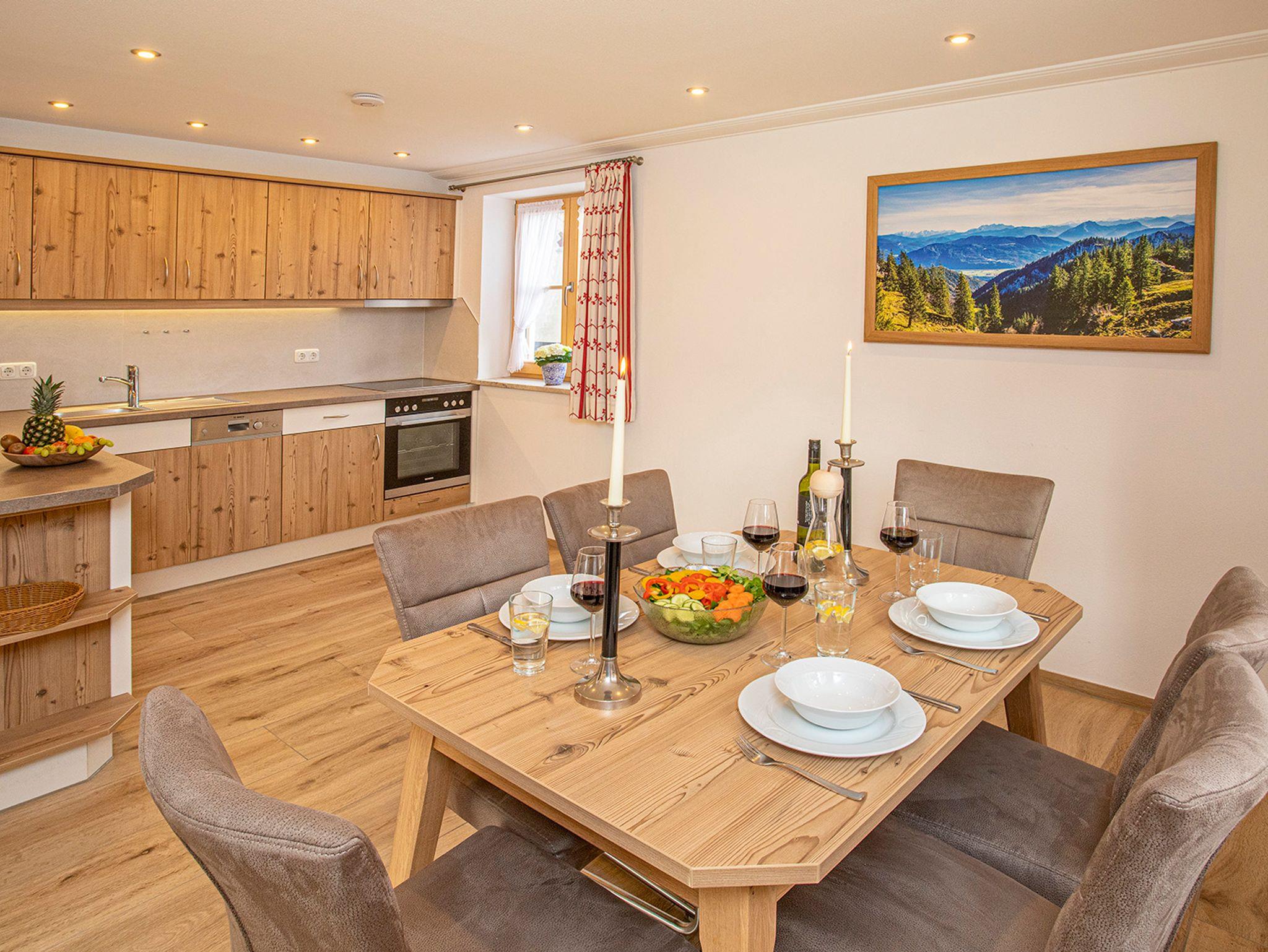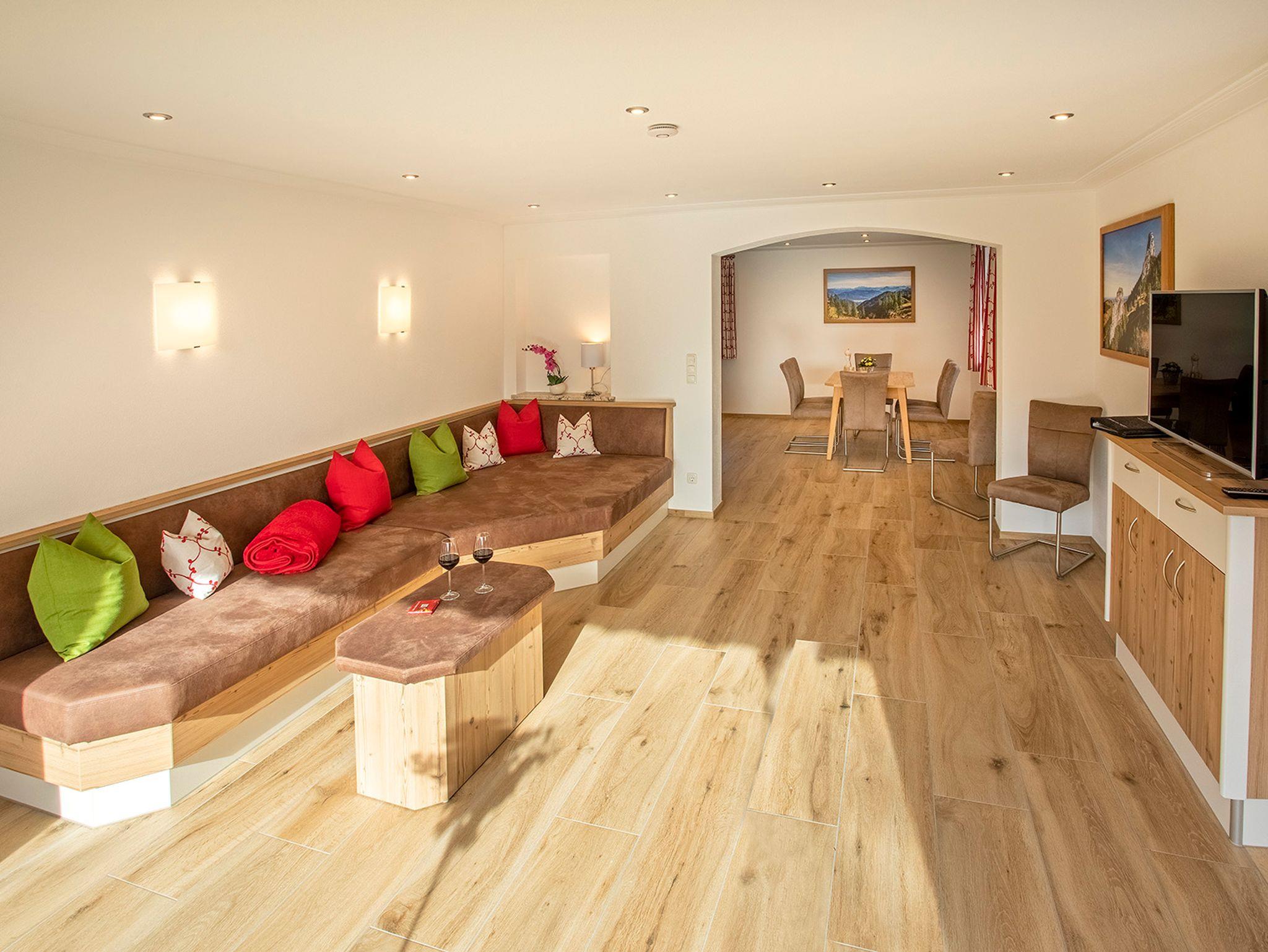 Unser neu renoviertes Ferienhaus liegt ruhig und doch zentral am Ortsrand von Bernau. Die 5 Wohnungen sind mit voll ausgestatteten Küchen, Flat-TV, Safe, mit stilvollen Möbeln vom Schreiner eingerichtet udn haben alle Süd-Balkon oder Terrasse mit Blick in die Berge. Zudem steht allen eine Waschmaschine, Trockner, Gartennutzung, Fahrradgarage und ausreichend Parkplätze zur Verfügung. Bäcker und Supermarkt sind nicht weit von unserem Ferienhaus entfernt. Viele Rad- und Wanderwege können direkt vor der Haustür gestartet werden. Das Strandbad am Chiemsee ist gut mit Fahrrad erreichbar. Im Winter ist bei ausreichender Schneelage der Einstieg in eine Langlaufloipe nur 50 m entfernt. Die Skigebiete der Steinplatte, Hochkössen, St. Johann sind ebenfalls in 30-45 min erreichbar.