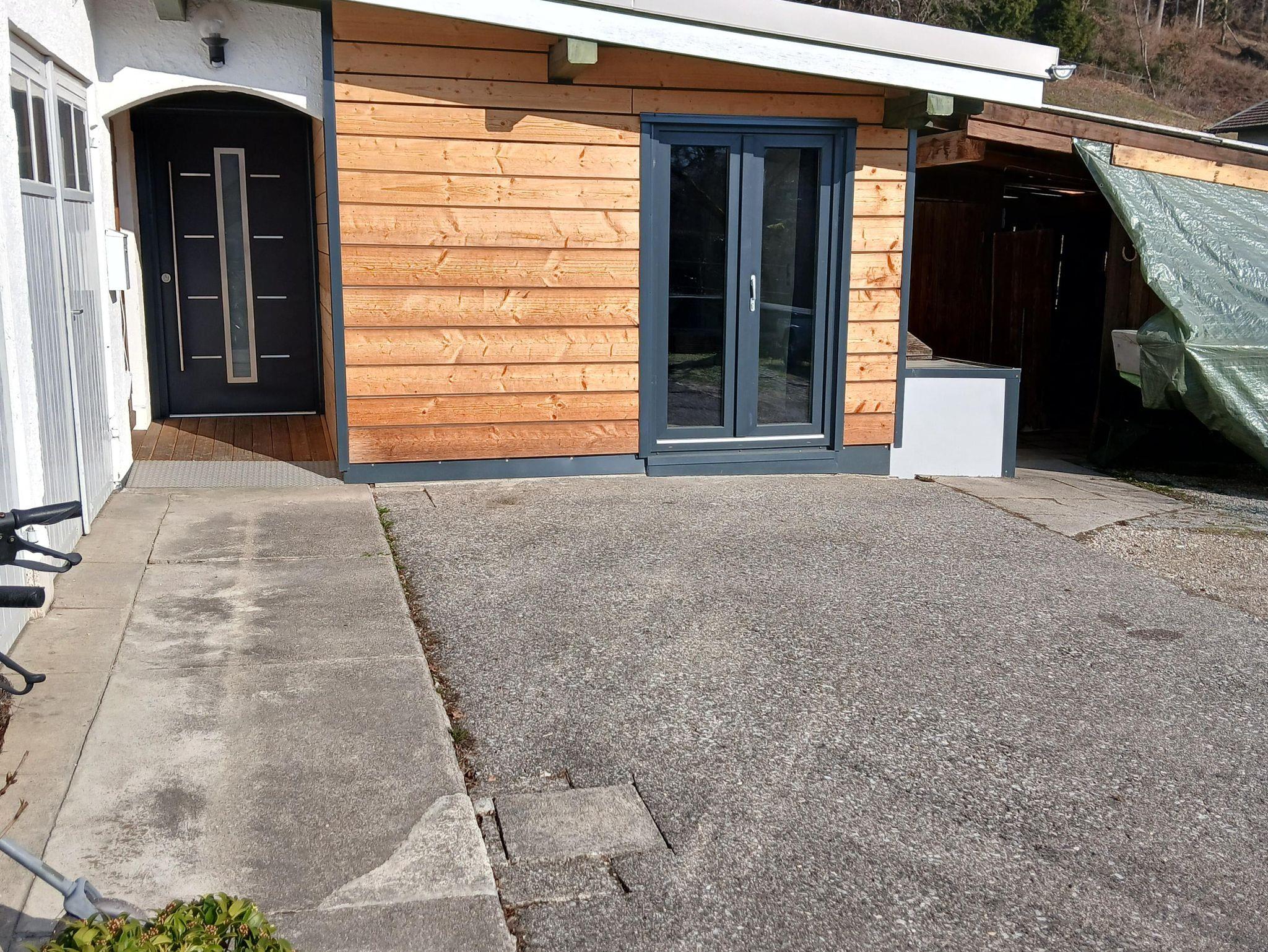 Wir bieten Ihnen in unserem Heim eine gemütliche, neu aufgebaute und komplett ausgestattete 50 qm Ferienwohnung an. Eine Sitzgelegenheit im Naturgarten mit Obstbäumen, Beerensträuchern, Blumen-und Gemüsebeet lädt zum Frühstück im Freien ein. Immer im Blick: die Chiemgauer Alpen. Sonnenliegen stehen zur Verfügung. Ein KFZ Stellplatz befindet sich direkt an der Ferienwohnung. Fahrräder und Motorräder können sicher in einer abschließbare Garage untergebracht werden. Auch hierfür sind Ladestationen vorhanden. Gerne dürfen Sie Ihr Haustier mitbringen. Ein komplett eingezäunter, schattiger Freilauf wartet auf Ihren Vierbeiner, gerne mit Betreuung. Eine Grillmöglichkeit und Feuerstelle bietet abends Unterhaltung. Restaurants, Banken, Apotheke, Outletstores, Fast Food, Hallenbad, Bar, Supermärkte, Tennis- Squashhalle, Minigolf, Fahrradverleih, Thaimassage, Kosmetiksalon, Friseur und Biergarten fußläufig erreichbar.