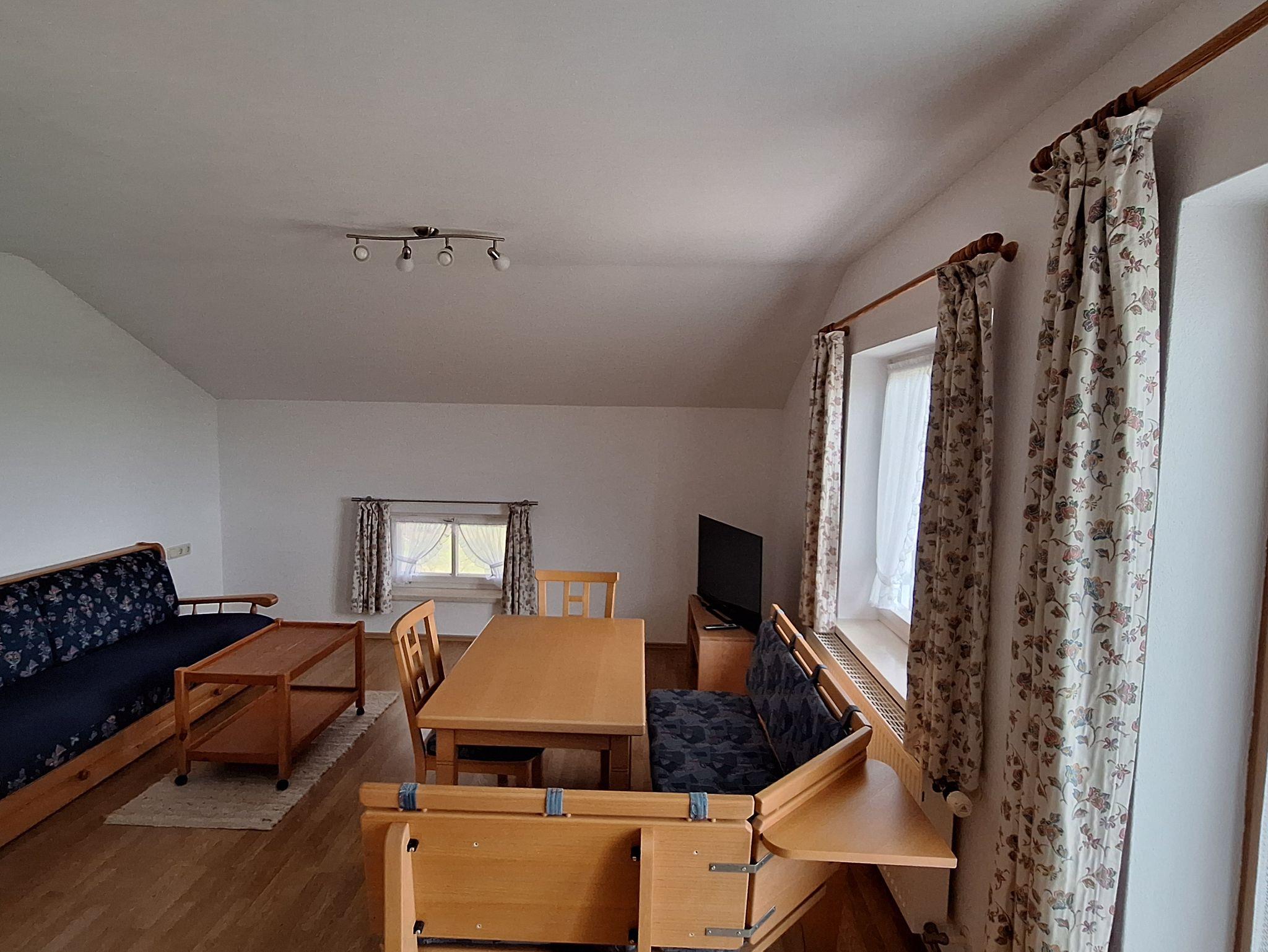Gepflegter familienbetriebener Bauernhof in ruhiger Lage mit freiem Blick auf die Berge, Wiesen und Wald. Wir bewirtschaften einen kleinen Bauernhof mit 2 Ferienwohnungen mit Wohnküche, Schlafzimmer, DU/ WC, Balkon, Bettwäsche und Handtücher inklusive. In der Wohnküche gibt es die Möglichkeit eine Schlafcouch auszuziehen, bis zu 2 Schlafmöglichkeiten extra. Kinderbett kann bei Bedarf zugestellt werden. Bei uns auf dem Hof leben unsere Rinder, Hasen, und 2 Ponys.