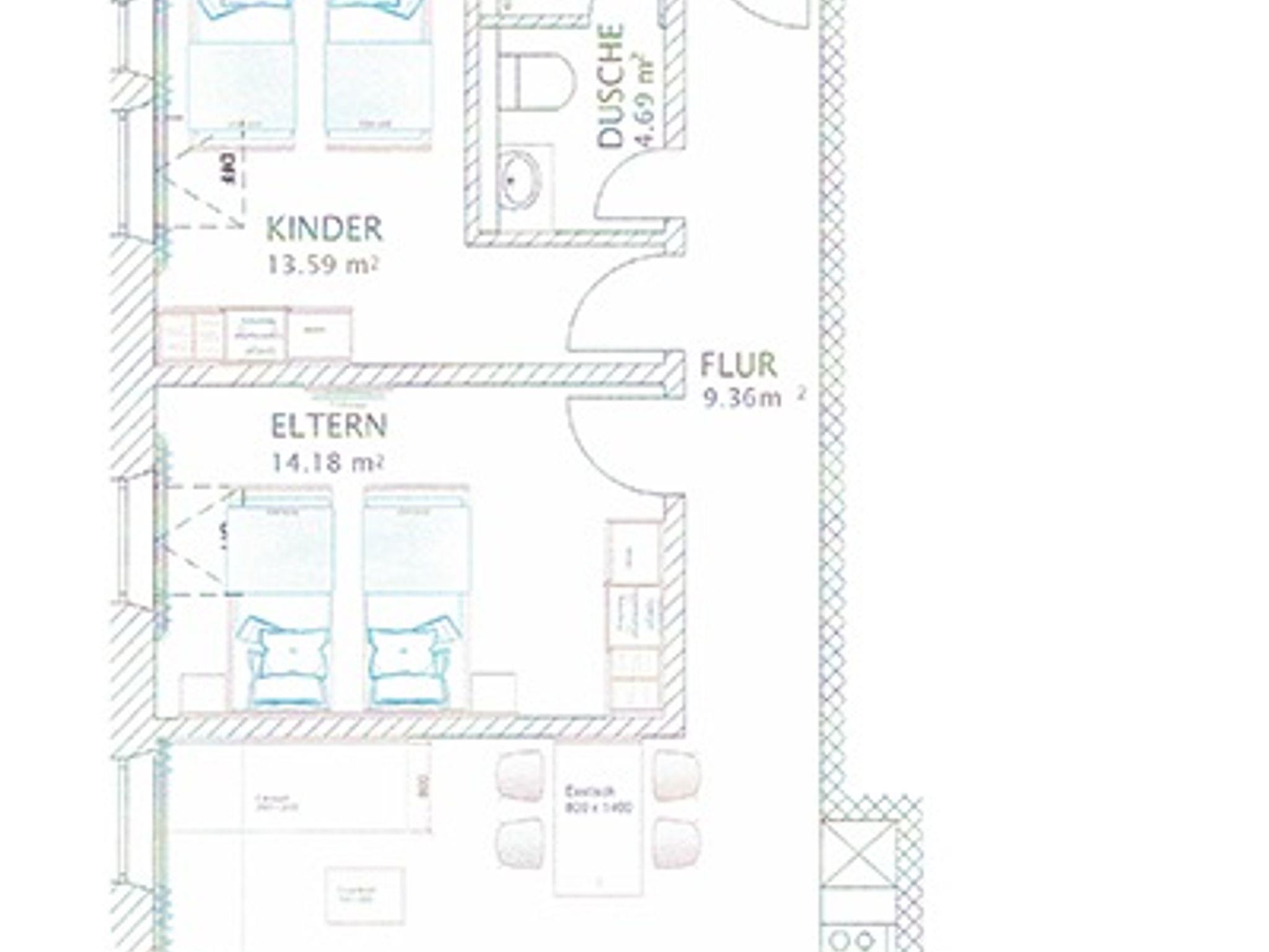 • ein Schlafzimmer mit Doppelbett, das wir gerne zu getrennten Betten umbauen