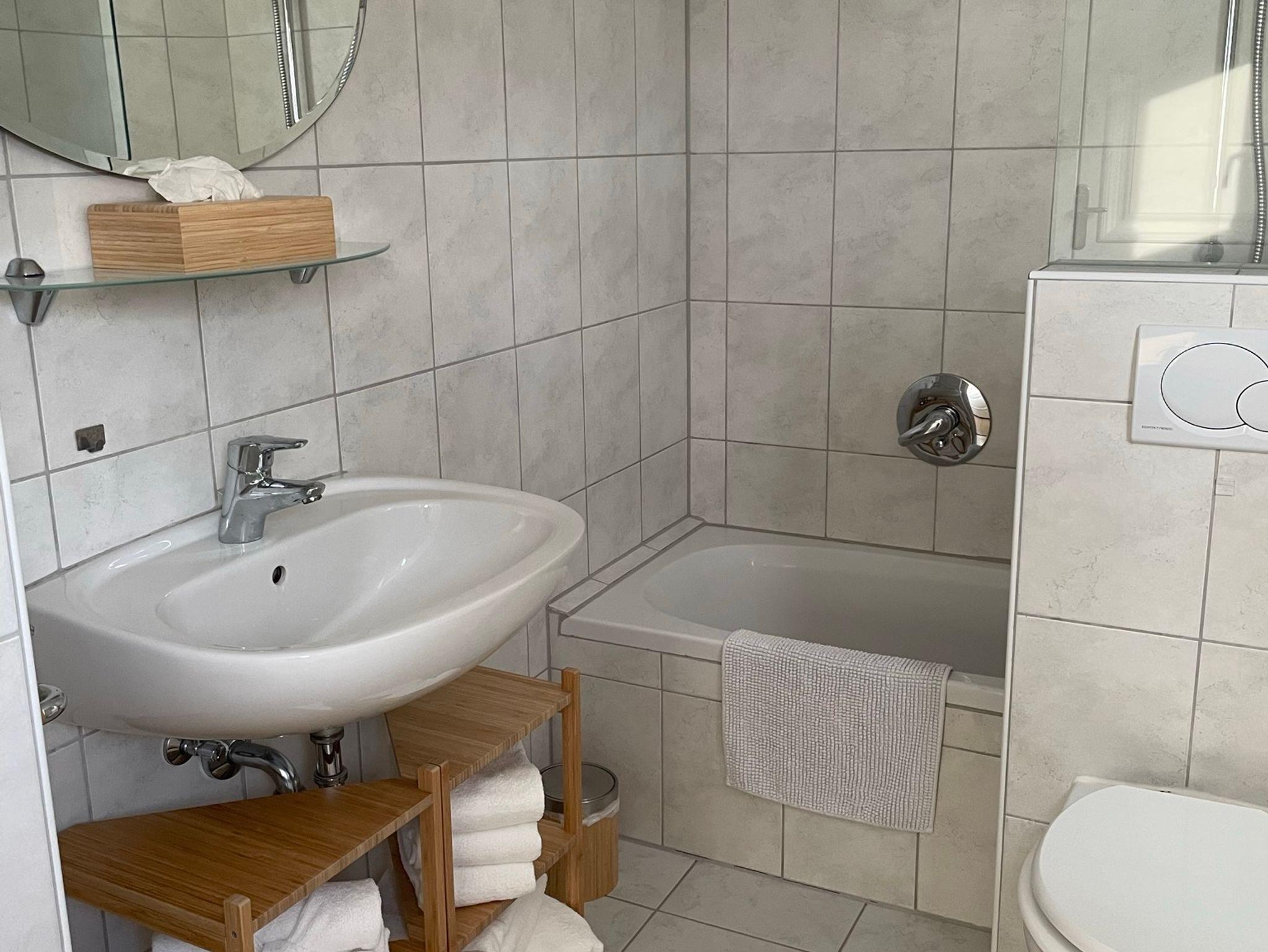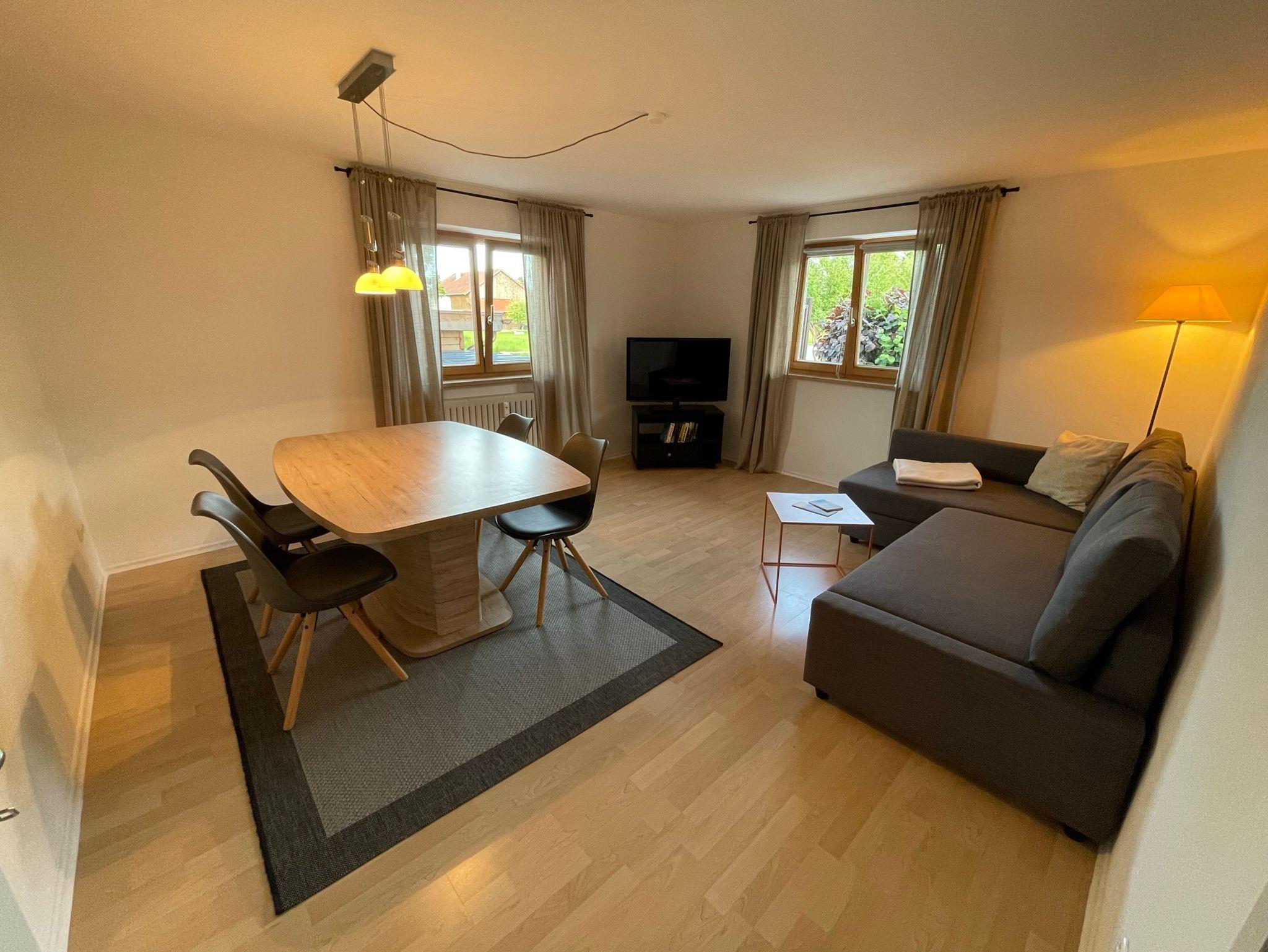 Die lichtdurchflutete, großzügige Unterkunft liegt im Erdgeschoss des Hauses. Eine nach Süden ausgerichtete Terrasse bietet einen herrlichen Bergblick. Außerdem verfügt die Ferienwohnung über eine voll ausgestattete Küche mit Kaffeevollautomat, ein Wohnzimmer mit Essbereich, ein Badezimmer mit Badewanne sowie über ein Eltern- und Kinder-Schlafzimmer. WLAN ist selbstverständlich inklusive.