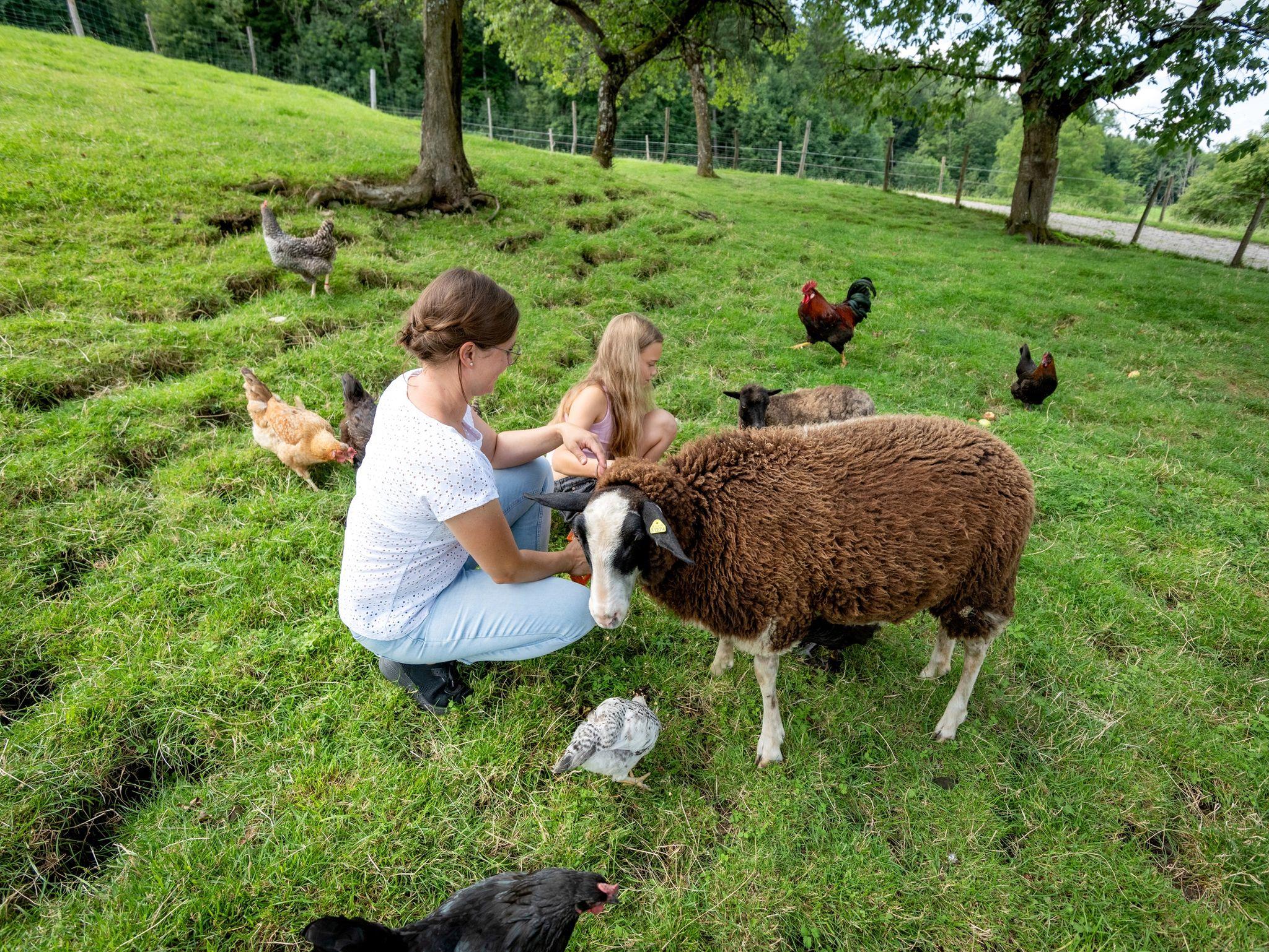 Unsere fünf Ferienwohnungen für bis zu fünf Personen bieten alles, was das Urlauberherz begehrt. Die Mischung aus modernen Farben und Formen sowie Holzelementen macht die Unterkünfte besonders gemütlich und wohnlich. Alle Wohnungen verfügen über einen eigenen Balkon, der entweder einen herrlichen Blick auf den Chiemsee oder die Chiemgauer Alpen bietet. Was könnte schöner sein als ein gemütliches Frühstück mit Blick auf das „Bayerische Meer“? Davor lohnt sich noch ein Blick in den Hühnerstall für ein ganz frisches Frühstücksei. Im Sommer lockt der Bauerngarten vor dem Haus mit frischen Kräutern, Gemüse und Beerensträuchern zum Naschen. Auf dem Hof, der im Nebenerwerb bewirtschaftet wird, leben natürlich auch noch mehr Tiere: Ochsen, die den Sommer auf den Weiden rund um unseren Hof verbringen, unsere zwei Schafe Gustl und Liesl, unsere Hasen und unsere Hofkatzen Mitzi, Schnurri und Schokoblitz, die sich immer über eine Streicheleinheit freuen.