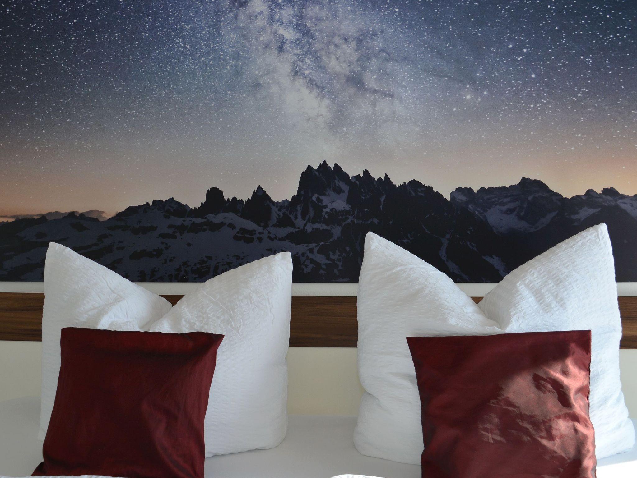 Die Ferienwohnung Alpenperle befindet sich im 1. Obergeschoss (es sind jedoch zwei Stockwerke zu gehen) und bietet auf 53?m² Platz für bis zu 3 Personen. Sie verfügt über ein Schlafzimmer mit Doppelbett, einen offenen Wohnbereich mit voll ausgestatteter Küche und Schlafcouch, zwei TVs sowie ein modernes Bad mit Regendusche. Ein Highlight ist der große, umlaufende Süd-Ost-Balkon mit Outdoorküche, verschiedenen Sitzmöglichkeiten ideal zum Entspannen mit Blick auf die Berge und den nahegelegenen Bach.