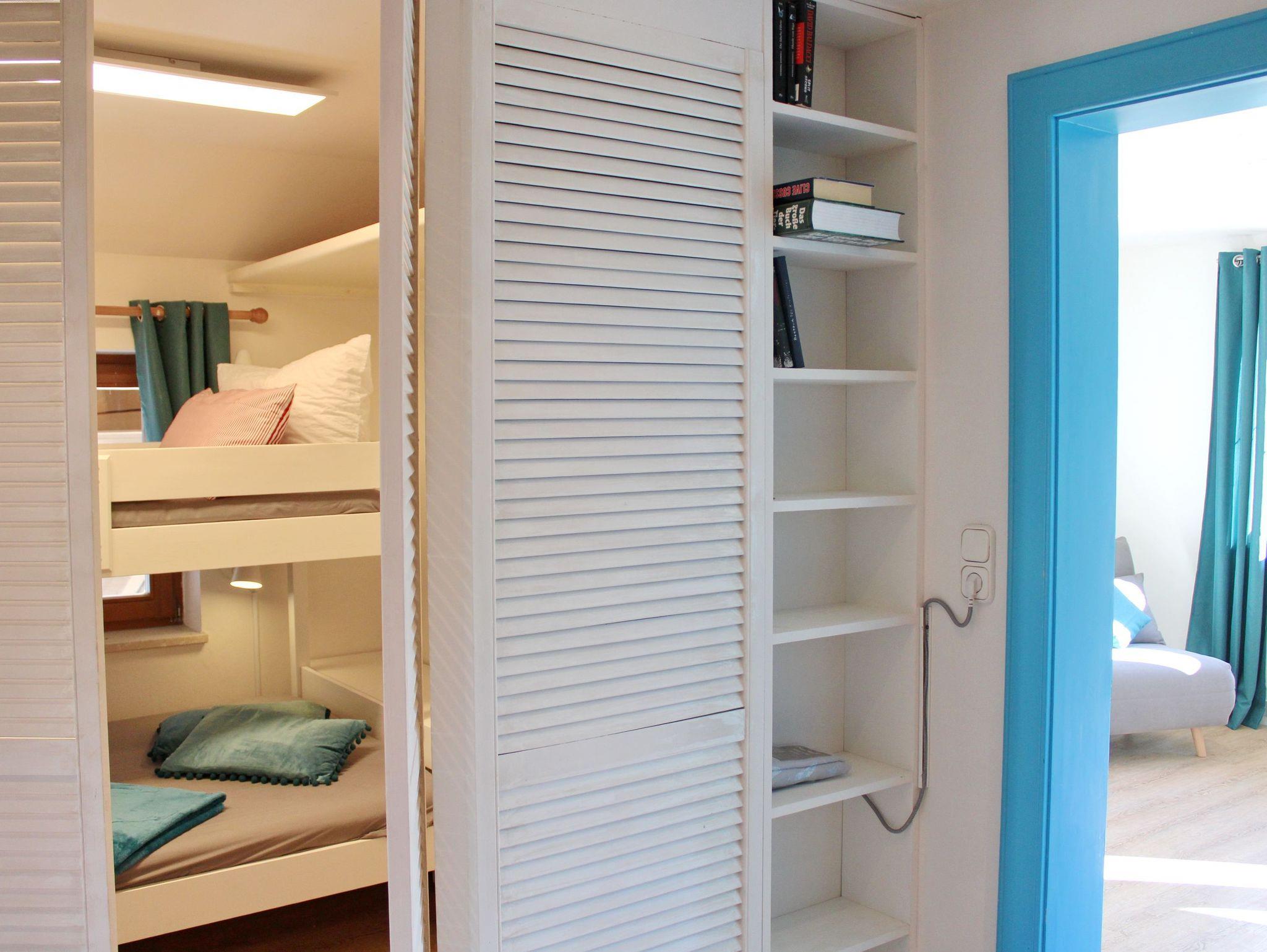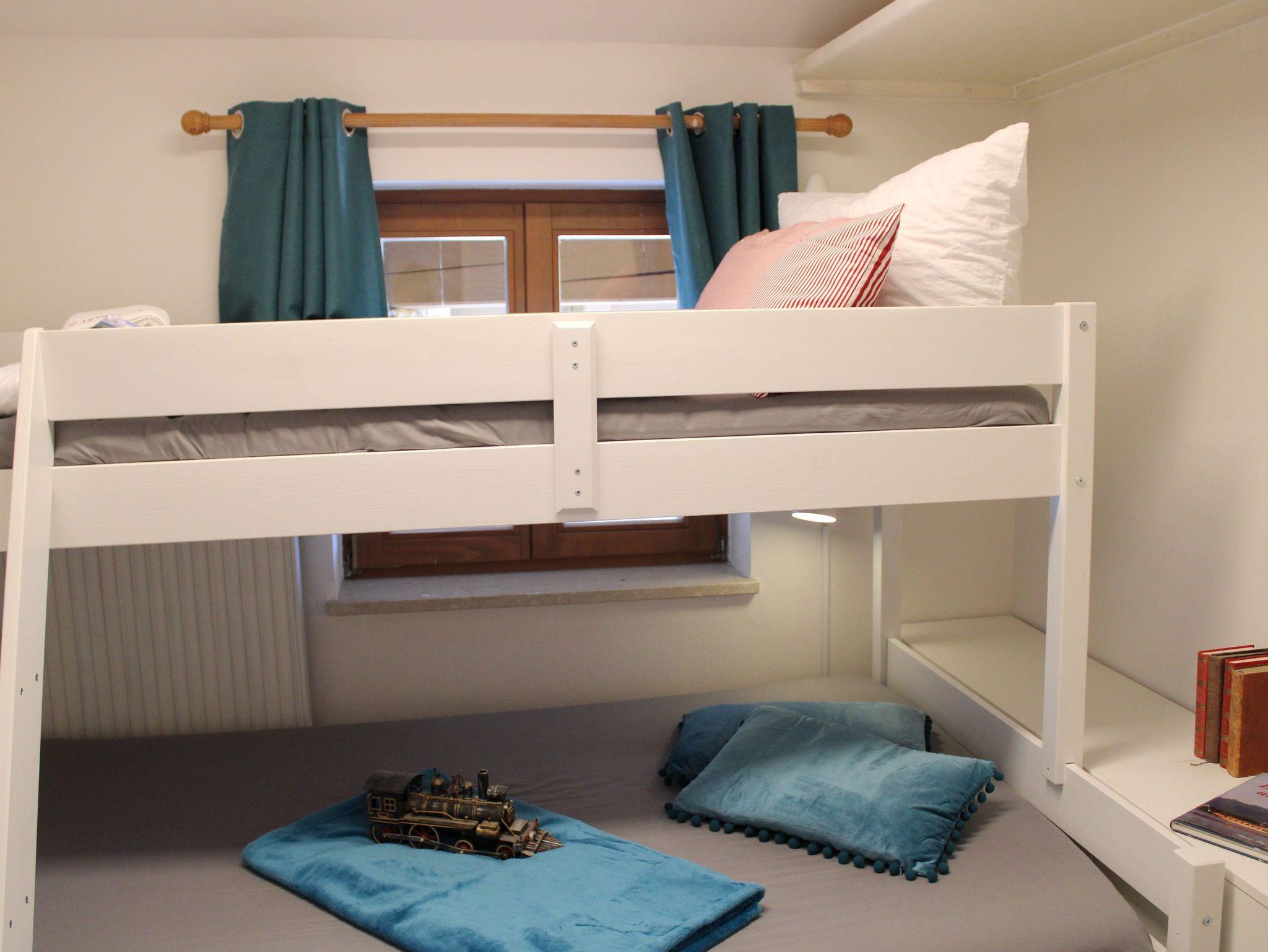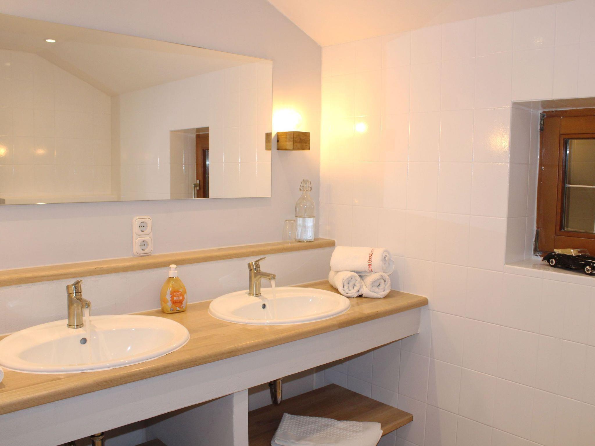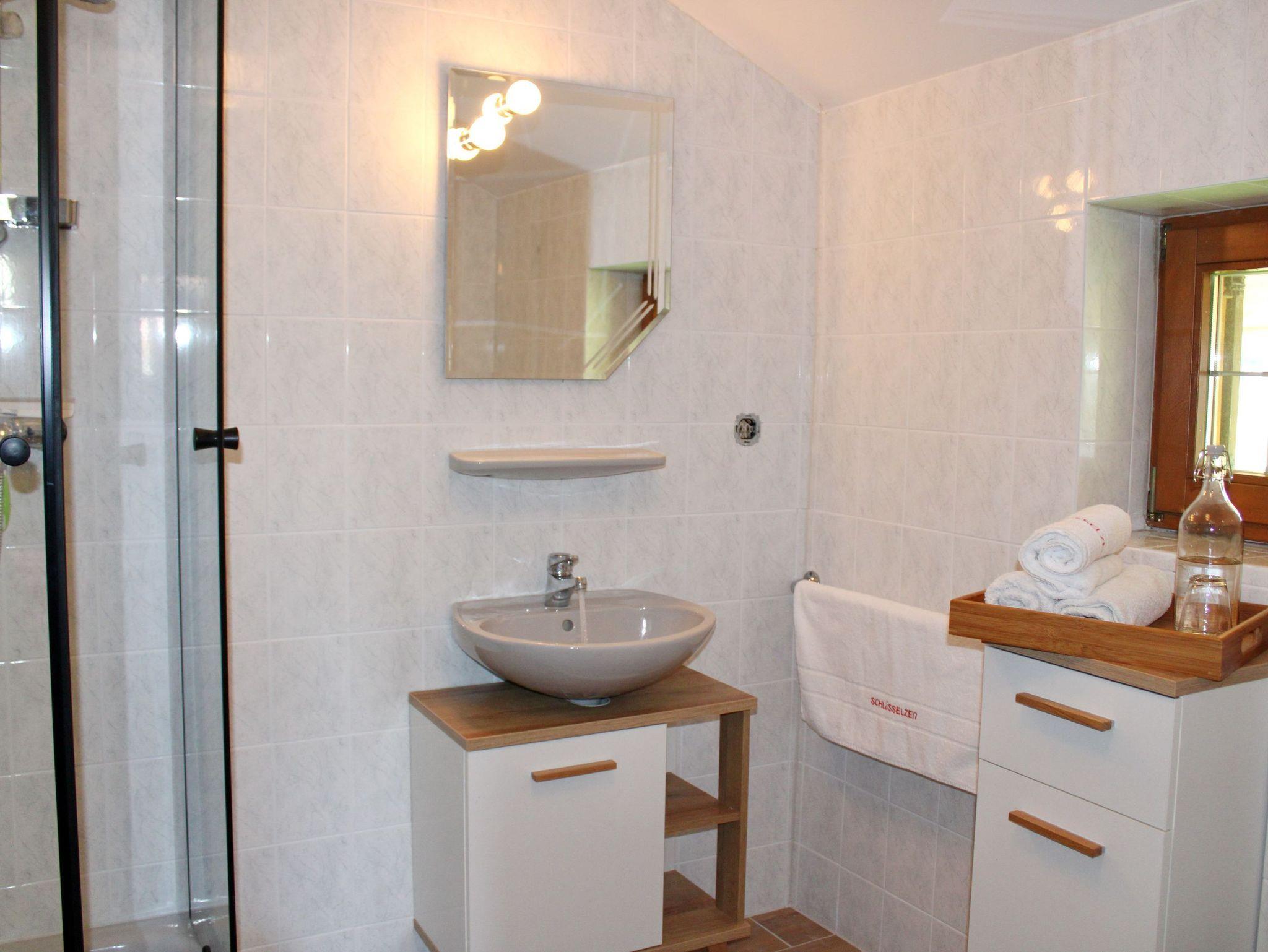 Im ersten Stock befindet sich ein Schlafzimmer mit Doppelbett, TV, Sofa und Badezimmer “en Suite”, welches mit Waschbecken, Dusche und WC ausgestattet ist. Getrennt auf dieser Etage ist ein weiteres Doppelzimmer mit TV und Sofa untergebracht, welches mit Balkon ausgestattet ist und mit seinem Blick in die Natur sowie auf den Chiemsee die Urlaubszeit unterstreicht. Der Durchgangsraum dieses Bereiches ist mit dem Stockbett (unten Liegefläche 110x200, oben 80x200) sicherlich nicht nur für Kinder von Interesse. Durch Lamellentüren kann das Stockbett abgetrennt werden. Das angrenzende kleine Badezimmer beinhaltet neben dem Doppelwaschbecken ein WC. Neben der Dusche und dem WC im Kellergeschoss ist ein weiteres WC im Erdgeschoss zu finden. Zusätzliche Entspannung bietet Ihnen der großzügige Wellnessraum im Kellerbereich mit Whirlpool, Sauna und Wellnessinsel. Ergänzt wird dieser Raum mit Dusche und WC. Ebenfalls im Keller steht die Waschmaschine zur Verfügung. Die große Eingangslobby und die Speis vervollständigen das Feriendomizil.