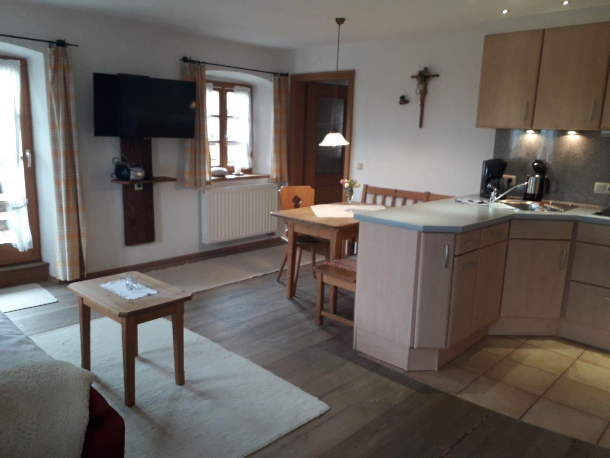 Zu unserer Ferienwohnung Kampenwand gehört eine geräumige Wohnküche, das gemütliche Schlafzimmer und ein komfortables Badezimmer. Zusätzlich unterstreicht ein sonniger Süd- und Ostbalkon den Reiz dieser Ferienwohnung.