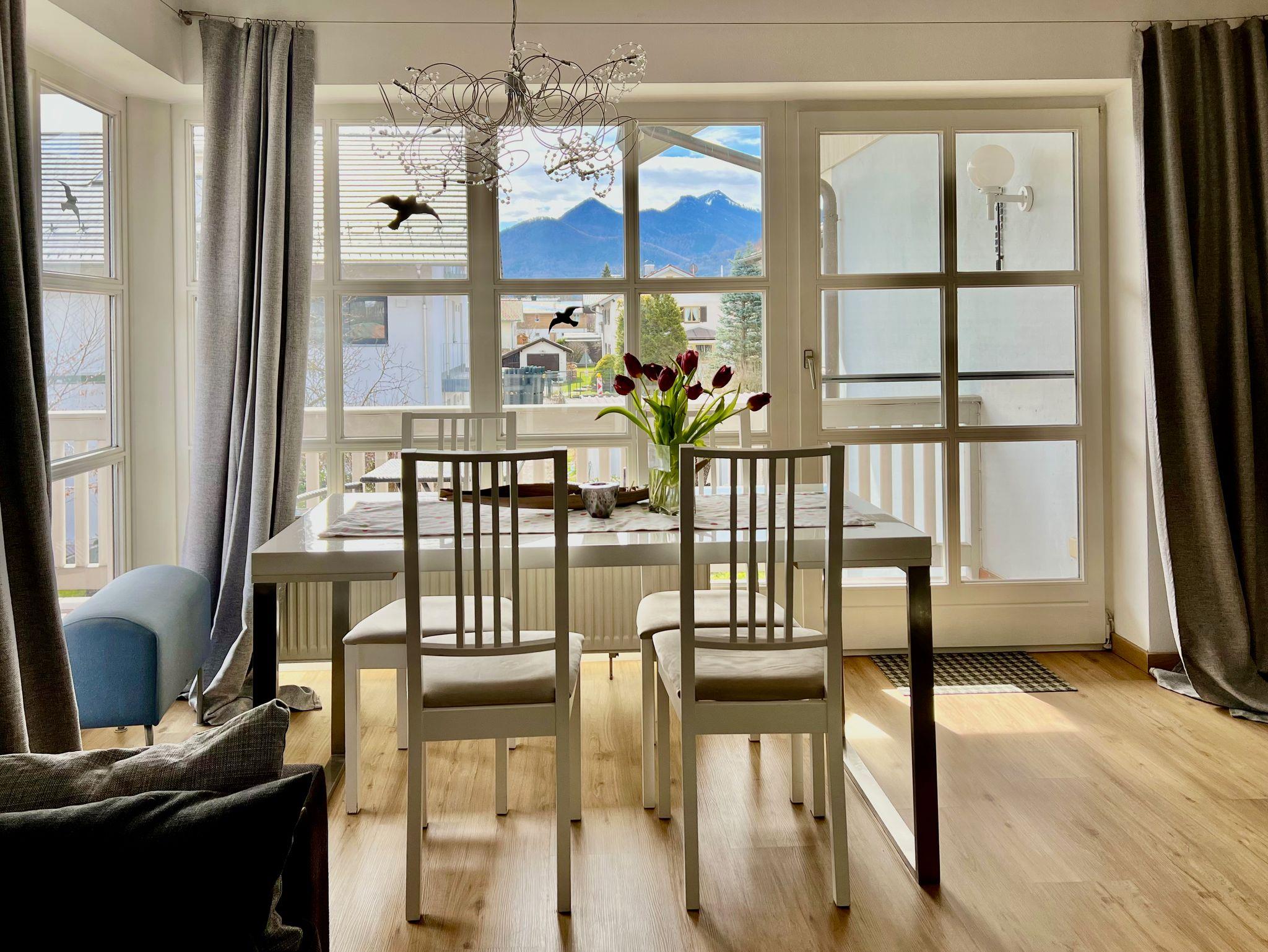 Sehr helle und ruhige 3-Zimmer-Ferienwohnung (87 qm) mit Charme - mit großem Balkon und traumhaften Bergblicken - in Fußnähe zum Chiemsee und sehr nah in die Berge.