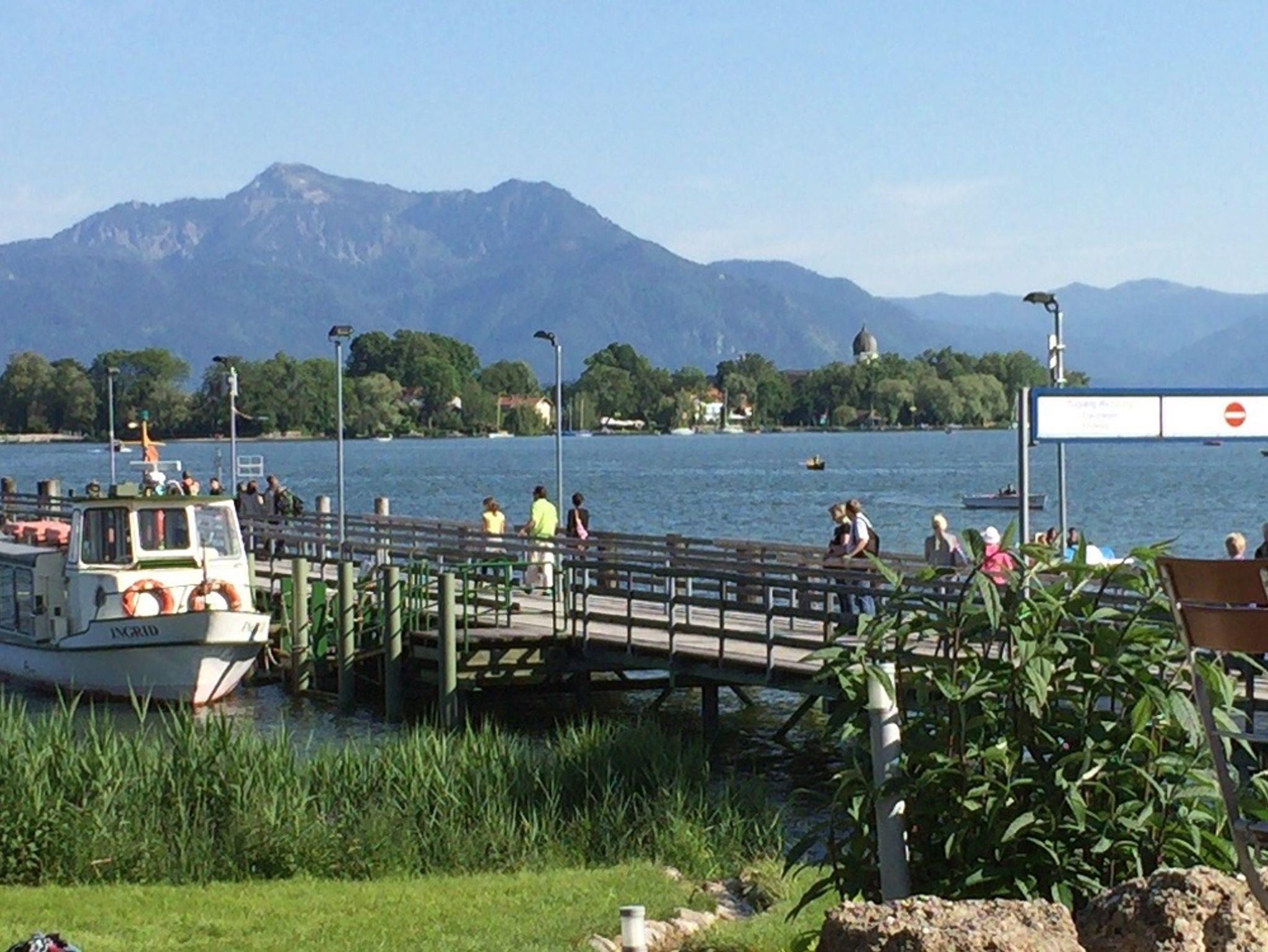 Entfernung:- Autobahn: ca. 300 m (A8 München-Salzburg, Abfahrt: Felden)- Supermarkt (ALDI), Drogeriemarkt (dm) sowie kleines Shopping-Outlet: ca. 150 m- Fahrrad-Verleih (auch MTB und E-Bikes): Chiemgau-Biking: ca. 300 m sowie Fahrradverleih Müller neben der Touristen-Info in Felden (ca. 700 m)- Bahnhof Bernau: ca. 10-15 Gehminuten (Meridian Schnellzug - Direktverbindung München-Salzburg)- Schiffsanlegestelle für z. B. Chiemsee Rundfahrt, zum Königsschloss Herrenchiemsee u.a.: weniger als 10 Gehminuten bzw. 700 m- Chiemsee und Chiemseepark Felden mit div. Wasser- und sonstigen Sportmöglichkeiten: weniger als 10 Gehminuten bzw. 700 m- Medical Park Chiemsee und Chiemseeblick (Reha-Einrichtungen): 10 Gehminuten- Chiemsee-Alpenland Tourismus: weniger als 10 Gehminuten bzw. 700 m- Aschau (Kampenwand-Seilbahn, Burg Hohenaschau mit Falknerei, schöne Ausflugs-Cafés): ca. 10 Autominuten bzw. 6 km, Sachrang (Langlauf Gebiet): weitere 6 km- Grassau (wandern, radeln, Museum Natur und Moor mit Museums-Café, div. Restaurants): ca. 10 Autominuten, 7 km- Marquartstein (Märchenpark, Burg, wandern, radeln...)- Ruhpolding (Langlaufzentrum, Gleitschirmfliegen, Wandern, Märchen- und Freizeitpark): ca. 25 km, 25 Autominuten- Reit im Winkl (Langlaufzentrum, wandern, Ski fahren: Winklmoosalm/Steinplatte): ca. 25 km, 25 Autominuten