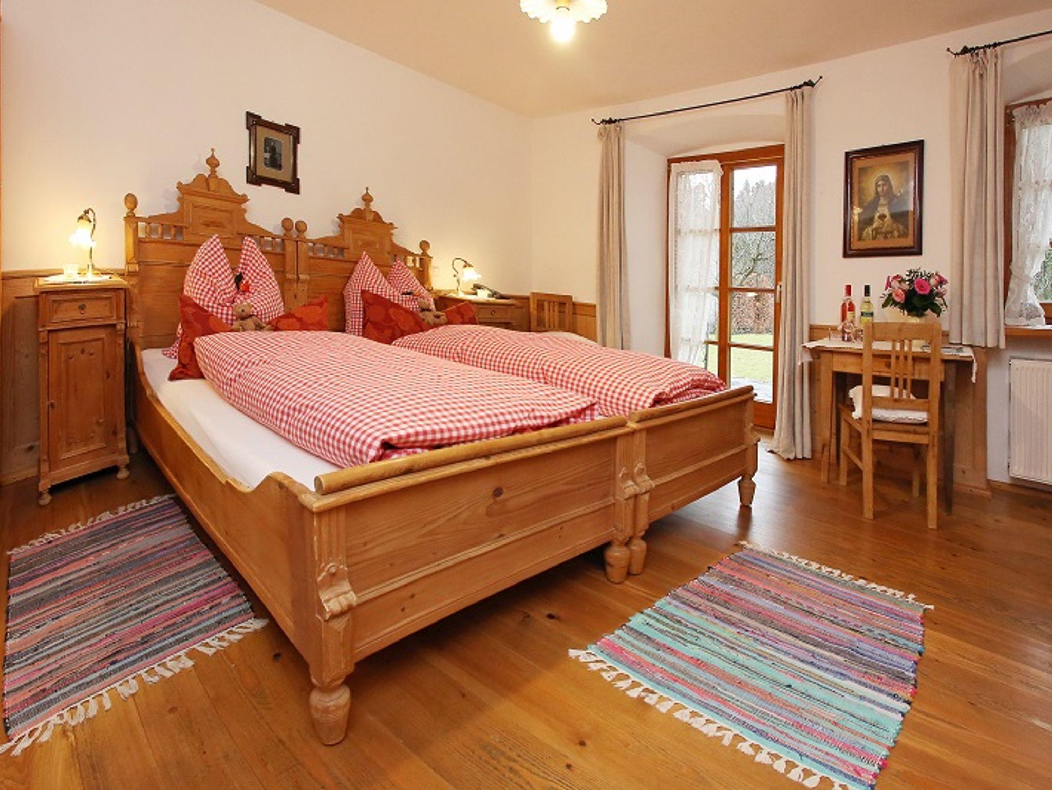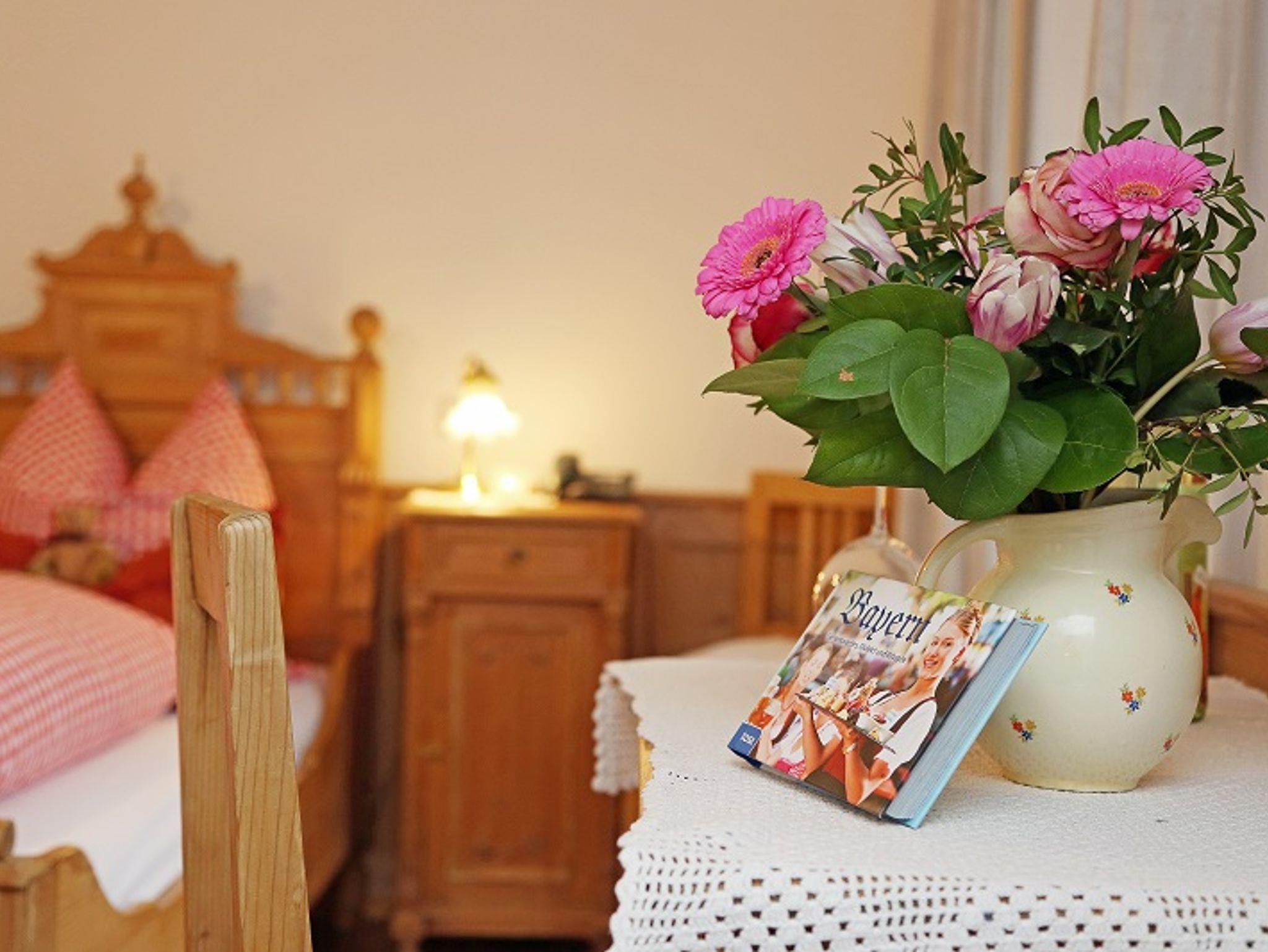 Am Ortsrand von Bernau, etwa 3 km zum Chiemseestrand in traumhafter, sonniger Lage inmitten bäuerlicher Blumenwiesen steht unser liebenswertes, ehemaliges Bauerhaus noch original aus dem Jahre 1850 aus Lehm und Stein.Großer Bauergarten mit Sonnenliegen, Lounge und vielen schattigen Plätzen mit freiem Blick ins Tal. Ausstattung: DZ/FEWOS mit Balkon/Terrasse Du/WC, Sitzgruppe, Couch, Flachbild-TV, kostenlosem W-LAN, Naturholzböden, restaurierte Bauernmöbel um die Jahrhundertwende. Bezogene Betten mit karierter Bettwäsche. Besonderheiten: regionales Frühstücksbüffet in der Bauerstube am Kachelofen oder im Pavillion im Bauerngarten auf der Blumenwiese. Das Frühstück ist bei den Zimmern im Preis inkludiert. Grillmöglichkeit. Direkt vorm Haus Wanderwege zur Kampenwand oder zur Radltour um den Chiemsee. Pauschalangebote, Parkplatz am Haus, keine Haustiere, Fahrradgarage, Nichtraucherhaus. Fahrradverleih. E-Ladestation für Autos sowie E-Bikes vorhanden.