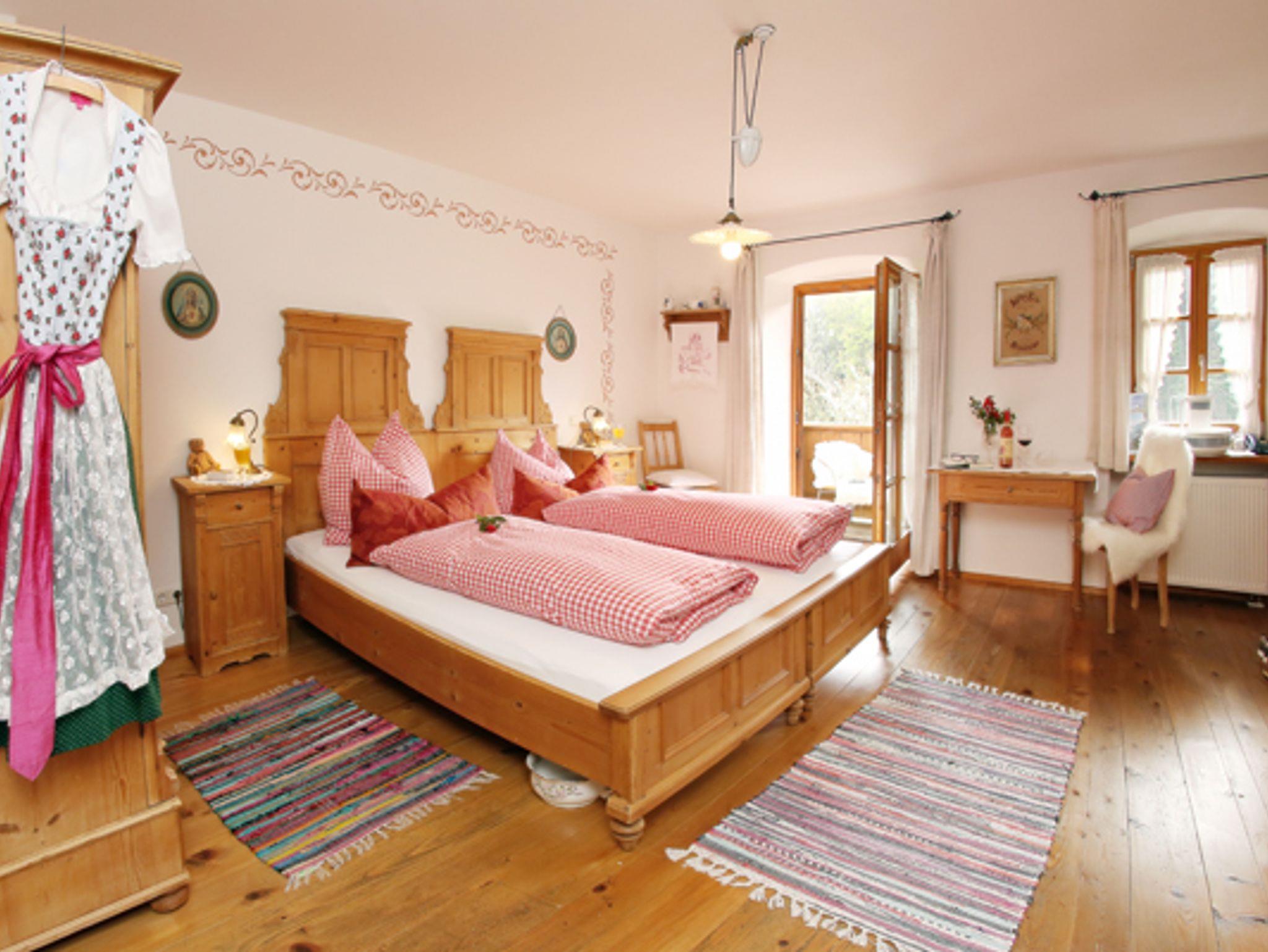 Am Ortsrand von Bernau, etwa 3 km zum Chiemseestrand in traumhafter, sonniger Lage inmitten bäuerlicher Blumenwiesen steht unser liebenswertes, ehemaliges Bauerhaus noch original aus dem Jahre 1850 aus Lehm und Stein.Großer Bauergarten mit Sonnenliegen, Lounge und vielen schattigen Plätzen mit freiem Blick ins Tal. Ausstattung: DZ/FEWOS mit Balkon/Terrasse Du/WC, Sitzgruppe, Couch, Flachbild-TV, kostenlosem W-LAN, Naturholzböden, restaurierte Bauernmöbel um die Jahrhundertwende. Bezogene Betten mit karierter Bettwäsche. Besonderheiten: regionales Frühstücksbüffet in der Bauerstube am Kachelofen oder im Pavillion im Bauerngarten auf der Blumenwiese. Das Frühstück ist bei den Zimmern im Preis inkludiert. Grillmöglichkeit. Direkt vorm Haus Wanderwege zur Kampenwand oder zur Radltour um den Chiemsee. Pauschalangebote, Parkplatz am Haus, keine Haustiere, Fahrradgarage, Nichtraucherhaus. Fahrradverleih. E-Ladestation für Autos sowie E-Bikes vorhanden.