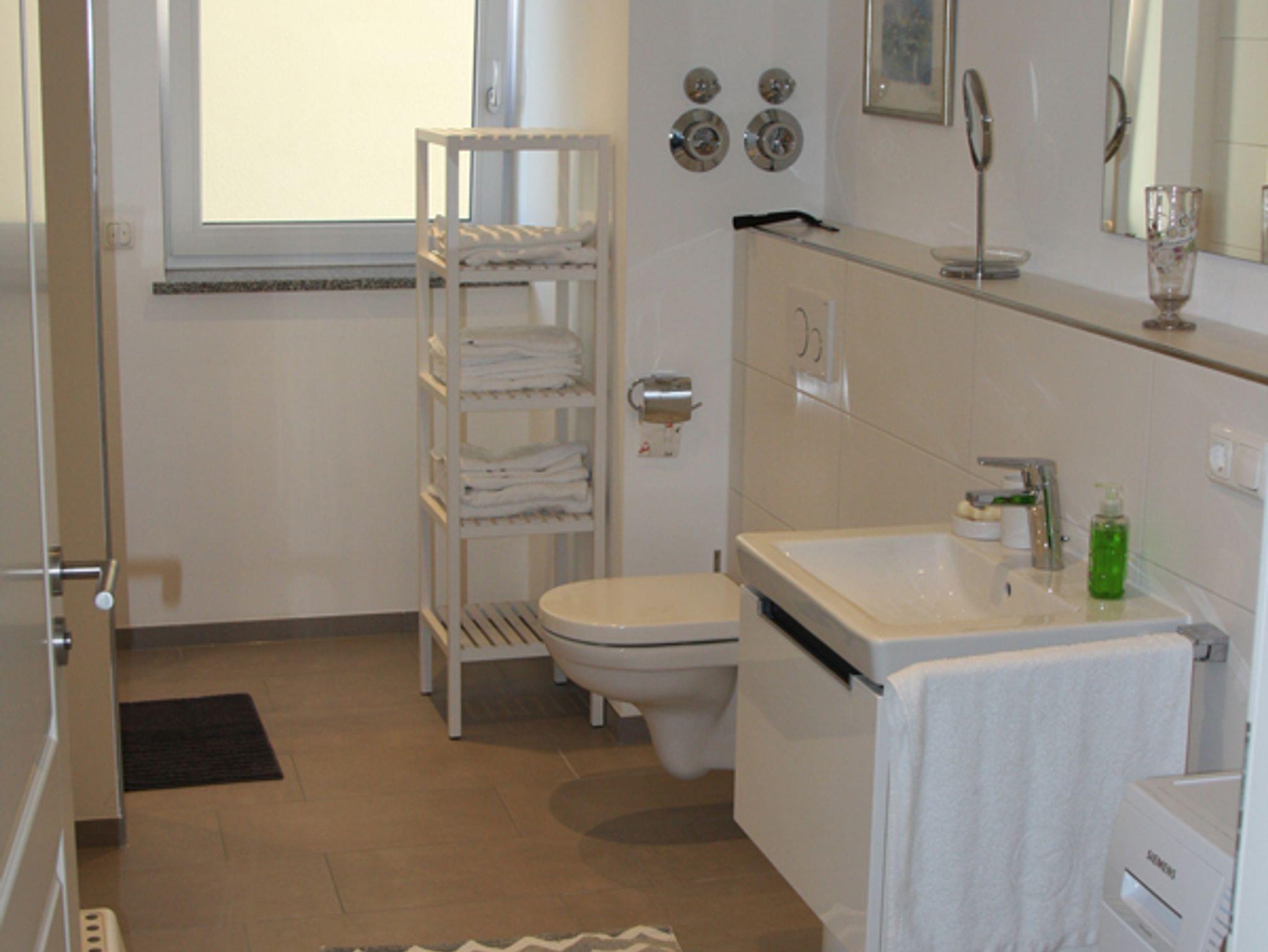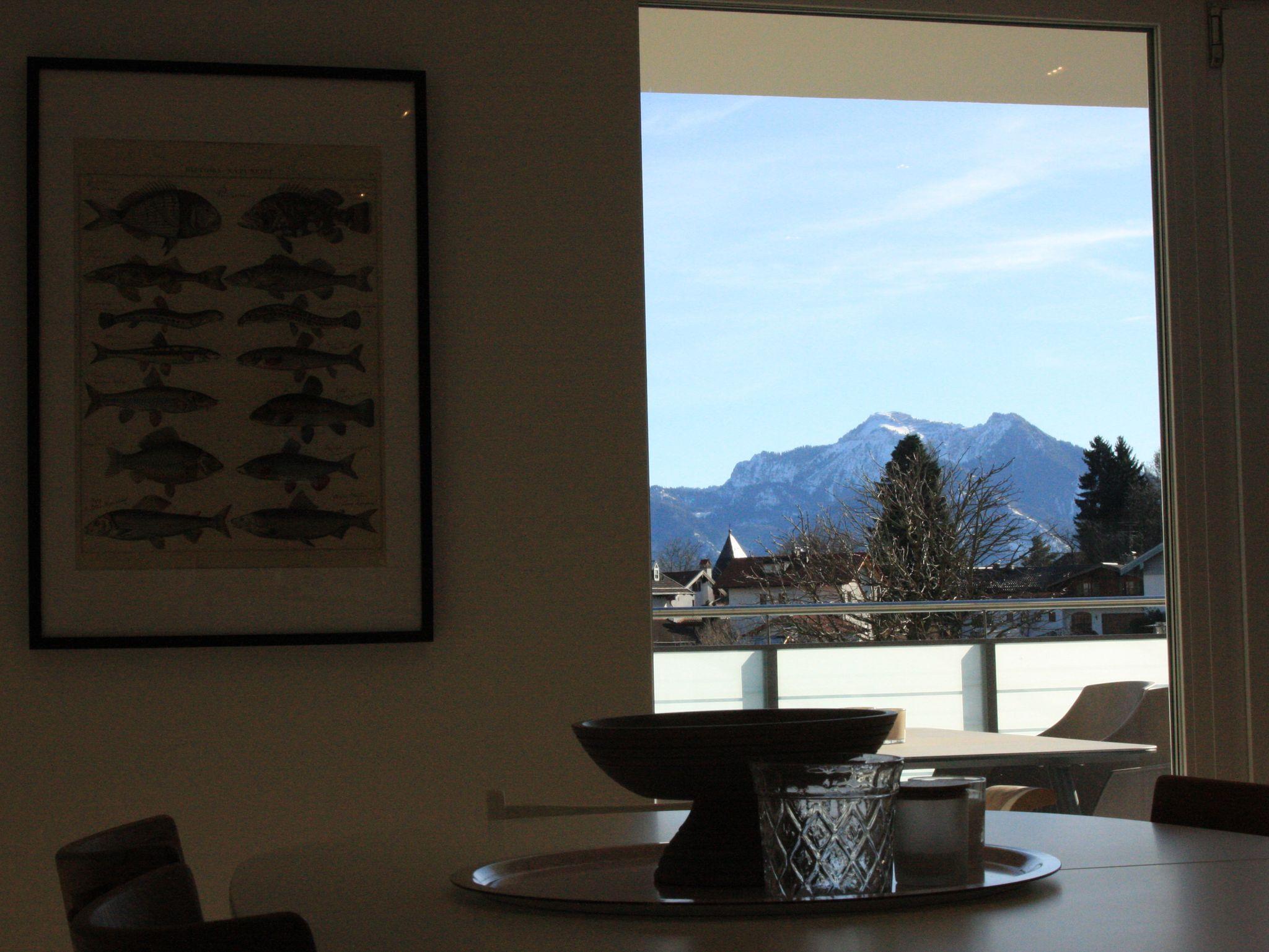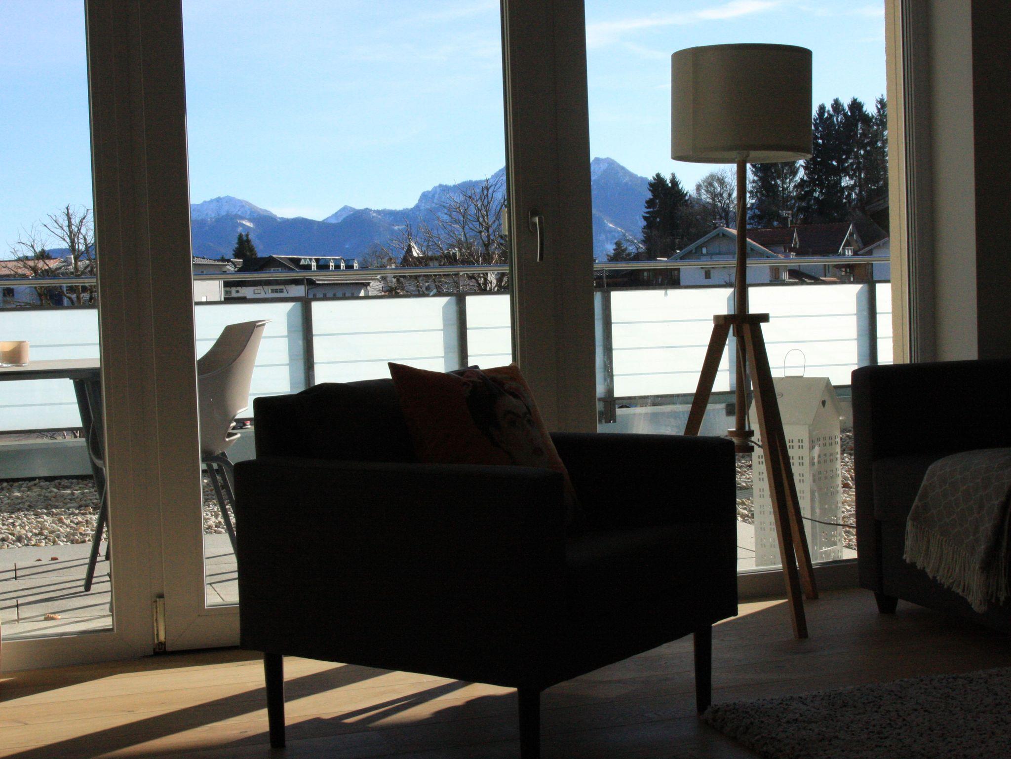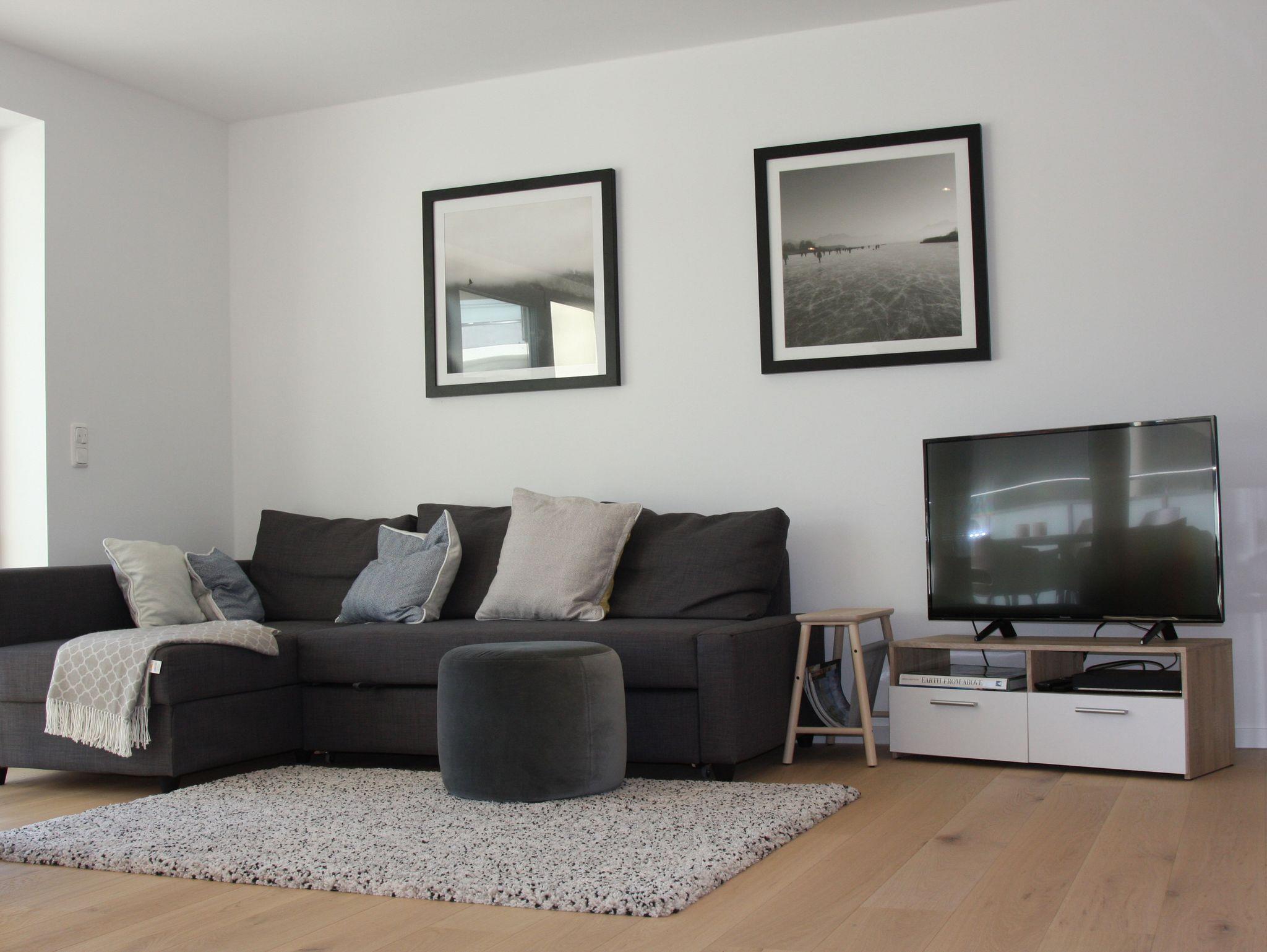 Unsere Ferienwohnung im Herzen Bernaus und unweit des Chiemsees ist ideal für alle, die es zentral und komfortabel lieben.Das Wohnzimmer ist sehr geräumig und verfügt über eine hochwertige, offene Küche sowie eine große Fensterfront (bodentief). Dem Wohnzimmer schließt sich eine großzügige, halb überdachte Terrasse an, von der aus man einen herrlichen Blick auf die umliegende Bergkette hat.42-Zoll-Flat-TV und High-Speed WLAN Anschluss sind obligatorisch. Die Küche ist mit hochwertigen Geräten versehen, es gibt einen Backofen, eine separate Mikrowelle und einen Induktionsherd, eine Spülmaschine und einen großen Kühl- und Gefrierschrank. Sie ist außerdem ausgestattet mit einer Kaffeemaschine, Wasserkocher und Toaster. Der Essbereich lädt zum gemütlichen Beisammensein ein. Eines der beiden Schlafzimmer ist ausgestattet mit einem 1,80 m breiten Doppelbett, das zweite Schlafzimmer mit zwei Einzelbetten, die bei Bedarf zusammengeschoben werden können. Darüber hinaus befindet sich in den Schlafzimmern jeweils ein großer Kleiderschrank. Das geräumige Bad mit Dusche enthält außerdem einen Wasch-Trockner.