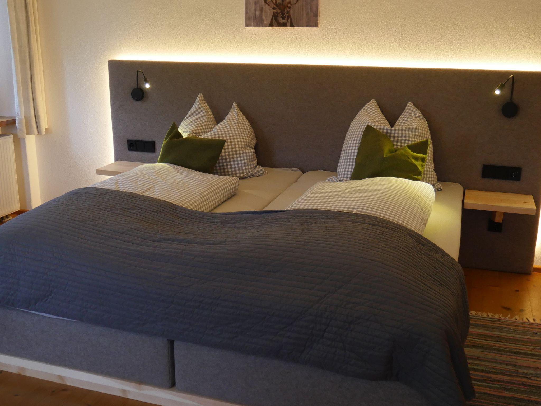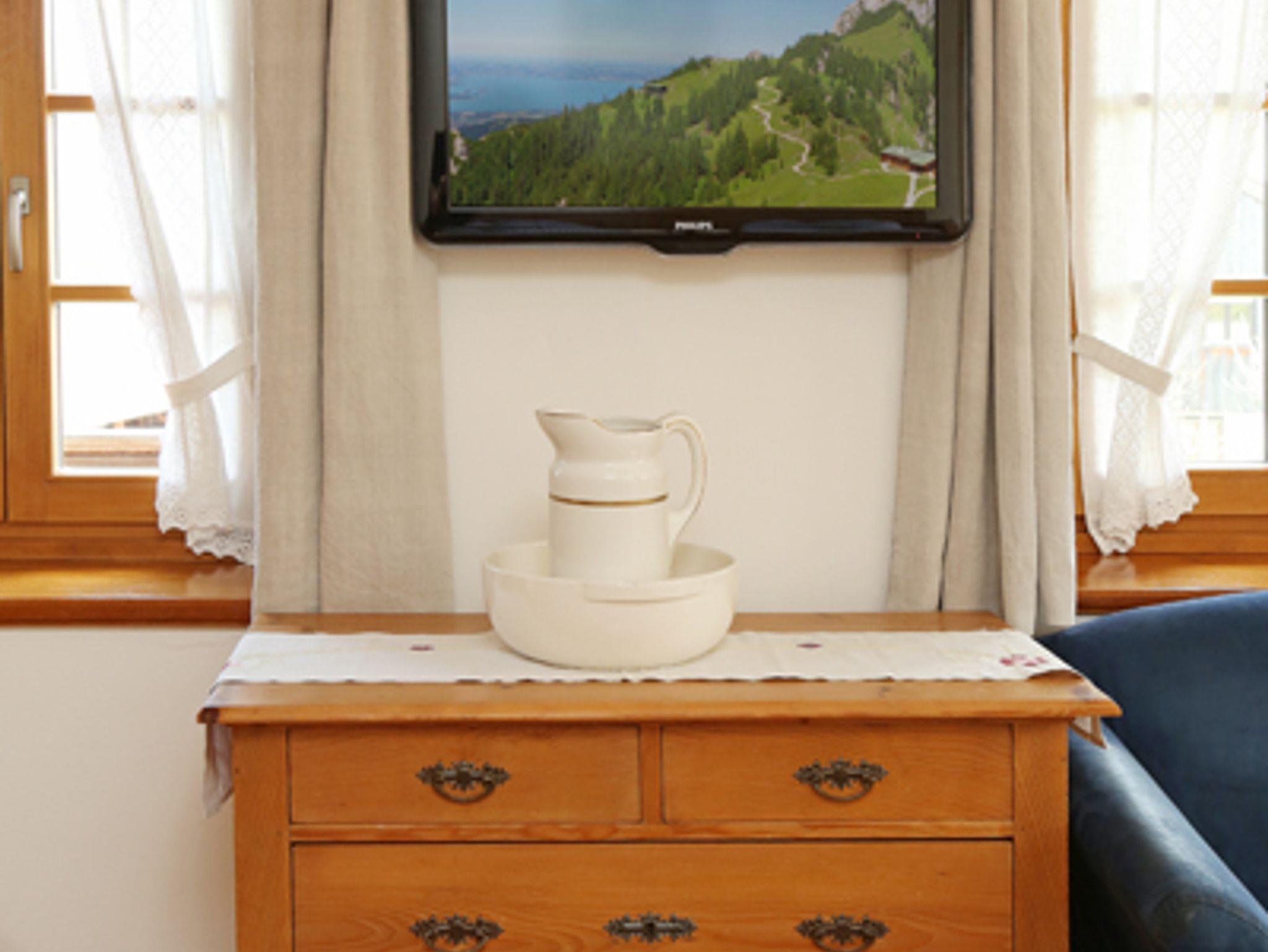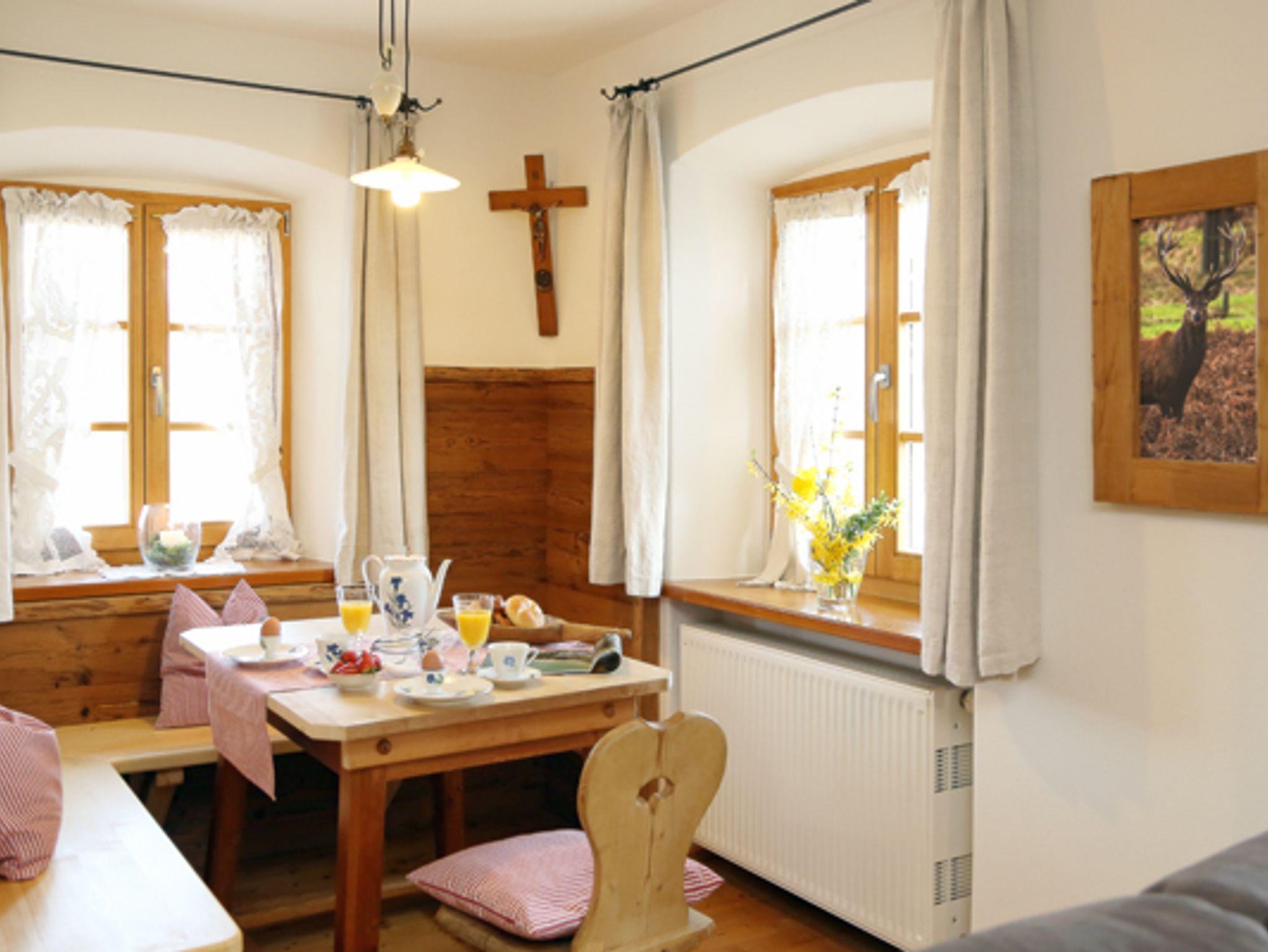 Am Ortsrand von Bernau, etwa 3 km zum Chiemseestrand in traumhafter, sonniger Lage inmitten bäuerlicher Blumenwiesen steht unser liebenswertes, ehemaliges Bauerhaus noch original aus dem Jahre 1850 aus Lehm und Stein. Großer Bauergarten mit Sonnenliegen, Lounge und vielen schattigen Plätzen mit freien Blick ins Tal. Ausstattung: DZ/FEWOS mit Balkon/Terrasse Du/WC, Sitzgruppe, Couch, Flachbild-TV, kostenlosem W-LAN, Naturholzböden, restaurierte Bauernmöbel um die Jahrhundertwende. Bezogene Betten mit karierter Bettwäsche. Besonderheiten: Auf Anfrage und gegen Aufpreis kann das Frühstück für die Ferienwohnungen dazu gebucht werden. Grillmöglichkeit. Direkt vorm Haus Wanderwege zur Kampenwand oder zur Radltour um den Chiemsee. Pauschalangebote, Parkplatz am Haus, keine Haustiere, Fahrradgarage, Nichtraucherhaus. Fahrradverleih.