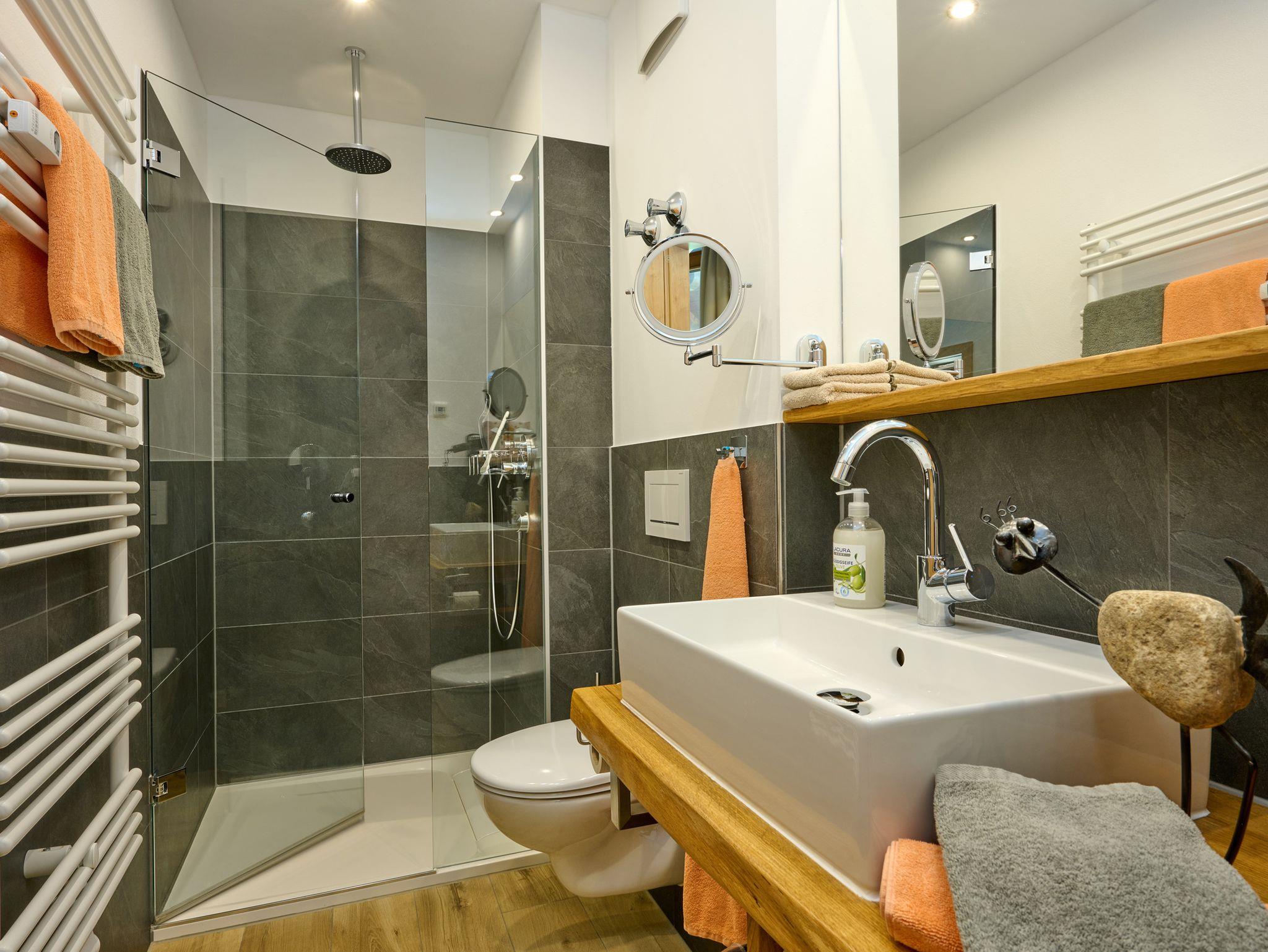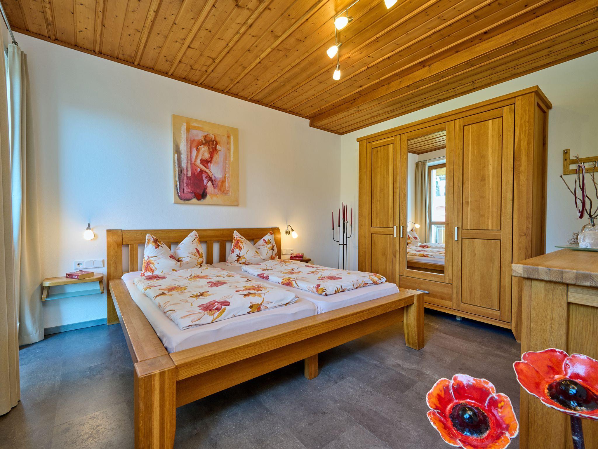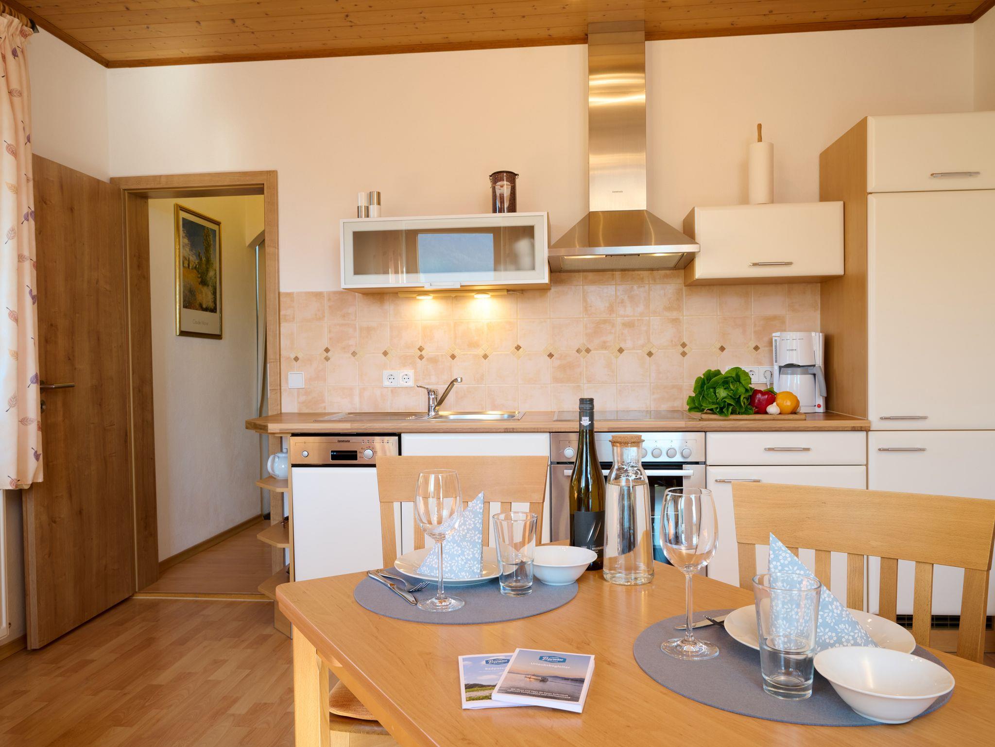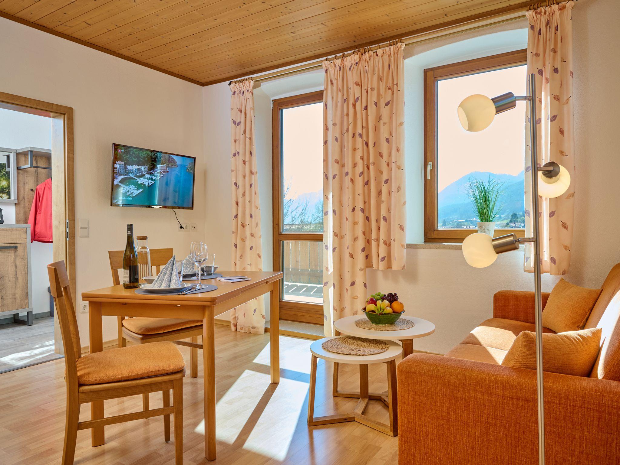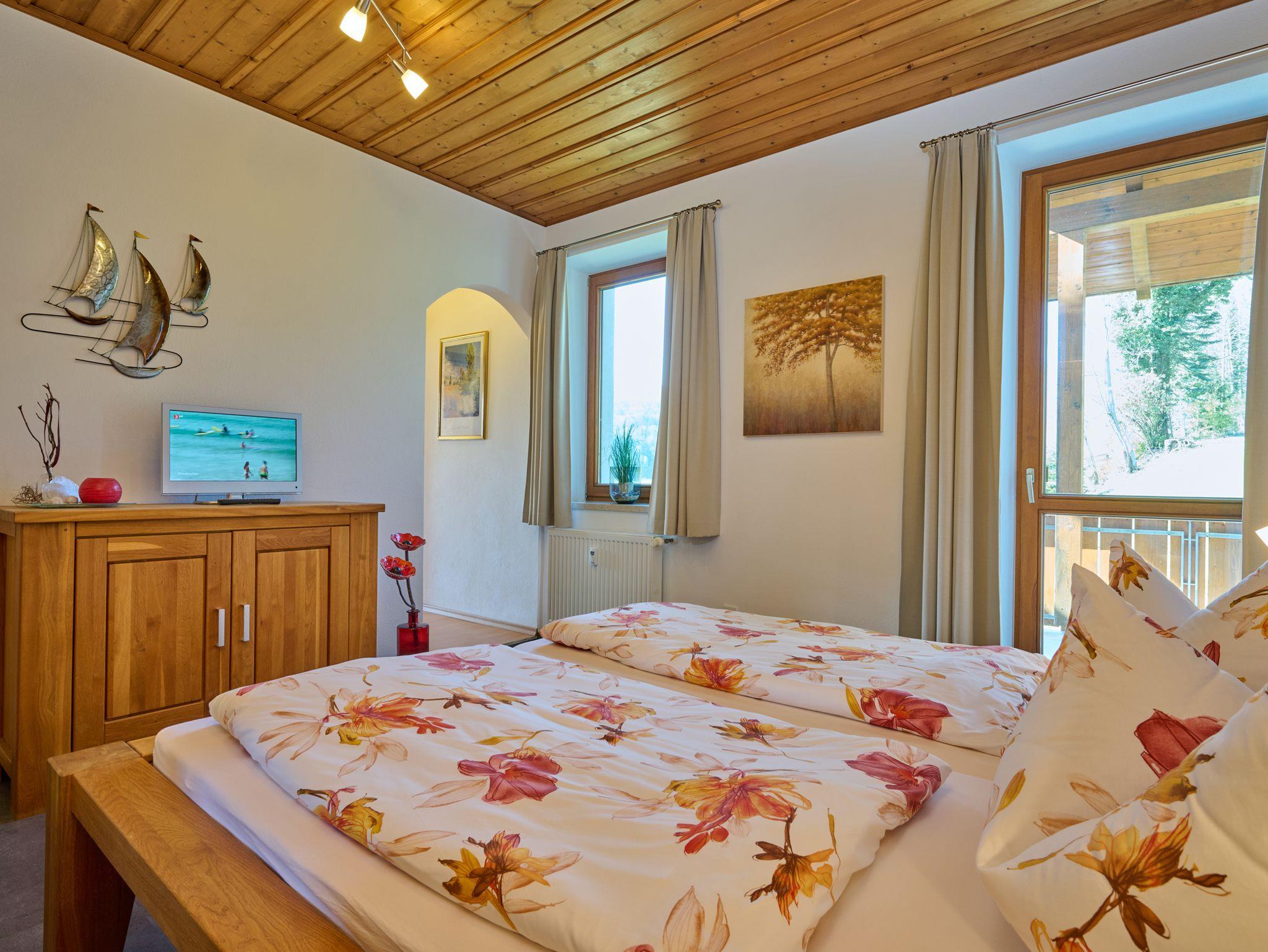 Diese komfortable Ferienwohnung verfügt über ein Schlafzimmer mit Doppelbett und Zugang zu einem überdachten,9 m² großen Balkon auf dem sie die letzten Sonnenstrahlen des Tages genießen können.Die Wohnküche ist mit allen Extras incl. Spülmaschine ausgestattet. Von dort aus können sie den großen Südbalkon (14 m²) mit Blick auf die Chiemgauer Alpen nutzen. Ein neues, optimal geplantes Bad mit handgeschreinerten Badmöbeln, Regendusche, Fußbodenheizung und Handtuchwärmer wird für die Dauer ihres Aufenthaltes zur Wohlfühloase.