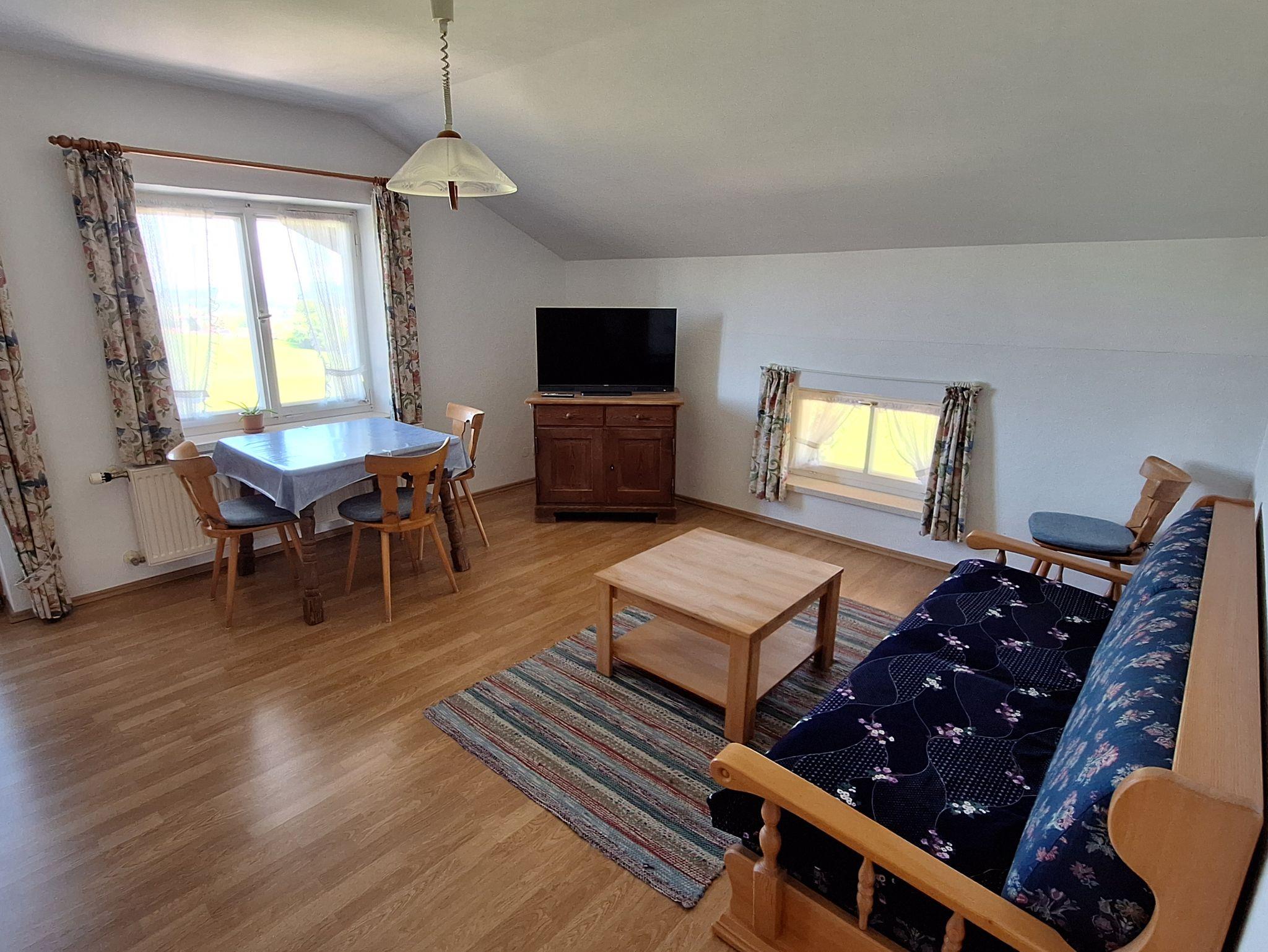 Gepflegter familienbetriebener Bauernhof in ruhiger Lage mit freiem Blick auf die Berge, Wiesen und Wald. Wir bewirtschaften einen kleinen Bauernhof mit 2 Ferienwohnungen mit Wohnküche, Schlafzimmer, DU/ WC, Balkon, Bettwäsche und Handtücher inklusive. In der Wohnküche gibt es die Möglichkeit eine Schlafcouch auszuziehen, bis zu 2 Schlafmöglichkeiten extra. Kinderbett kann bei Bedarf zugestellt werden. Bei uns auf dem Hof leben unsere Rinder, Hasen, und 2 Ponys.