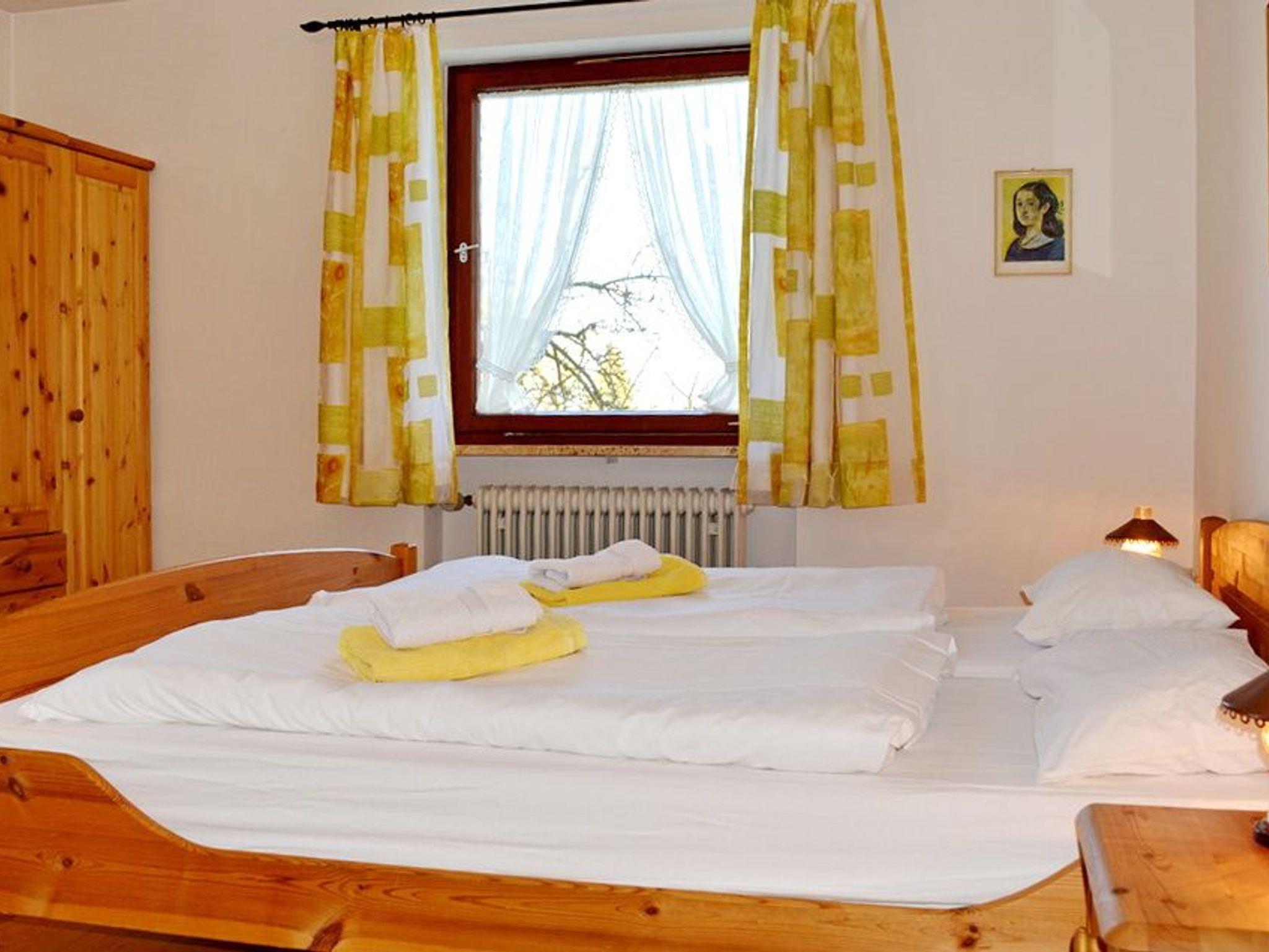 Das großzügige Schlafzimmer ist mit einem Doppelbett und einem Einzelbett ausgestattet. Bei Bedarf steht das Ausziehsofa im Wohnbereich als zusätzliche Schlafmöglichkeit zur Verfügung.