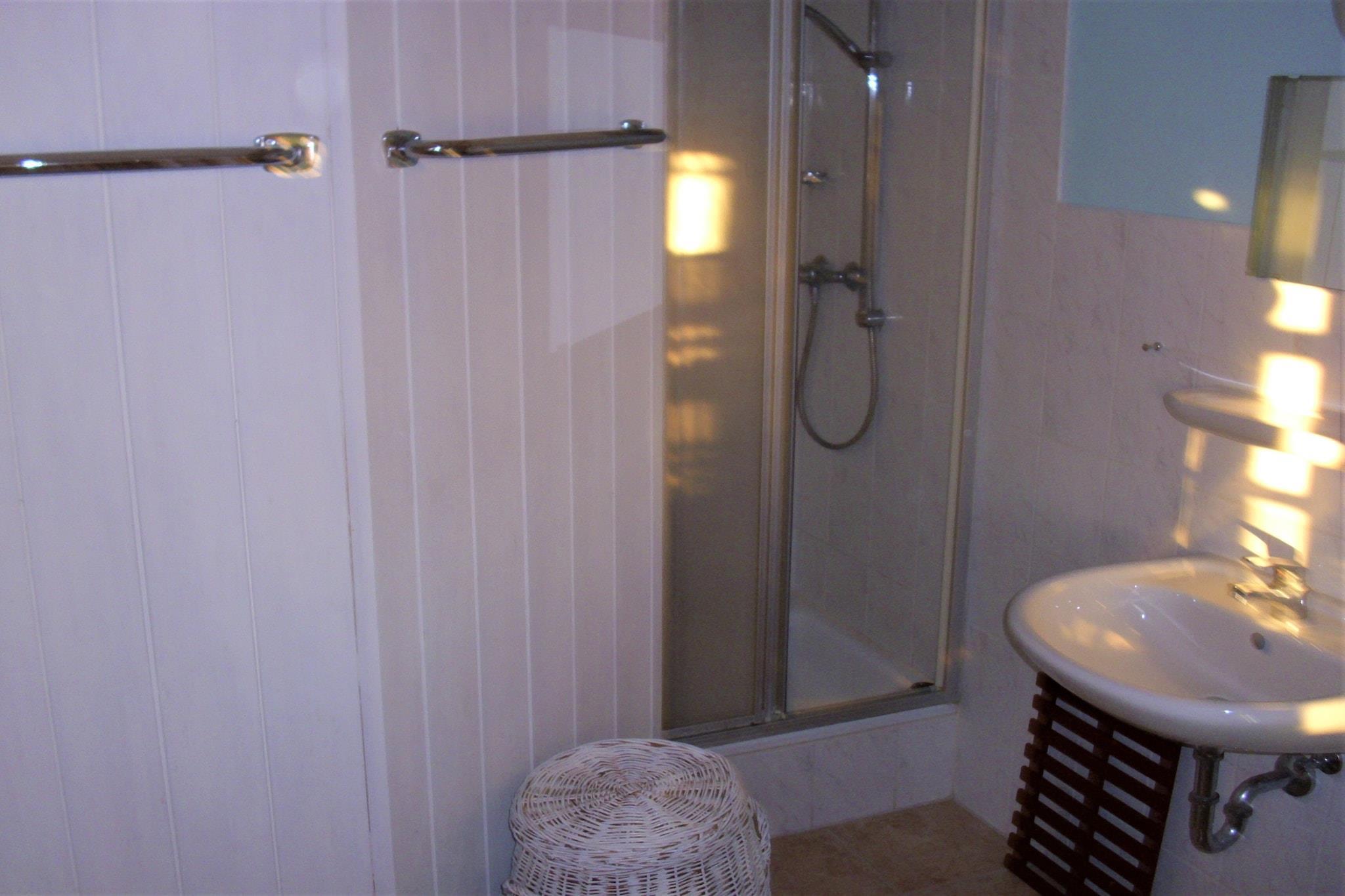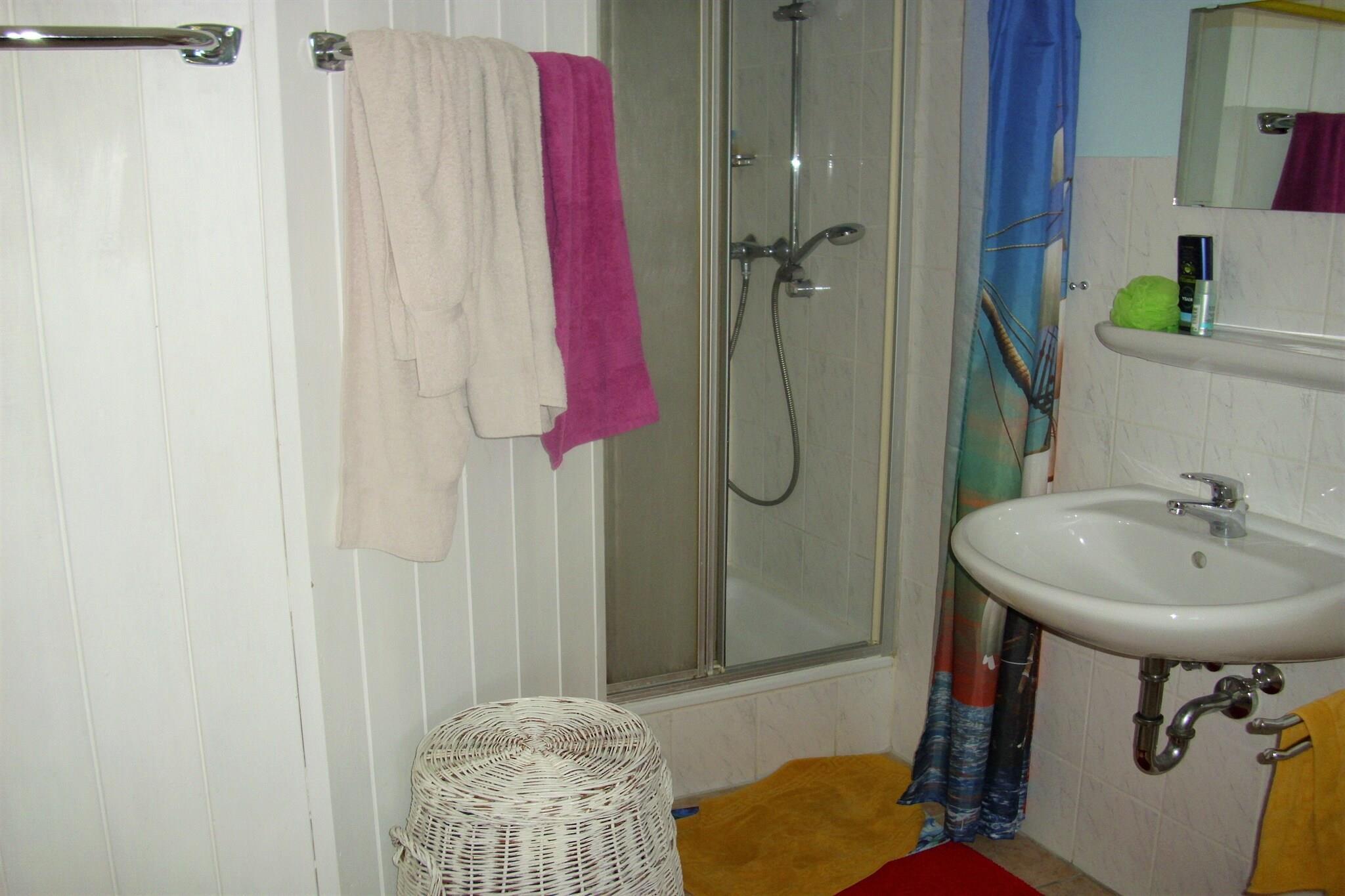 På 1. etage: (Stue(Fjernsyn(parabol), DVD-afspiller, radio, CD-afspiller), Køkken(komfur(Komfur med fire kogeplader), kaffemaskine, ovn, mikrobølgeovn, køle-fryseskab), soveværelse(2x enkeltseng(90 x 190 cm), håndvask), soveværelse(dobbeltseng, håndvask), badeværelse(bruser, håndvask, toilet), havestue/veranda) opholdsrum, tørretumbler(betalt), balkon, varme(central), terrasse, have(deles med andre gæster), havemøbler, grill, parkering, dam, legeredskaber, bordtennisbord, bordtennisbord, bordfodbold, barneseng, barnestol