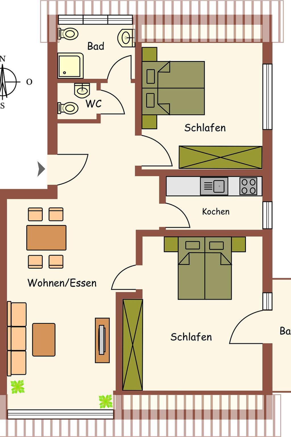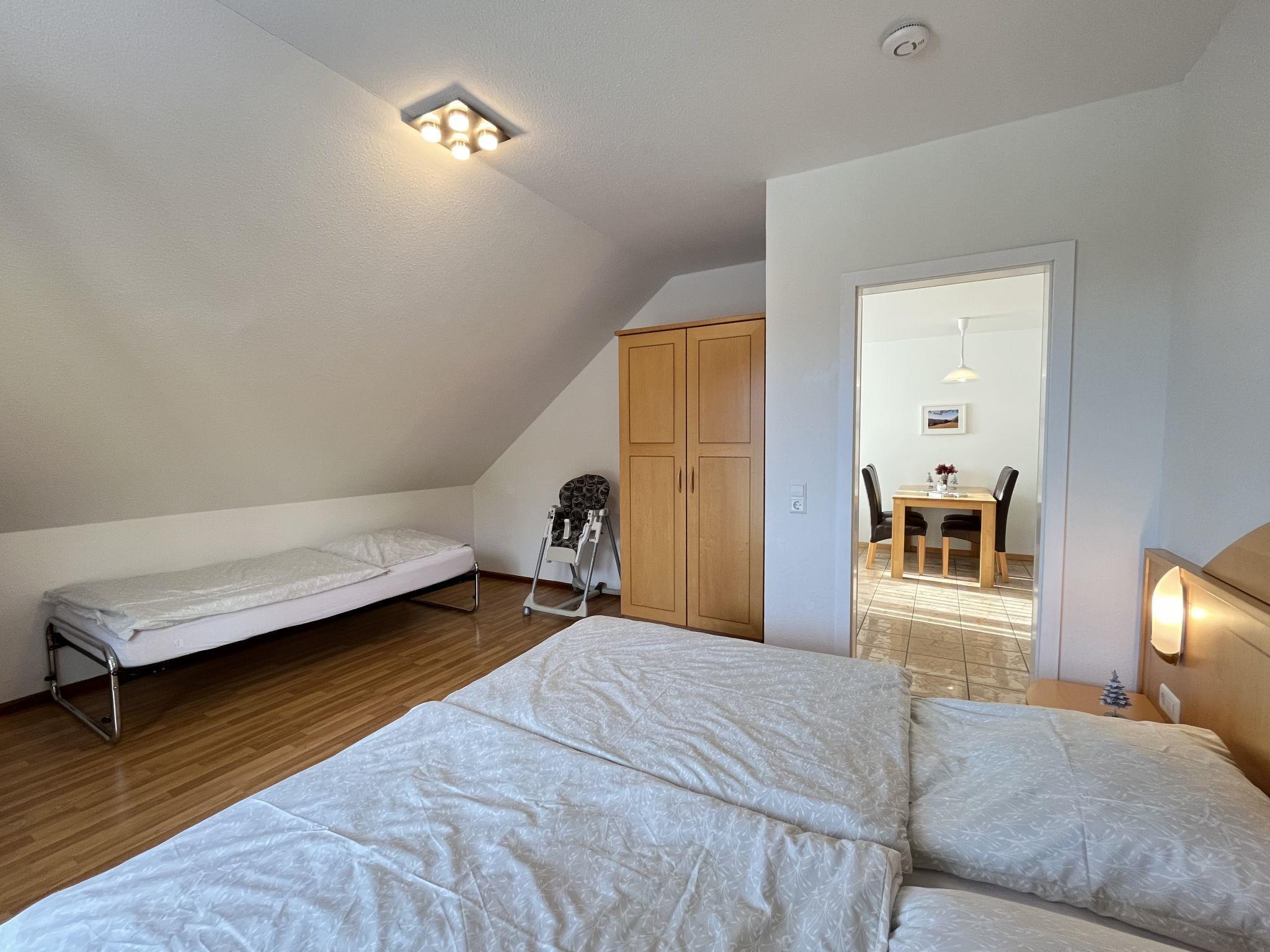 "Schwarzwaldblick II", 3-room apartment 75 m2 on 3rd floor. Practical furnishings: living/sleeping room with 1 double sofabed, dining table and satellite TV. 1 room with 1 double bed. Exit to the balcony. 1 double bedroom. Kitchen (4 hot plates, oven, toaster, kettle, microwave, electric coffee machine). Shower/WC, sep. WC. Heating. Balcony. Balcony furniture. Facilities: children's high chair, baby cot. Internet (WiFi, free). Parking (roofed, 1 car). Please note: non-smokers only. Maximum 2 pets/ dogs allowed. Smoke alarm.