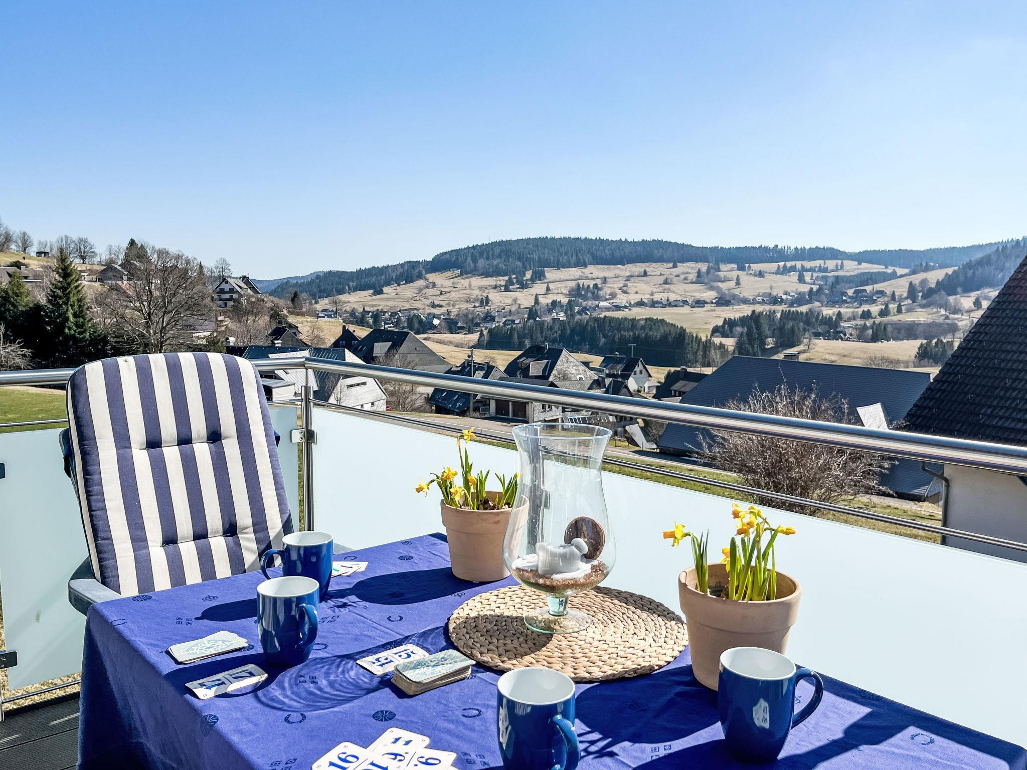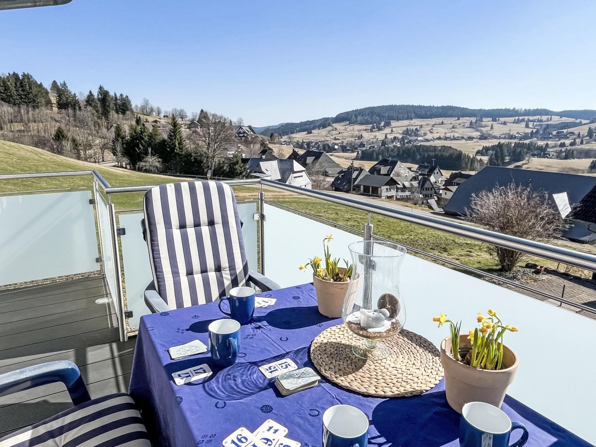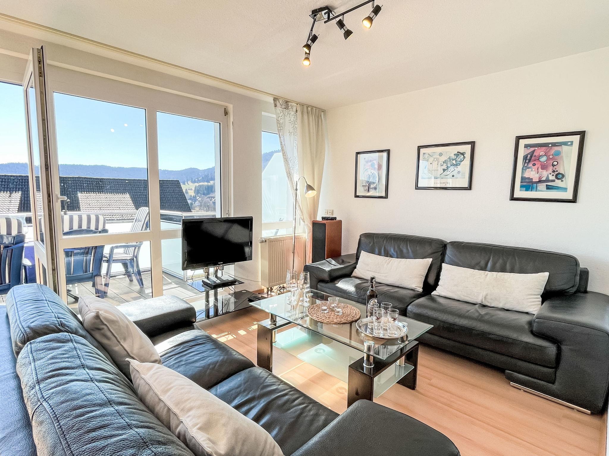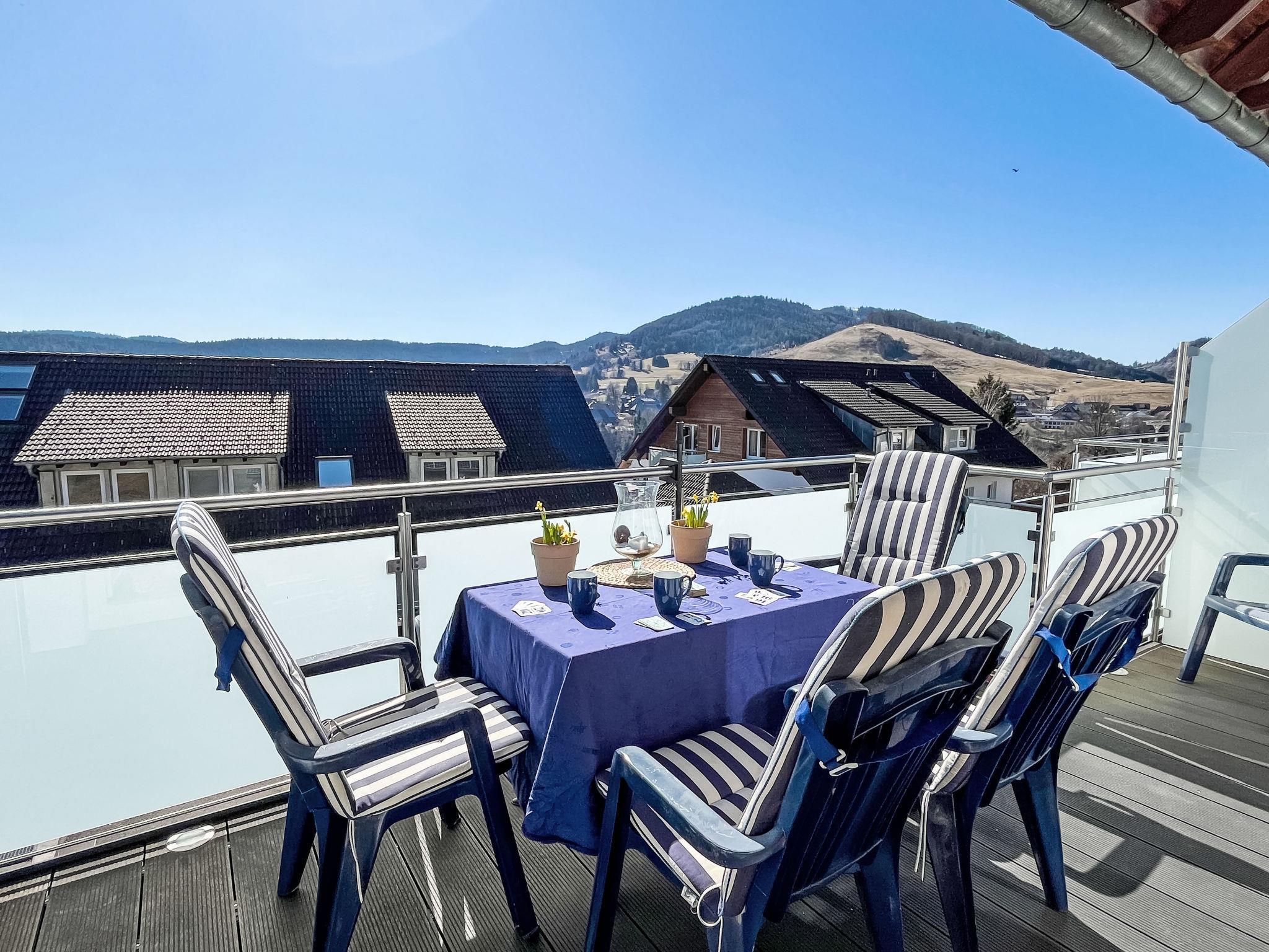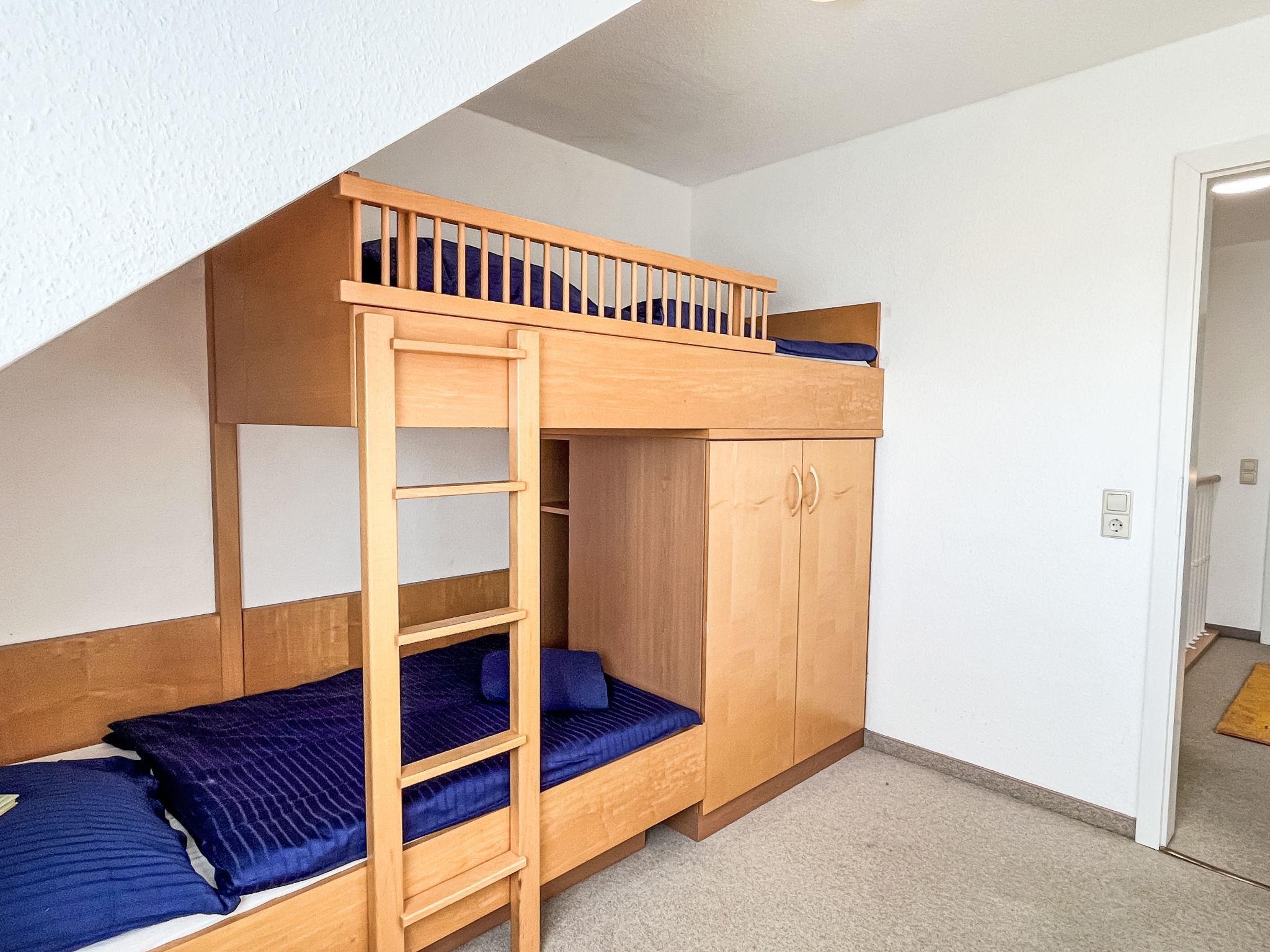 "Schwarzwaldblick IV", 5-room apartment 120 m2 on 2 levels. Practical furnishings: living/dining room with dining nook. Exit to the balcony. 1 room with 1 double bed (1 x 180 cm, length 200 cm). Kitchen (oven, dishwasher, 4 ceramic glass hob hotplates, toaster, kettle, microwave, electric coffee machine). Sep. WC. Upper floor: 2 rooms, each room with 1 double bed (1 x 180 cm, length 200 cm). 1 room with 1 x 2 bunk beds (90 cm, length 200 cm). Bath/shower/WC. Heating. Balcony. Balcony furniture. Facilities: children's high chair, baby cot. Internet (WiFi). Parking (2 cars). Please note: non-smokers only. Smoke alarm.