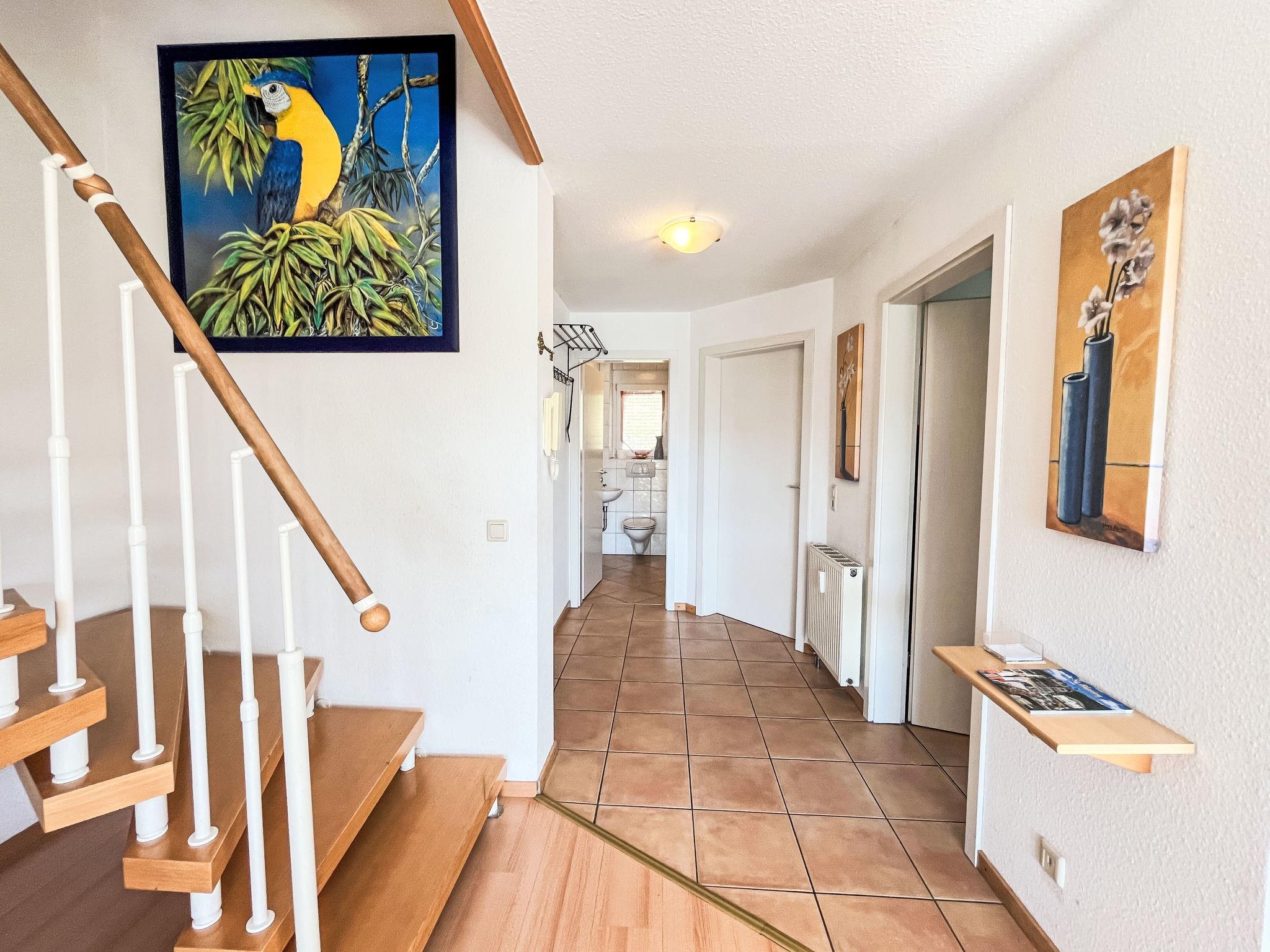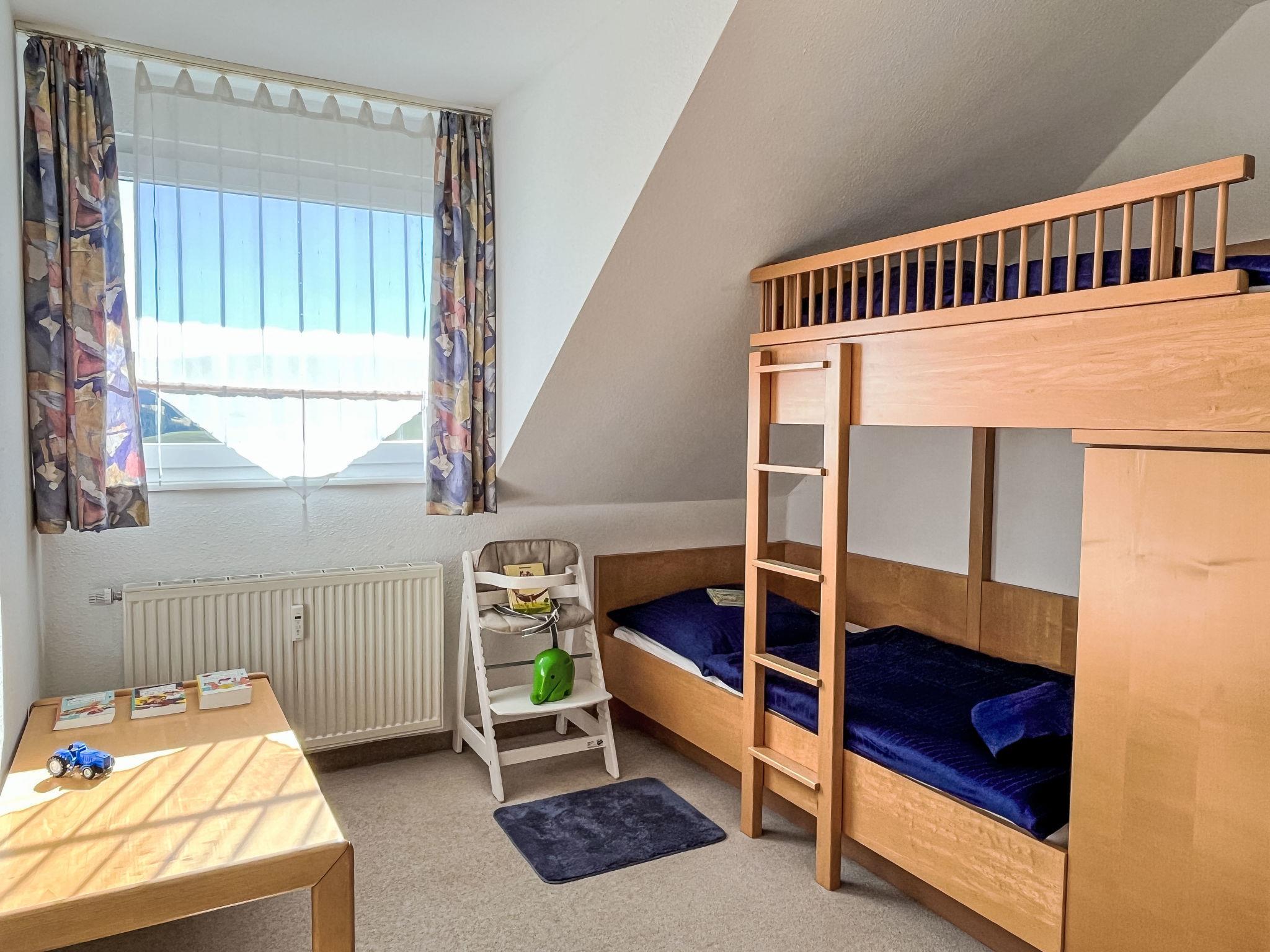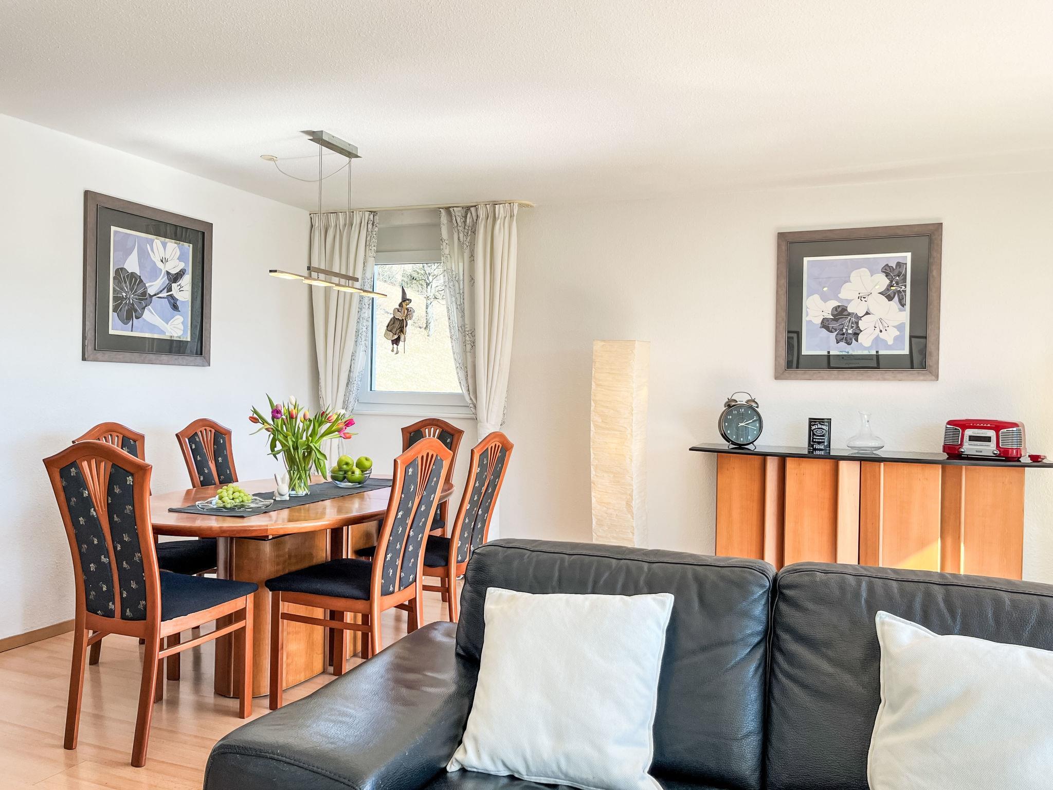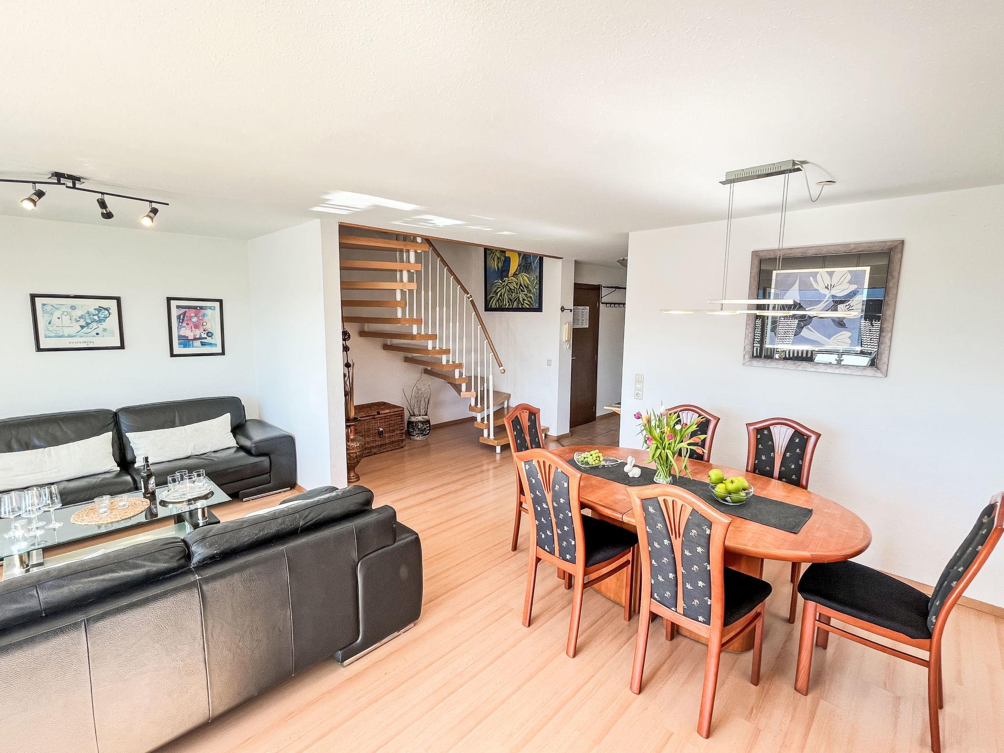 "Schwarzwaldblick IV", 5-room apartment 120 m2 on 2 levels. Practical furnishings: living/dining room with dining nook. Exit to the balcony. 1 room with 1 double bed (1 x 180 cm, length 200 cm). Kitchen (oven, dishwasher, 4 ceramic glass hob hotplates, toaster, kettle, microwave, electric coffee machine). Sep. WC. Upper floor: 2 rooms, each room with 1 double bed (1 x 180 cm, length 200 cm). 1 room with 1 x 2 bunk beds (90 cm, length 200 cm). Bath/shower/WC. Heating. Balcony. Balcony furniture. Facilities: children's high chair, baby cot. Internet (WiFi). Parking (2 cars). Please note: non-smokers only. Smoke alarm.
