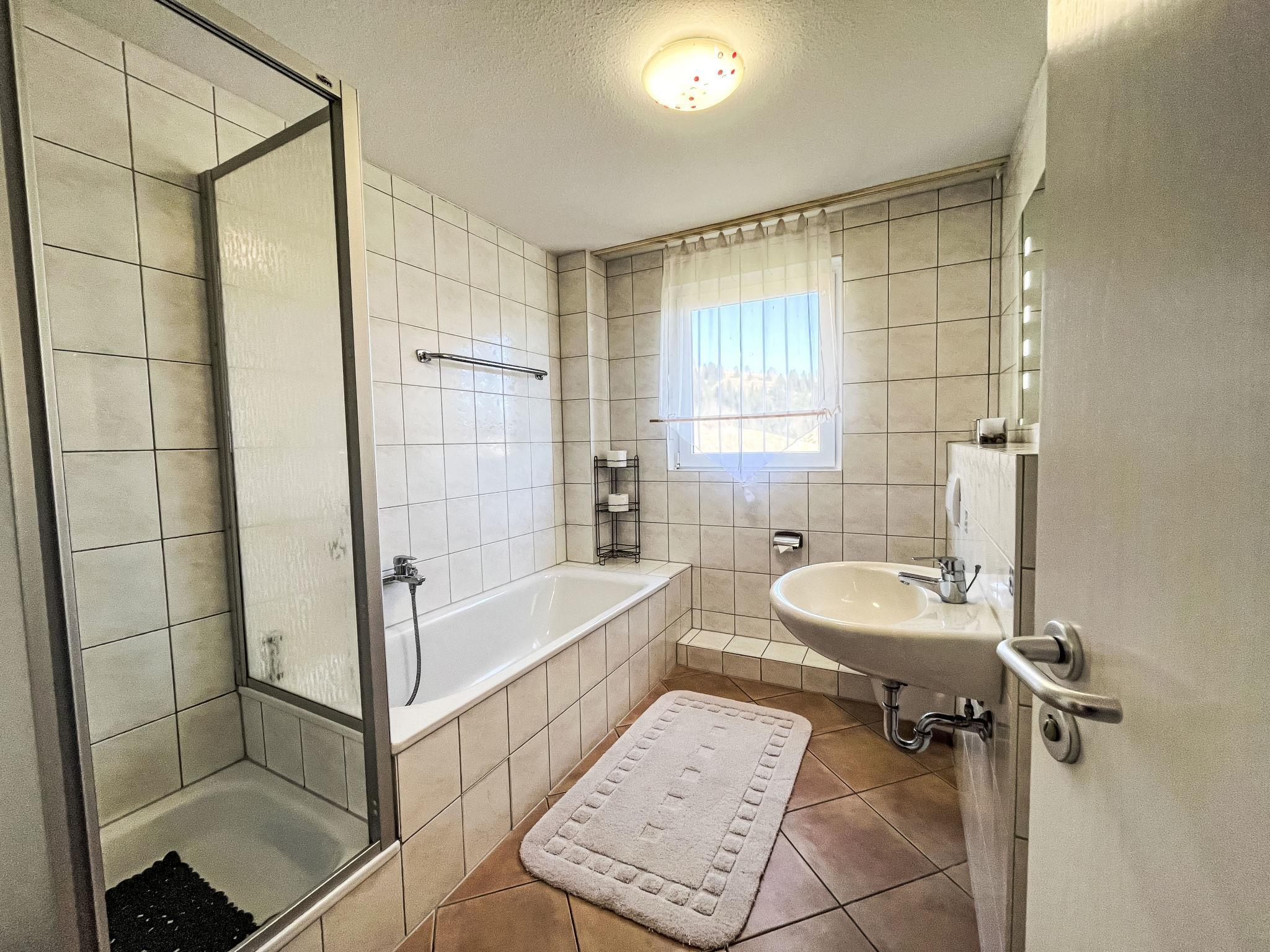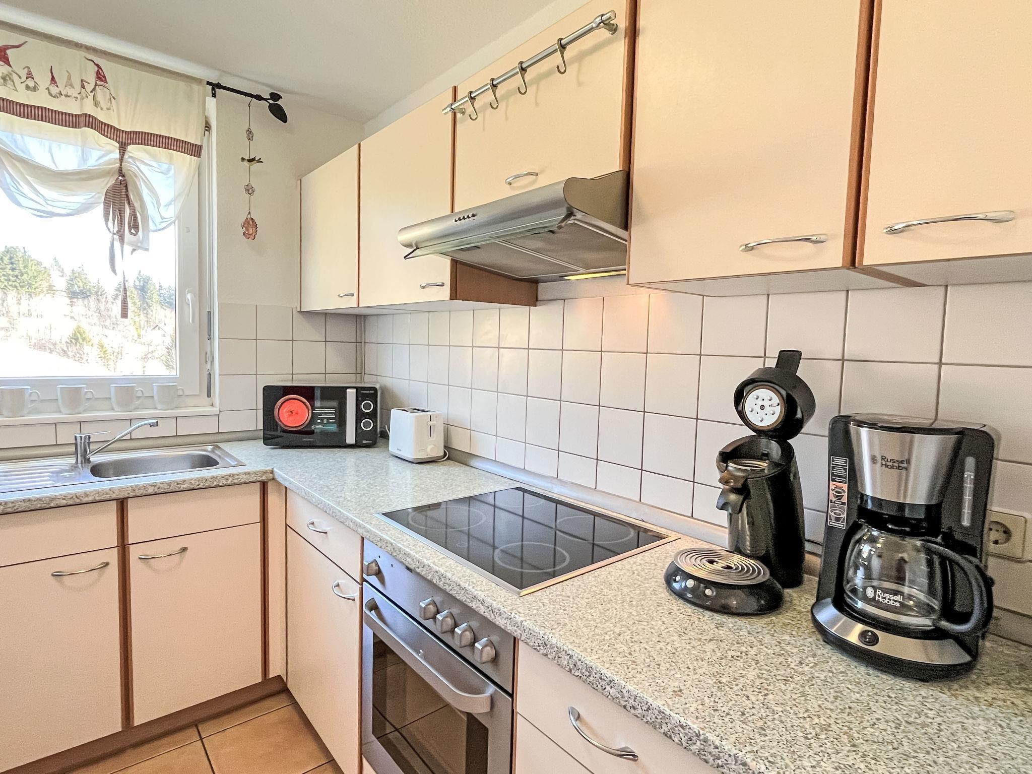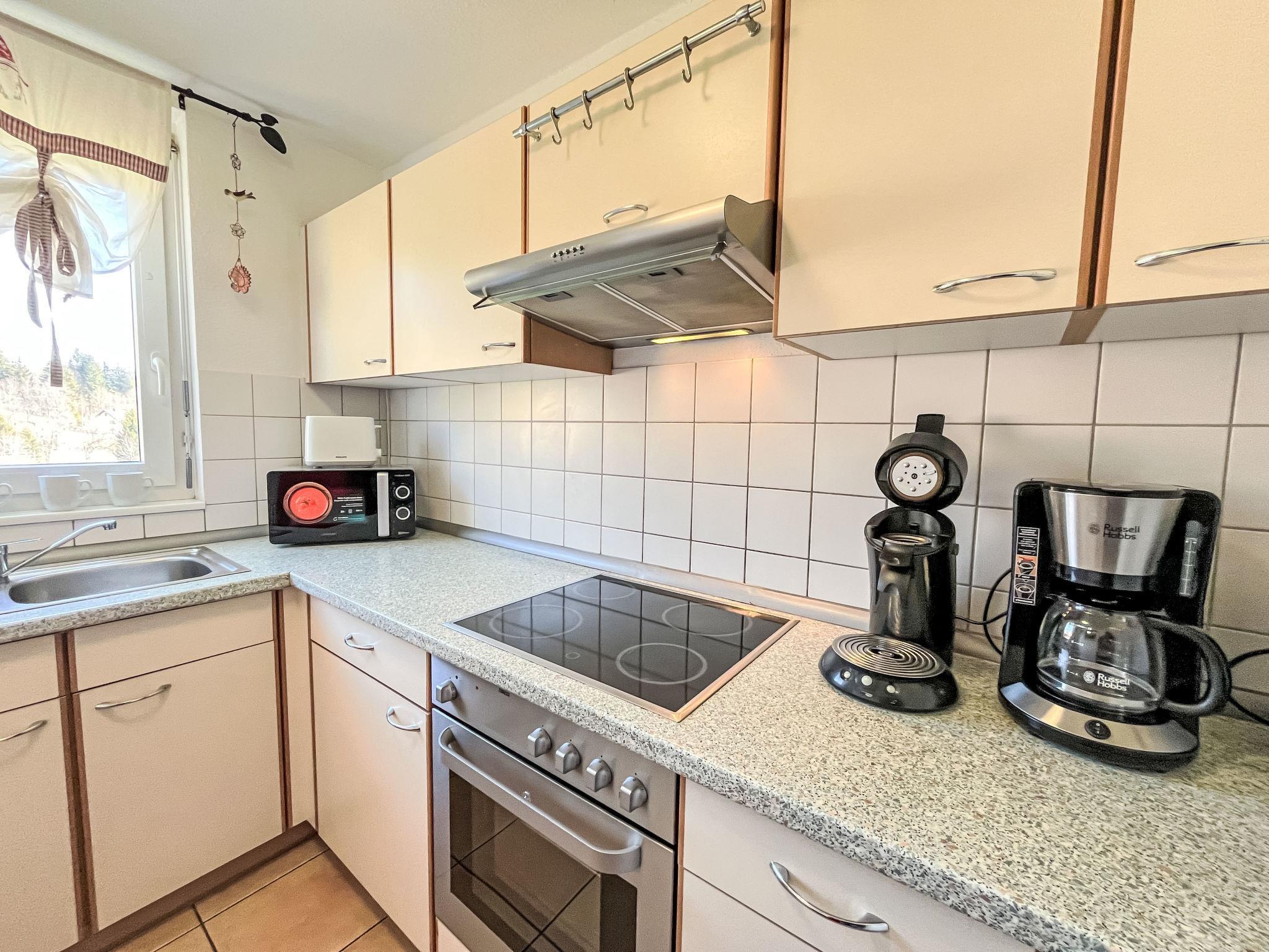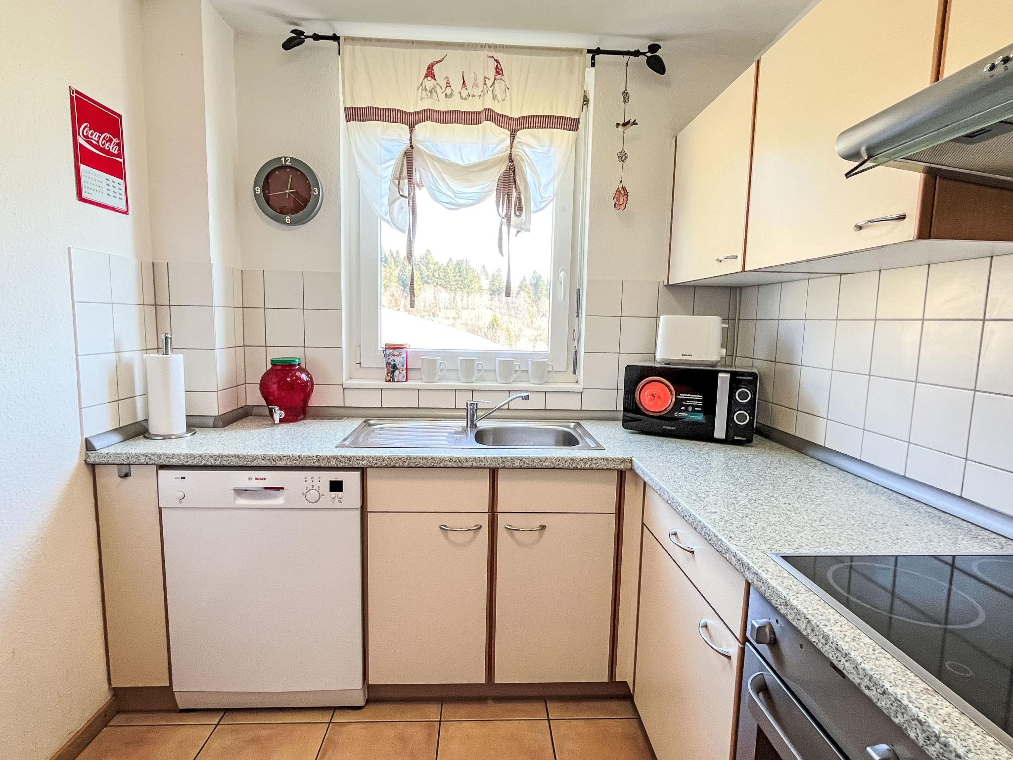 Bernau: Beautiful apartment block "Schwarzwaldblick", 3 storeys. 4 houses in the resort. 20 apartments in the residence. In the district of Riggenbach 1.8 km from the centre of Bernau/Innerlehen, 8.5 km from the centre of St. Blasien, 47 km from the centre of Freiburg im Breisgau, in a quiet, sunny position on a slope. For shared use: terrace, garden furniture, barbecue. In the house: storage room for bicycles, storage room for skis, washing machine, tumble dryer (for shared use, extra). Shop 1.5 km, grocery 1.5 km, restaurant 800 m, bakery 1.5 km, bus stop "Bernau Riggenbach Haus Kaiser" 250 m, railway station "Seebrugg" 21 km, indoor swimming pool 10 km. Ski lift 3.5 km, slopes 3.5 km, ski school 3.5 km, cross country ski track 4 km. Nearby attractions: Dom St. Blasien 8 km, Hasenhorn Sommerrodelbahn Todtnau 19 km, Bikepark Todtnau 19 km, Badeparadies Titisee-Neustadt 30 km. Well-known ski regions can easily be reached: Feldberg / Hochschwarzwald 23 km, Feldberggebiet 23 km. Well-known lakes can easily be reached: Schluchsee 13 km, Titisee 25 km. Hiking paths: Schwarzwald, Hotzenwald. The owner does not accept any groups.