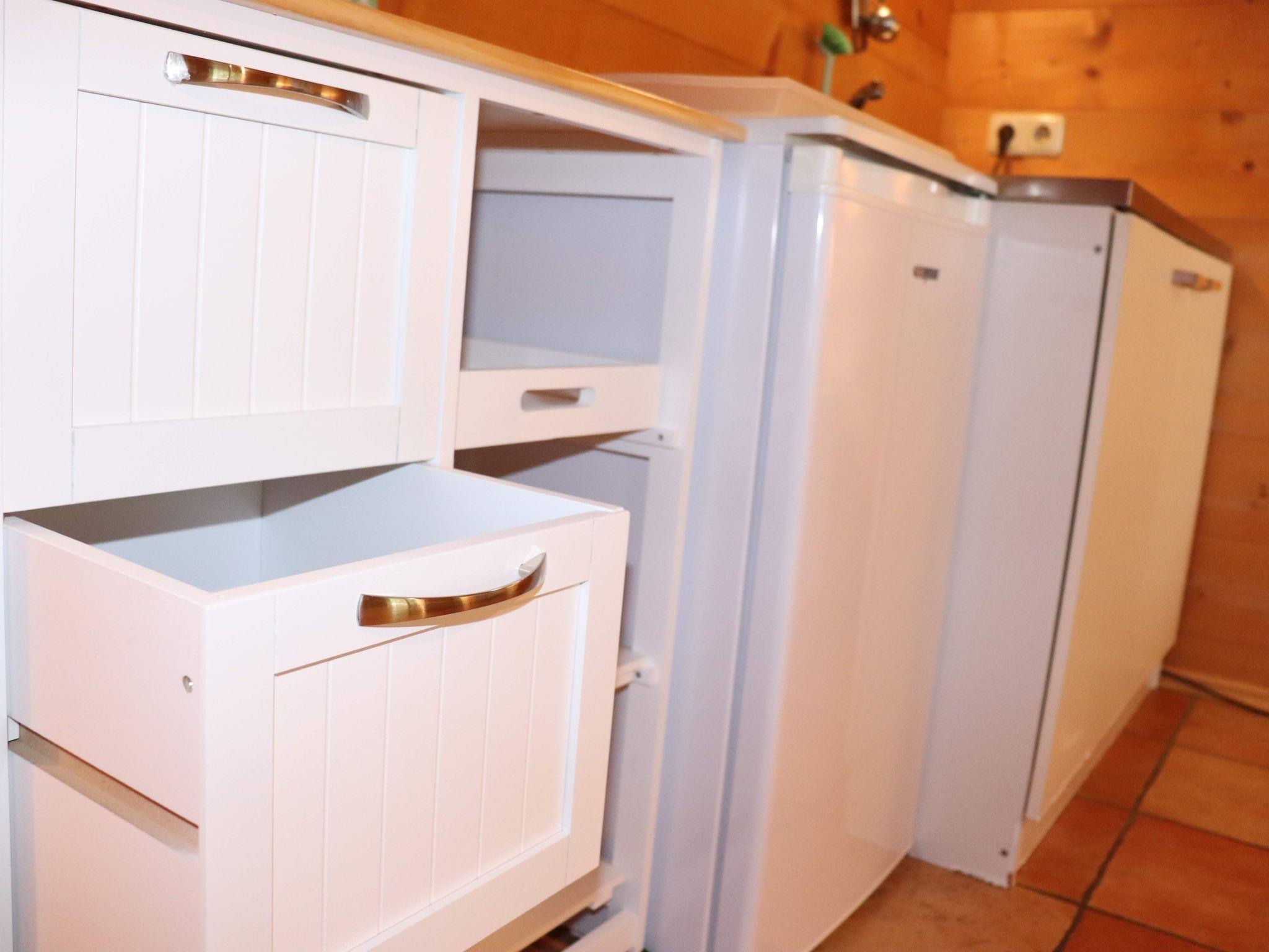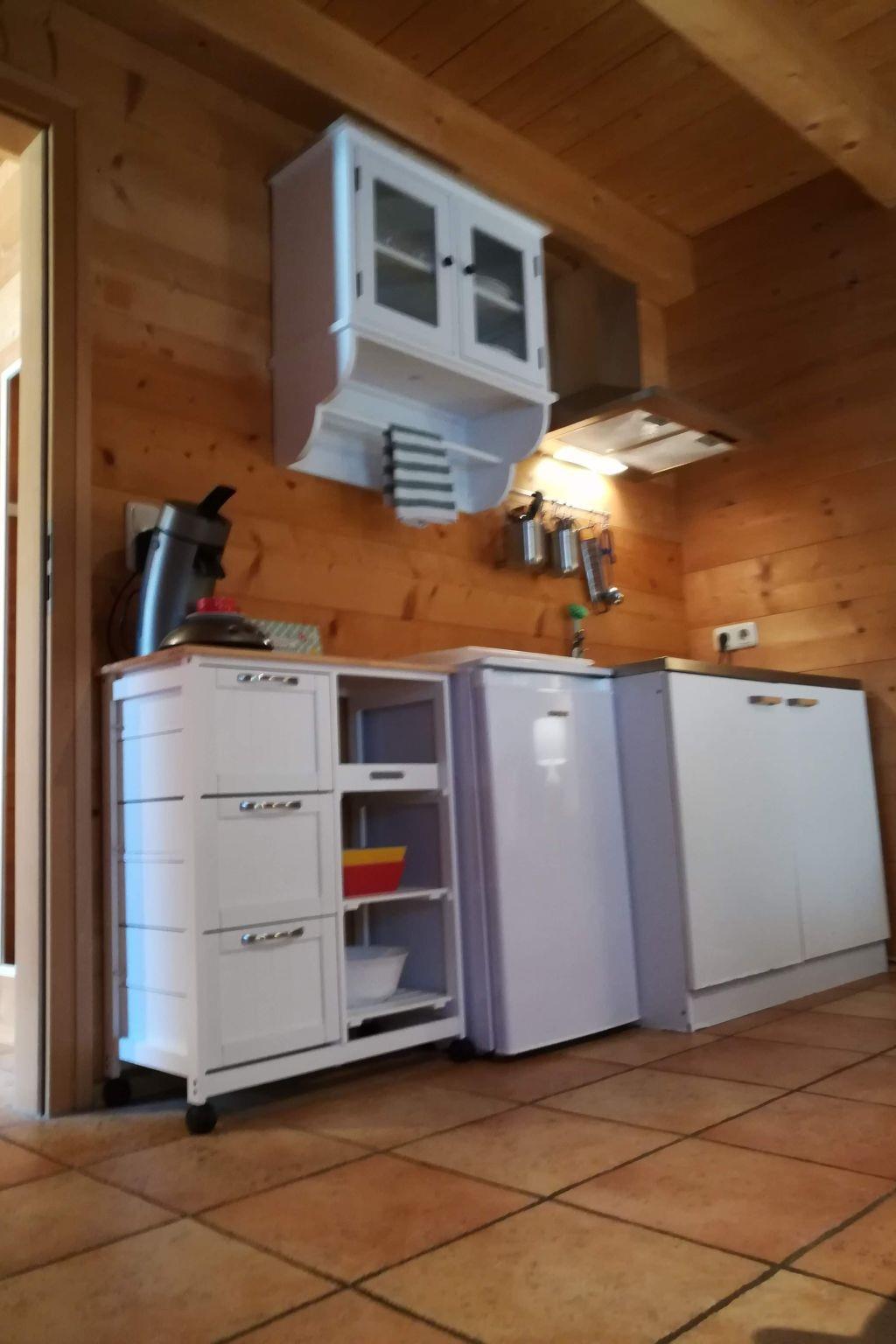 The studio contains a small kitchenette incl. kettle, fridge, microwave with baking function, a filter coffee machine and a Senseo coffee machine.