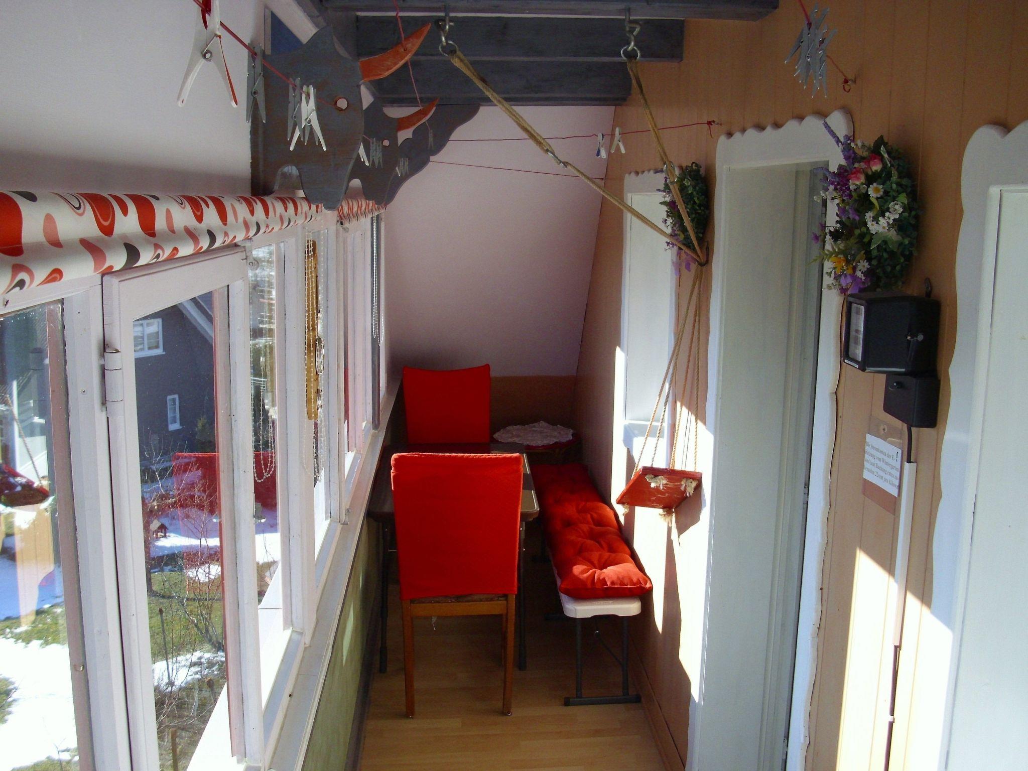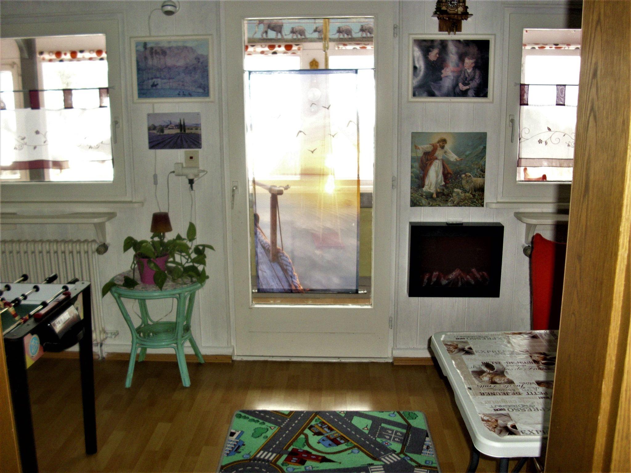 The unheated conservatory adjoining the living room, which is located on the south-east side of the flat, offers cosy seating and a swing for children. You also have the option of drying your laundry on a washing line here. A special atmosphere to relax and enjoy.