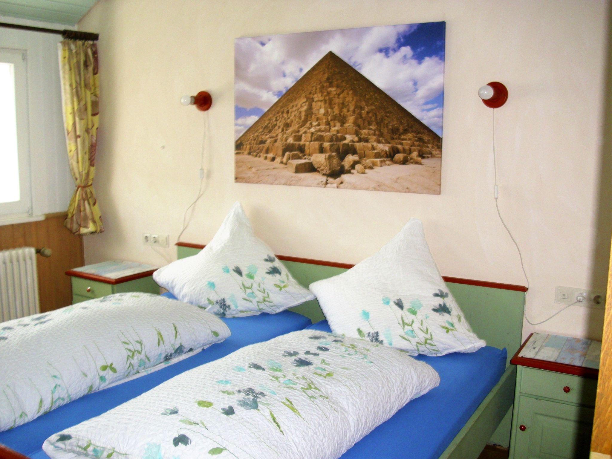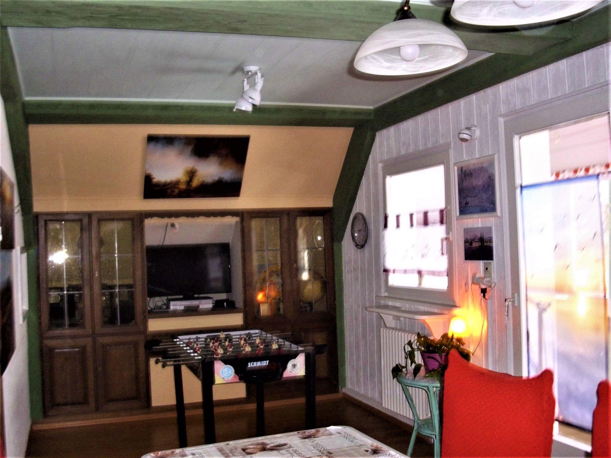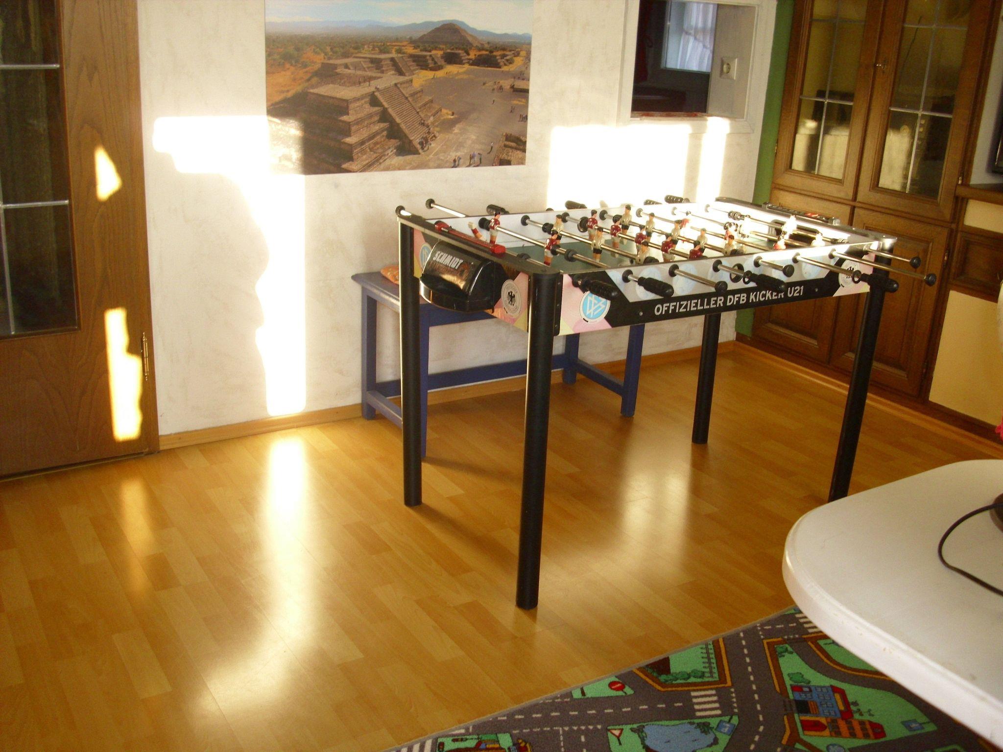 Inside the flat, you will find a tasteful interior that leaves nothing to be desired. Two bedrooms with double beds and an additional guest bed (190 x 80 cm) guarantee restful nights. A fully equipped kitchen with hob, oven, fridge with freezer compartment, toaster and kettle is ready to conjure up culinary delights. The spacious living room is furnished with a sofa, a bench, a dining table and chairs and invites you to linger with a football table, satellite TV, a hi-fi system, a record player and a DVD and VHS recorder. Here you will also find a selection of books, records, CDs, MCs, VHS and DVDs for entertaining hours.