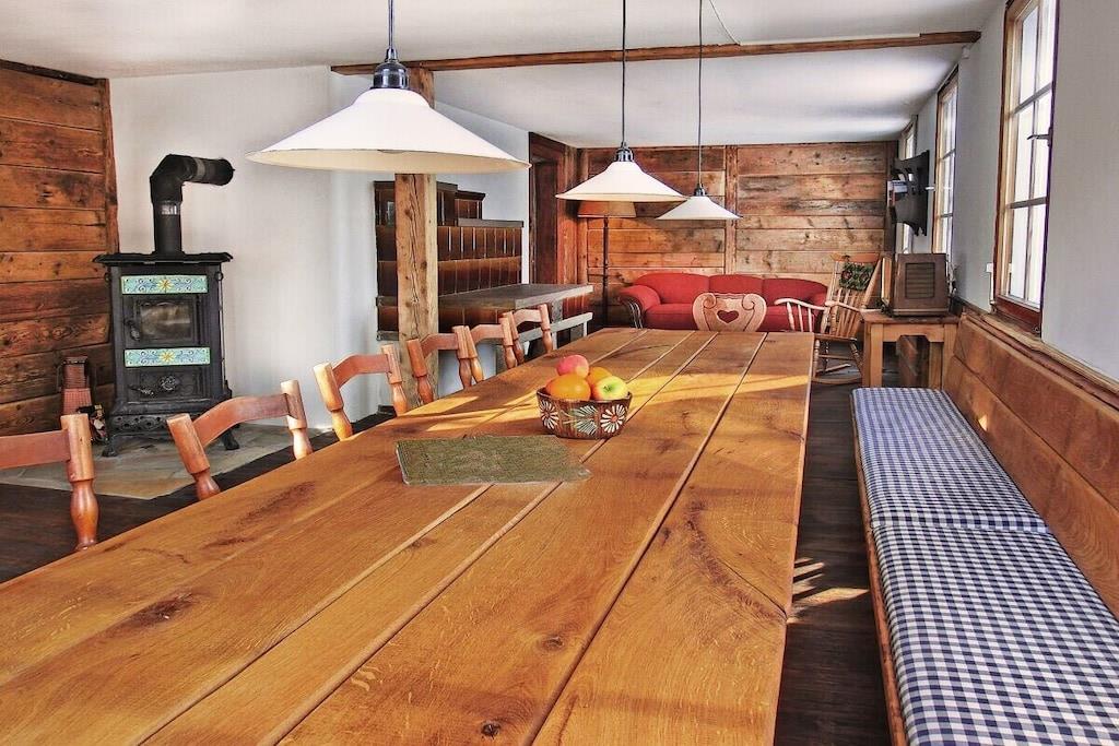 Når du træder ind i det rustikke Schwarzwald-bondehus i Bernau, vil du blive mødt af det varme lys, der strømmer gennem de gamle trævinduer og oplyser trævæggene. Duften af træ gennemsyrer luften, da det tidligere bondehus med den tilstødende kostald er et rustikt træhus i Bernau med de typiske Schwarzwald-spån som en varm beklædning og mange gamle trævægge indeni. Det dufter af gran og fyr. Schwarzwald-bondehuset er ideelt til afslappende dage, da du finder 7 himmelske soveværelser med dobbeltsenge (med plads til 14) fordelt på tre etager, samt 2 rummelige bondestuer og et bondekøkken, der tilbyder romantisk komfort til en uforglemmelig sammenkomst i idylliske, historiske omgivelser.