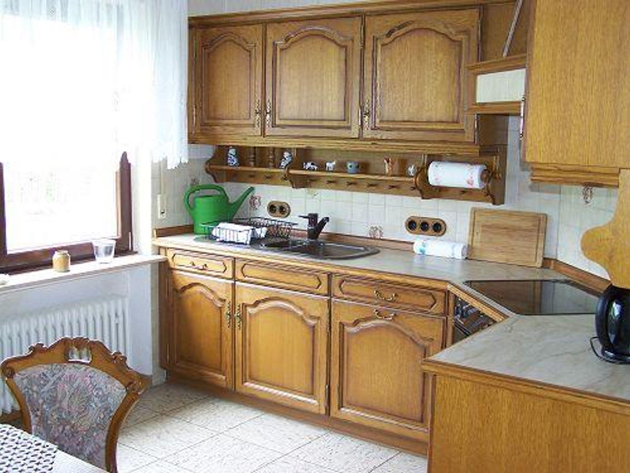 * die Küche ist ca. 15 qm groß und eingerichtet mit Einbauküche, E-Herd, Backofen, Kaffeemaschine, Wasserkocher, und Brotmaschine.