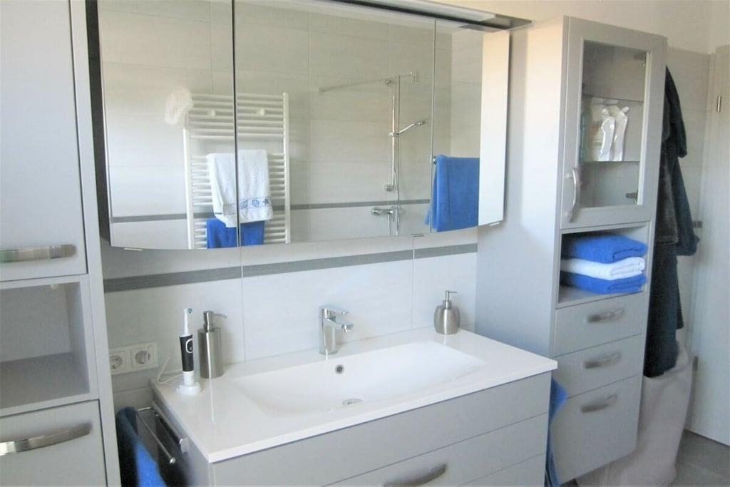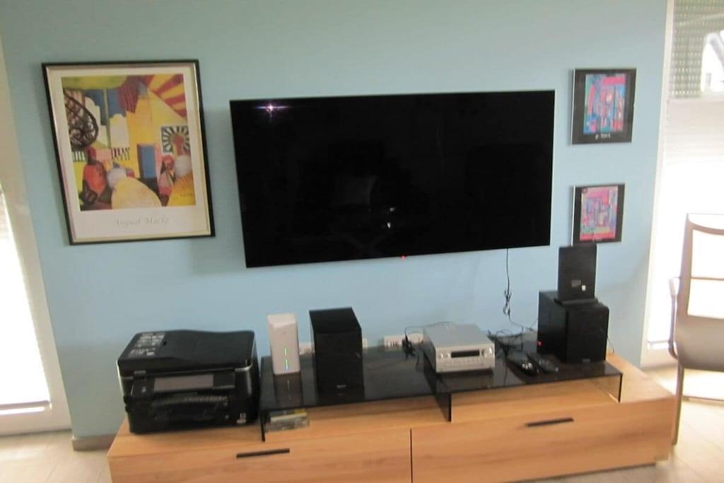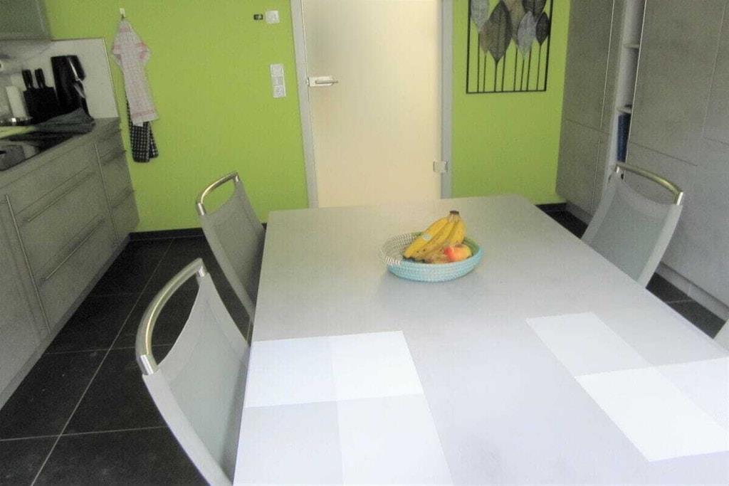 Stueetage: (entre(, , varme), Stue(, , , toilet, bibliotek, Fjernsyn, DVD-afspiller, Blu-ray afspiller, radio, CD-afspiller, stereoanlæg, varme), Køkken(, , , , spisebord, kakkelovn, kogeplade, kogeplade, elkedel, brødrister, komfur, kaffemaskine, ovn, mikrobølgeovn, opvaskemaskine , køleskab, fryser, varme), soveværelse(, , dobbeltseng, Fjernsyn, varme), badeværelse(, toilet, bruser, håndvask, varme), guest toilet(, toilet, håndvask, varme), pulterkammer(, strygebræt, strygejern)) Mellemetage: (drying room(tørretumbler, vaskemaskine)) , , , Internetadgang, Internetadgang, Førstehjælp, varme, terrasse(, havemøbler), have(Græsplæne), parkering, strygebræt, strygejern, tørreskab