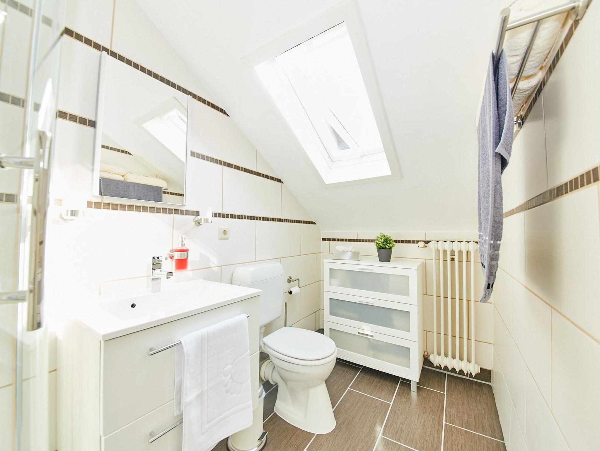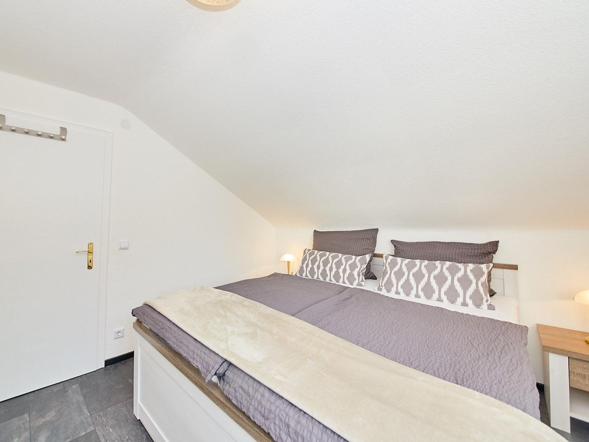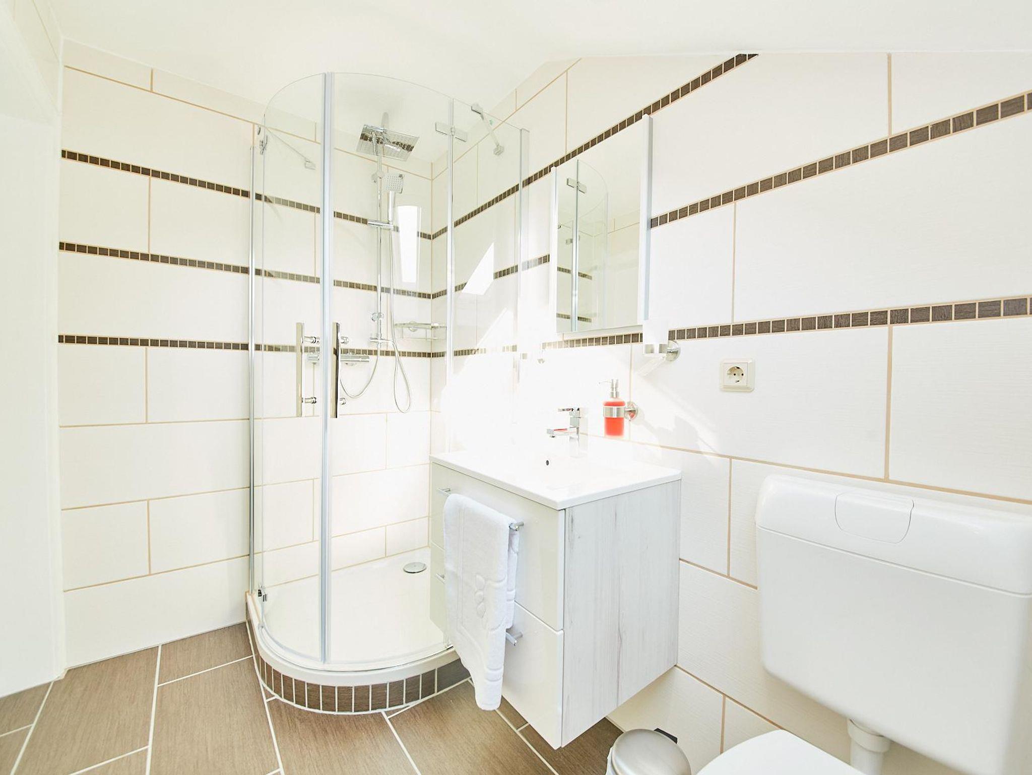 Die Wohnung verfügt über ein Duschbad mit WC, das direkt an ein Schlafzimmer mit gemütlichen Doppelbett (180 x 200 m ) anschließt. Zusätzlich steht ein zweites Schlafzimmer mit einem französischen Bett ( 140 x 200 m ) zur Verfügung.