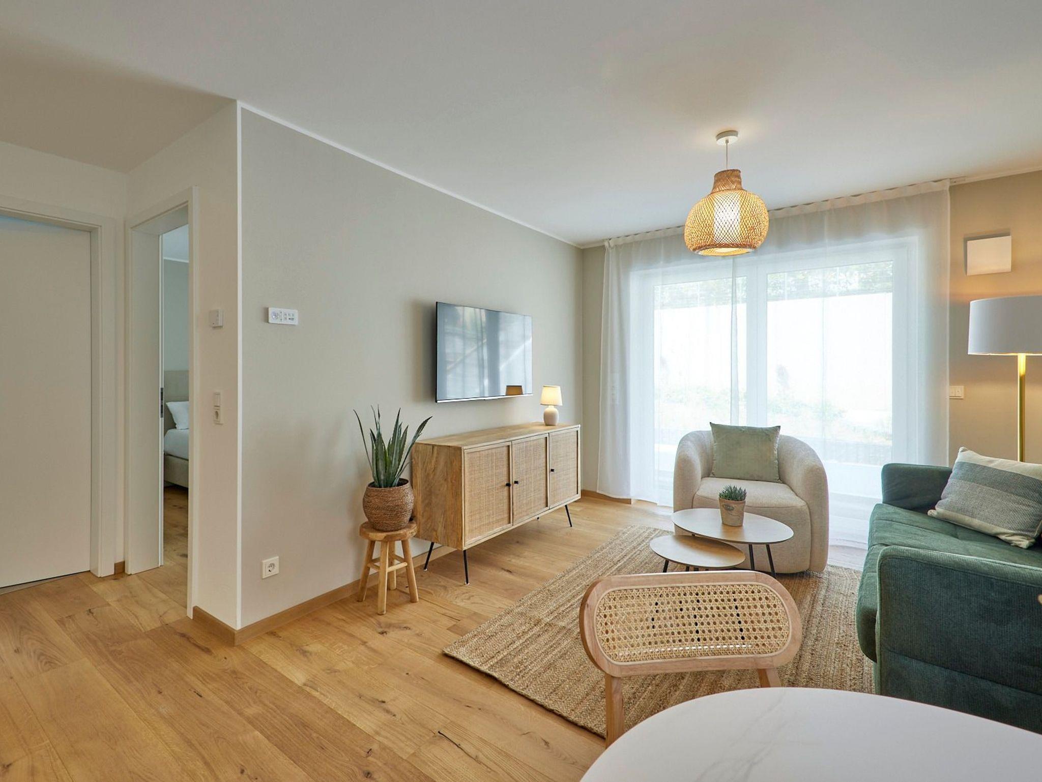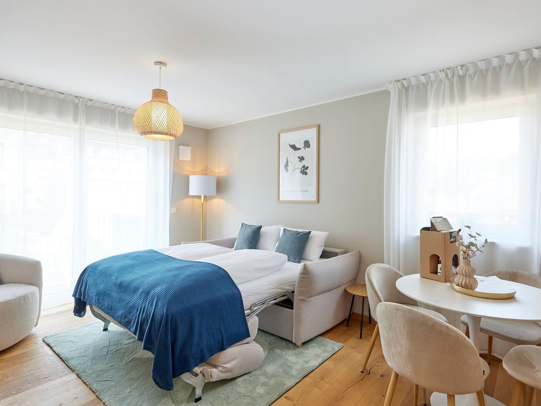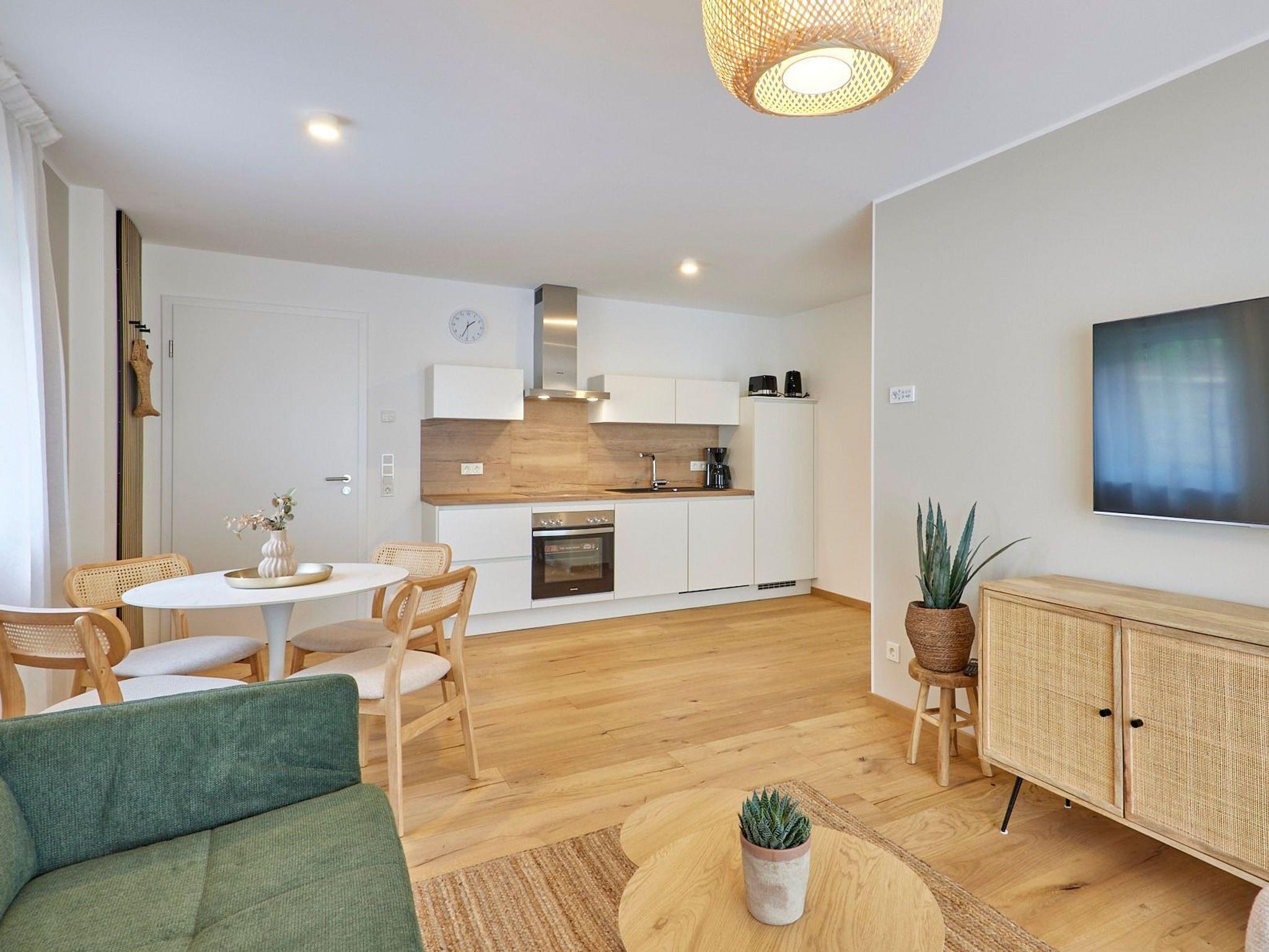 · Hochwertige Ausstattung: Echtholzböden, gemütliche Boxspringbetten, eine voll ausgestattete Küche, ein großes, exklusives Bad, kostenloses W-LAN und ein moderner Flatscreen-Smart-TV sorgen für ein topmodernes Wohnambiente.