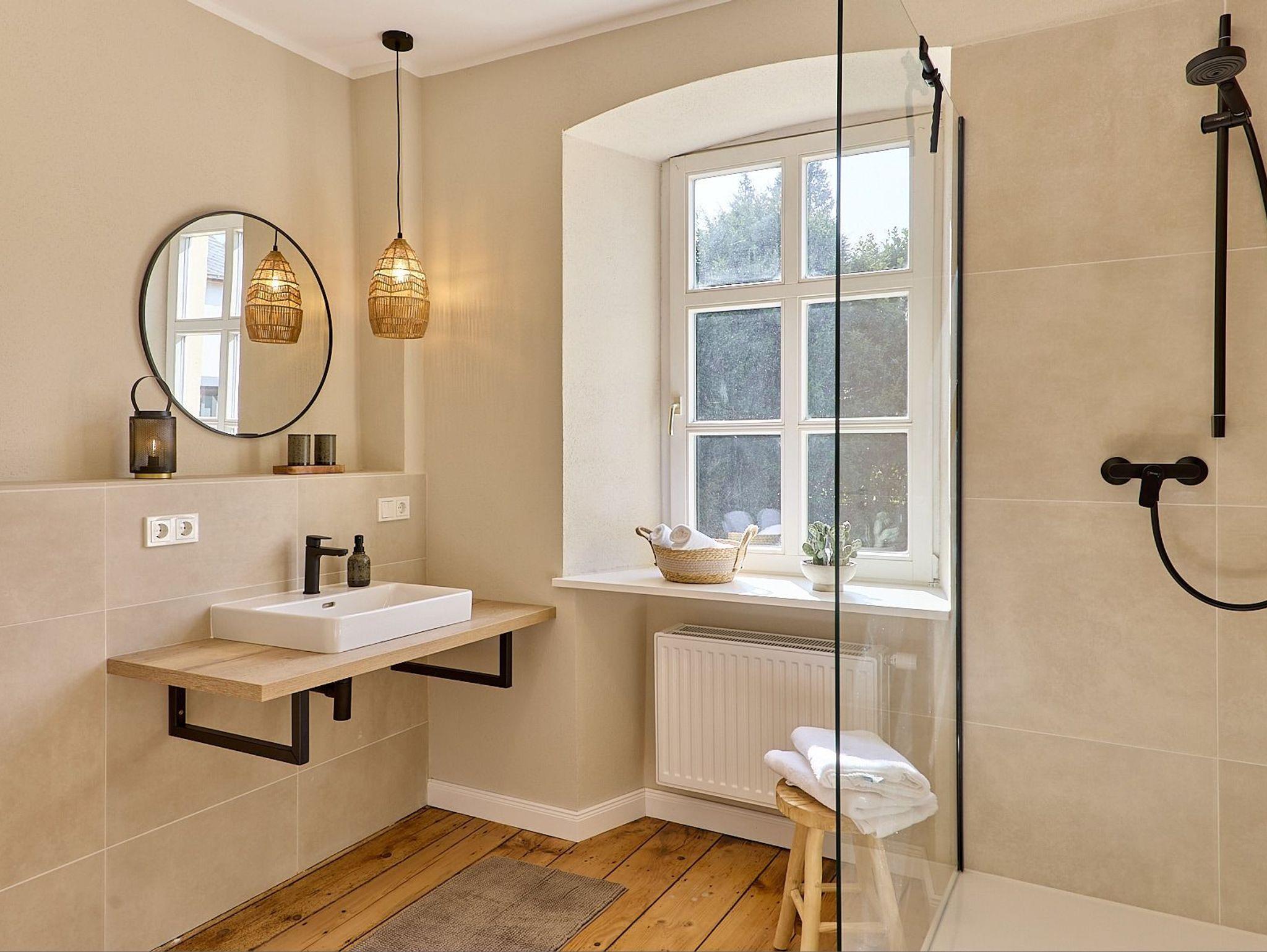 exklusives Bad und den offene gemütliche Wohnraum mit gemütlicher