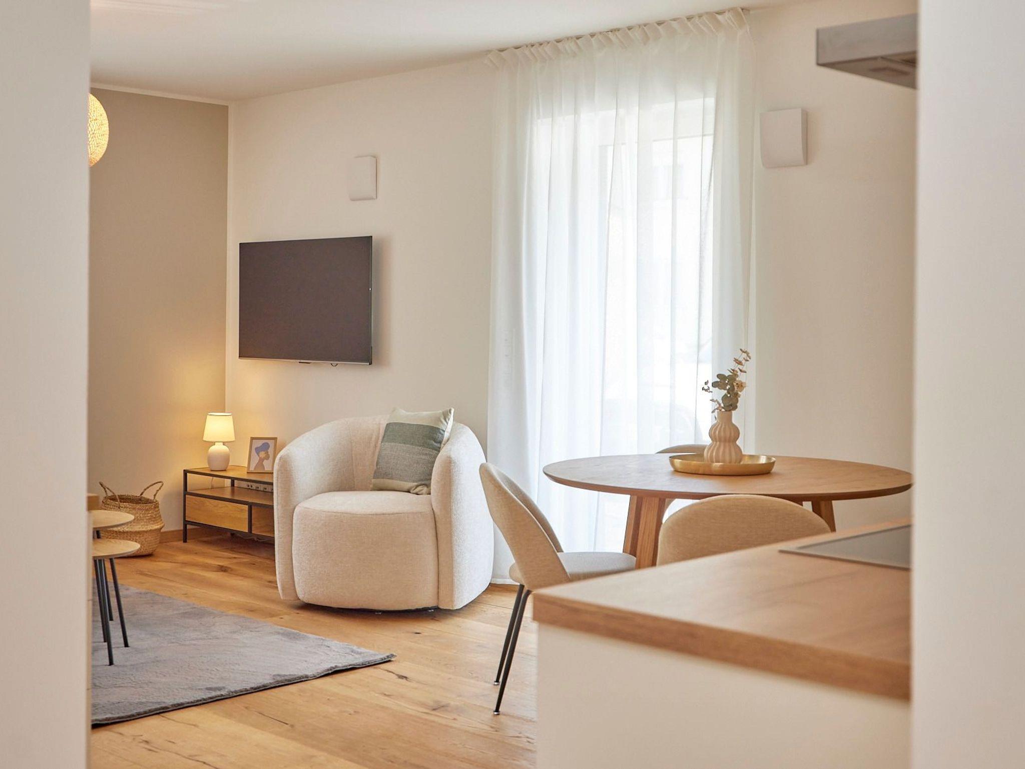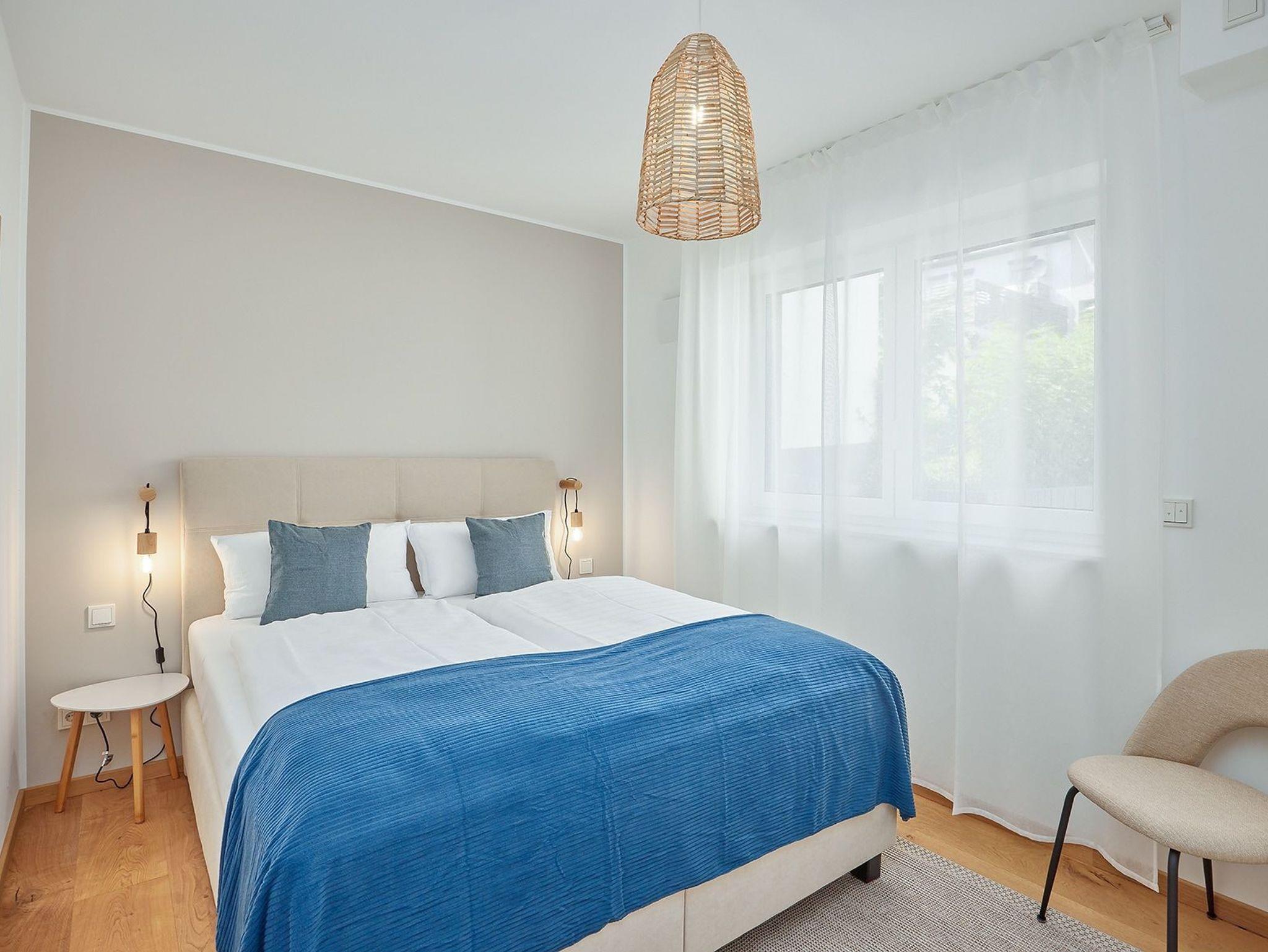 · Hochwertige Ausstattung: Echtholzböden, gemütliche Boxspringbetten, eine voll ausgestattete Küche, ein großes, exklusives Bad, kostenloses W-LAN und ein moderner Flatscreen-Smart-TV sorgen für ein topmodernes Wohnambiente.