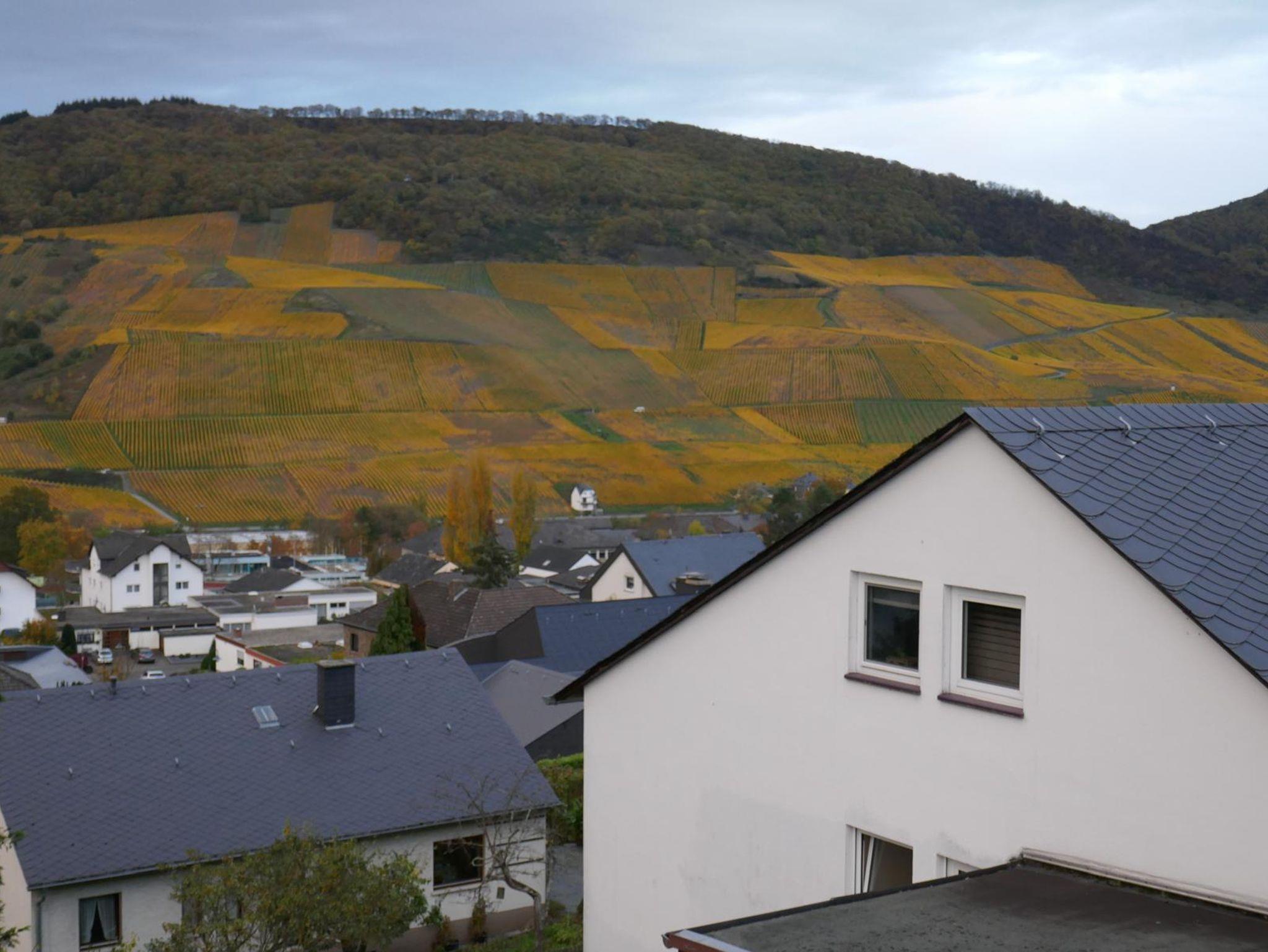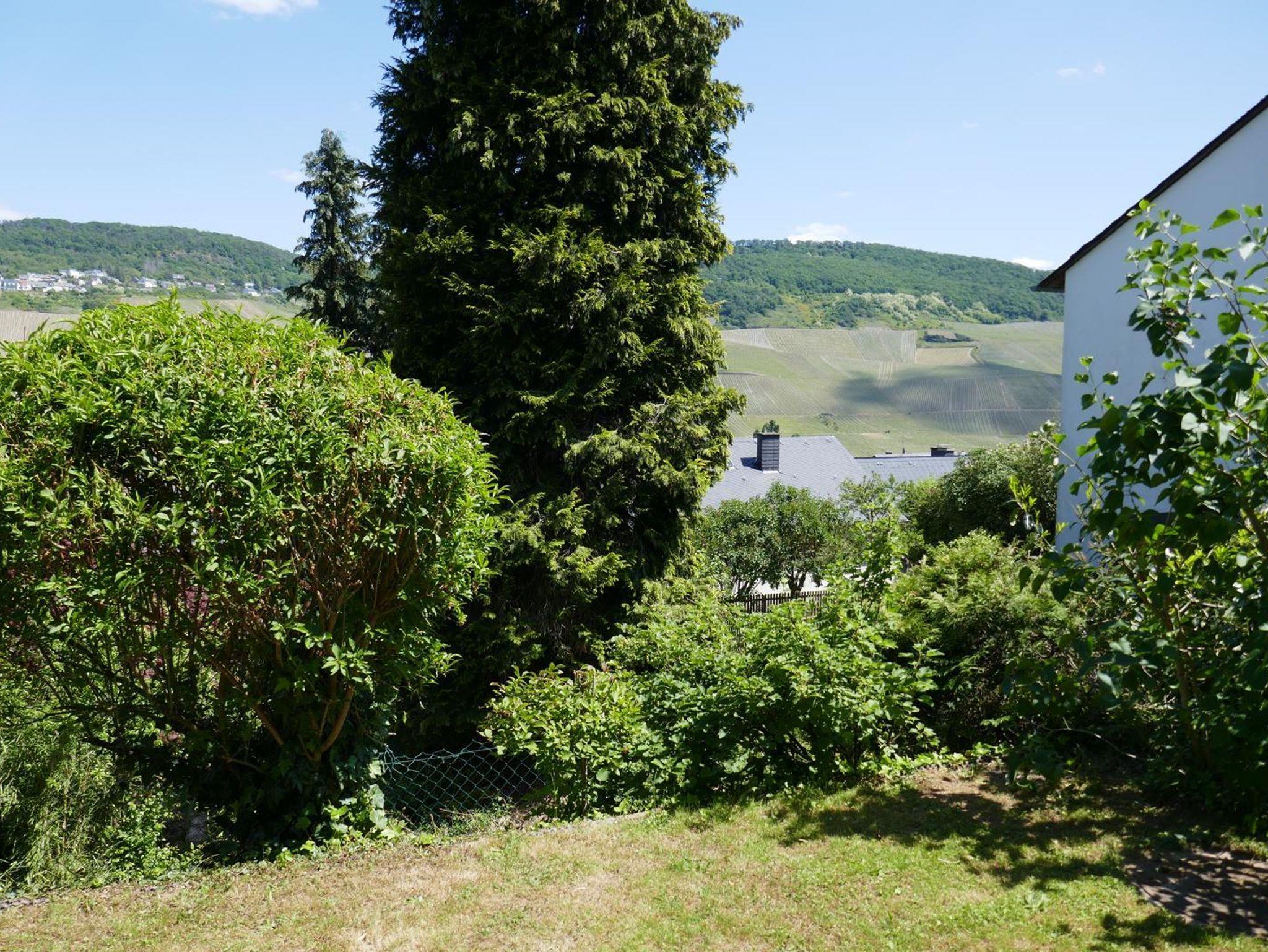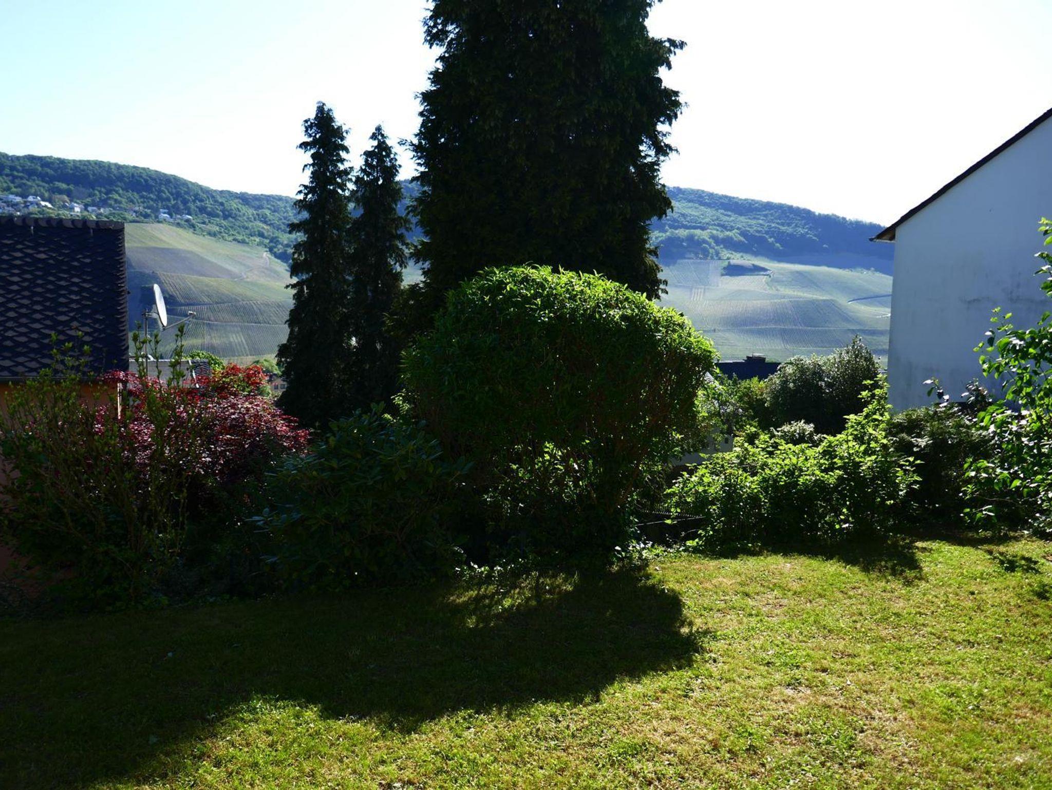 Vom Wohnzimmer und der Terrasse hat man einen schönen Blick auf die Weinberge der gegenüberliegenden Moselseite.