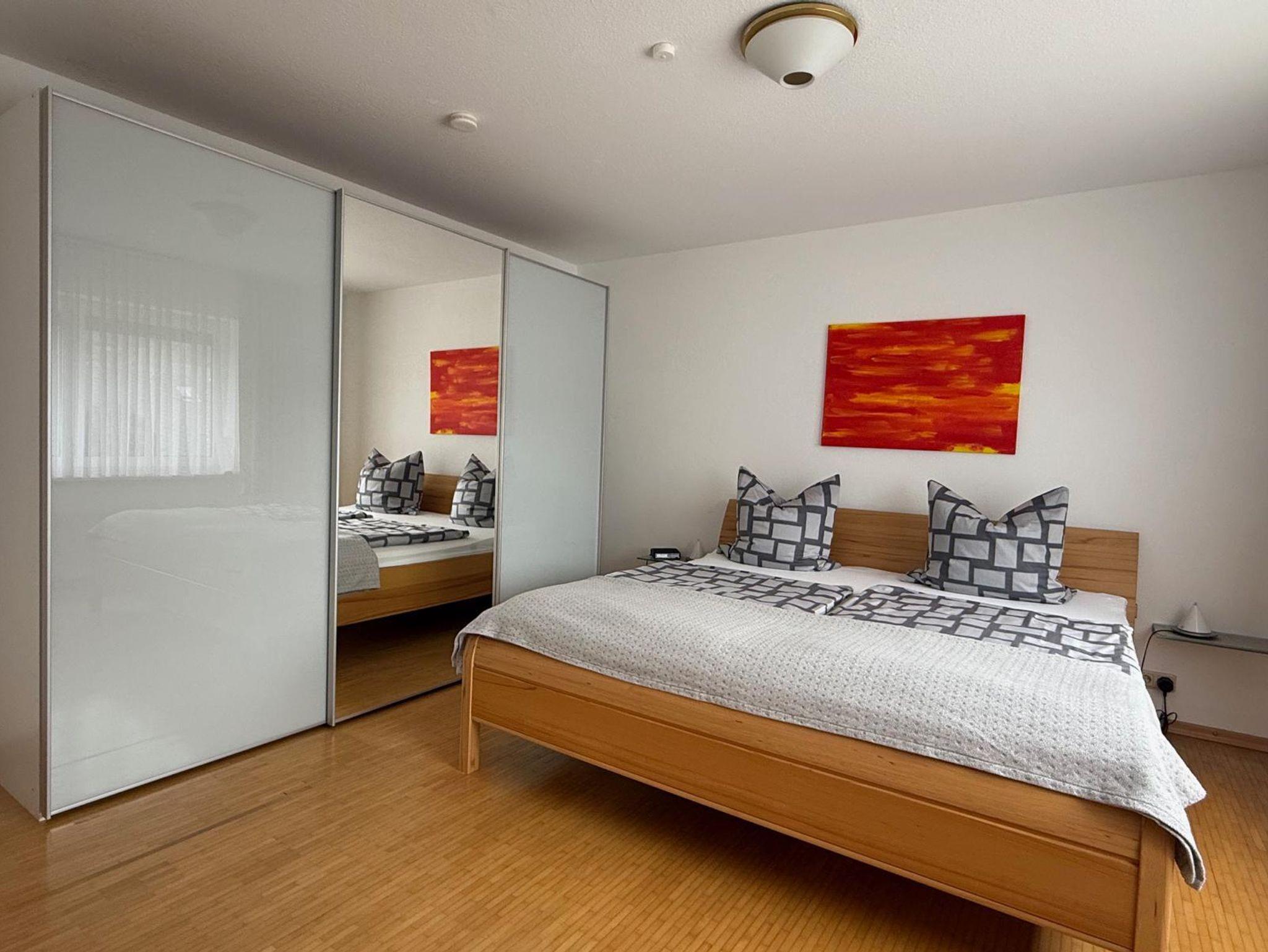 Die qualitativ sehr hochwertig und modern neu eingerichtete Ferienwohnung befindet sich im unteren Zwischengeschoß unseres Einfamilienhauses. Sie verfügt über einen separaten Eingang und eigenem Gartenbereich mit überdachter Terrasse. Die Wohnung ist ausgestattet mit einer komplett eingerichteten Küche, einem großen Wohnzimmer mit Fernseher, einem modernen Badezimmer mit Dusche, sowie zwei Schlafzimmern (1 x Doppelbett-, 1 x Einzelbett). Fahrräder können in der Garage untergestellt werden; Lademöglichkeit ist vorhanden.