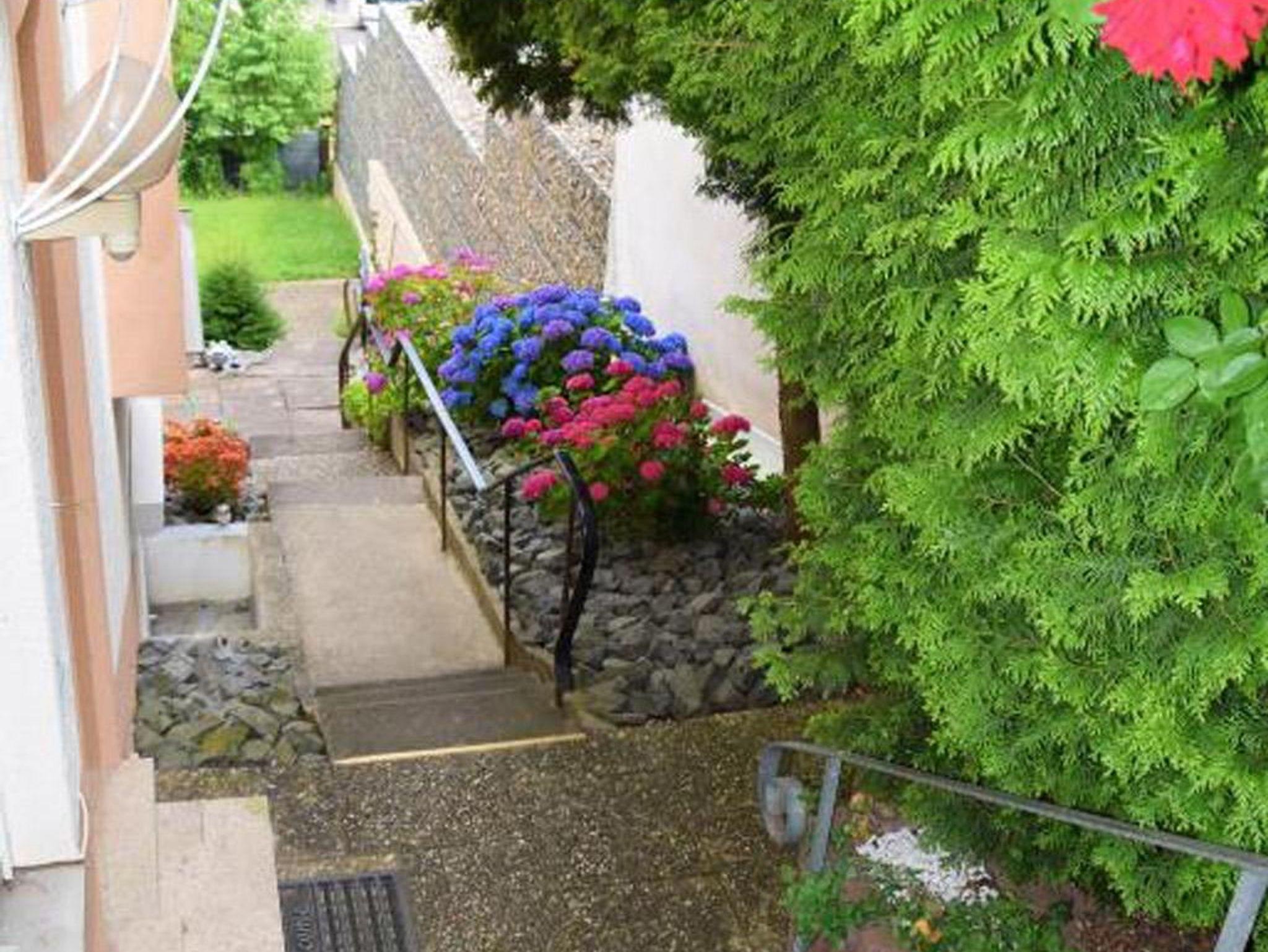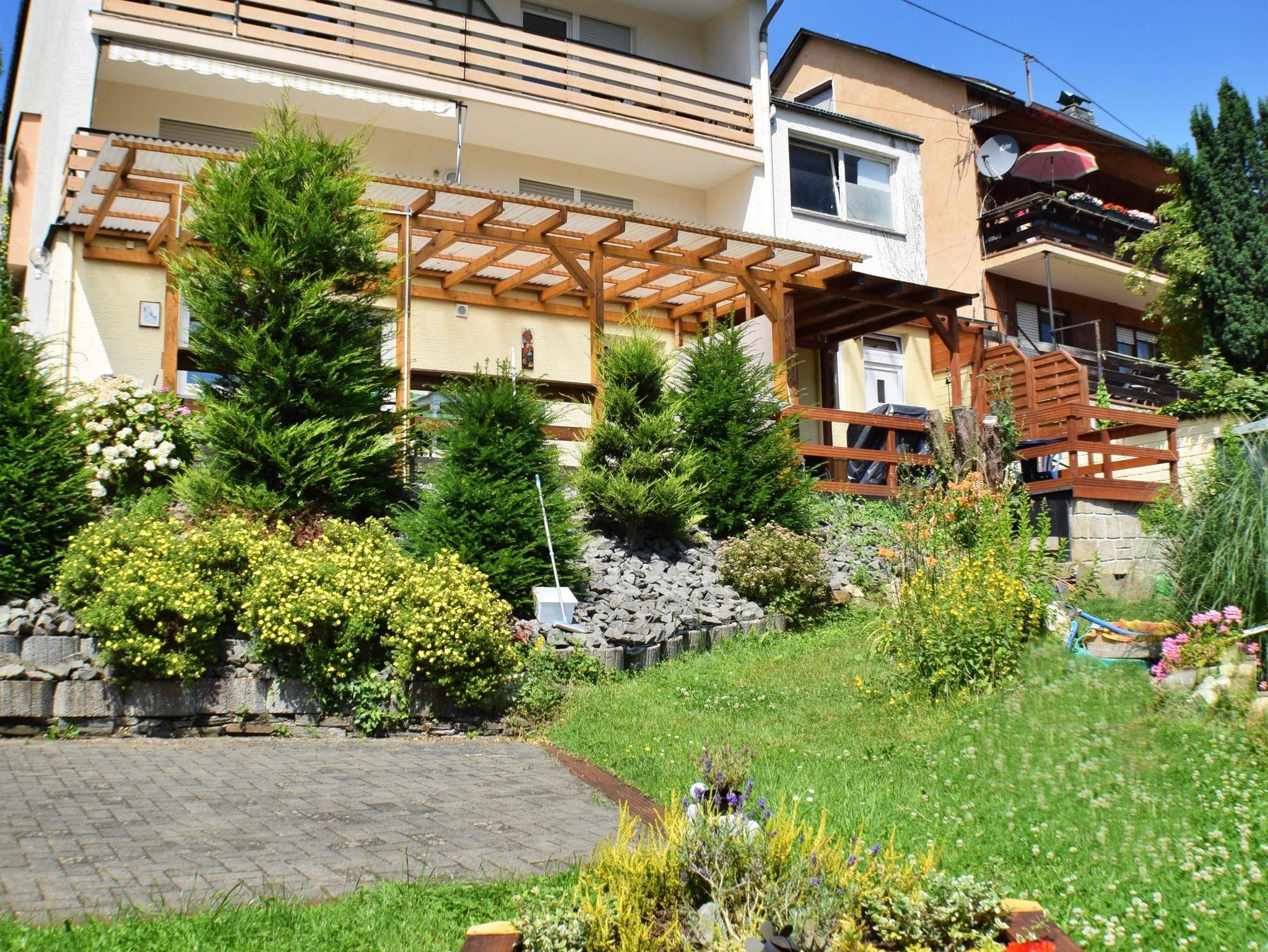 Willkommen in unserer Ferienwohnung, die Ihnen einen entspannten und erholsamen Aufenthalt bietet. Die Wohnung verfügt über einen eigenen Eingang, der über die Treppe erreichbar ist, die hinunter in den Garten führt. Von dort aus gelangen Sie auf die großzügige Terrasse mit Gartenblick.
