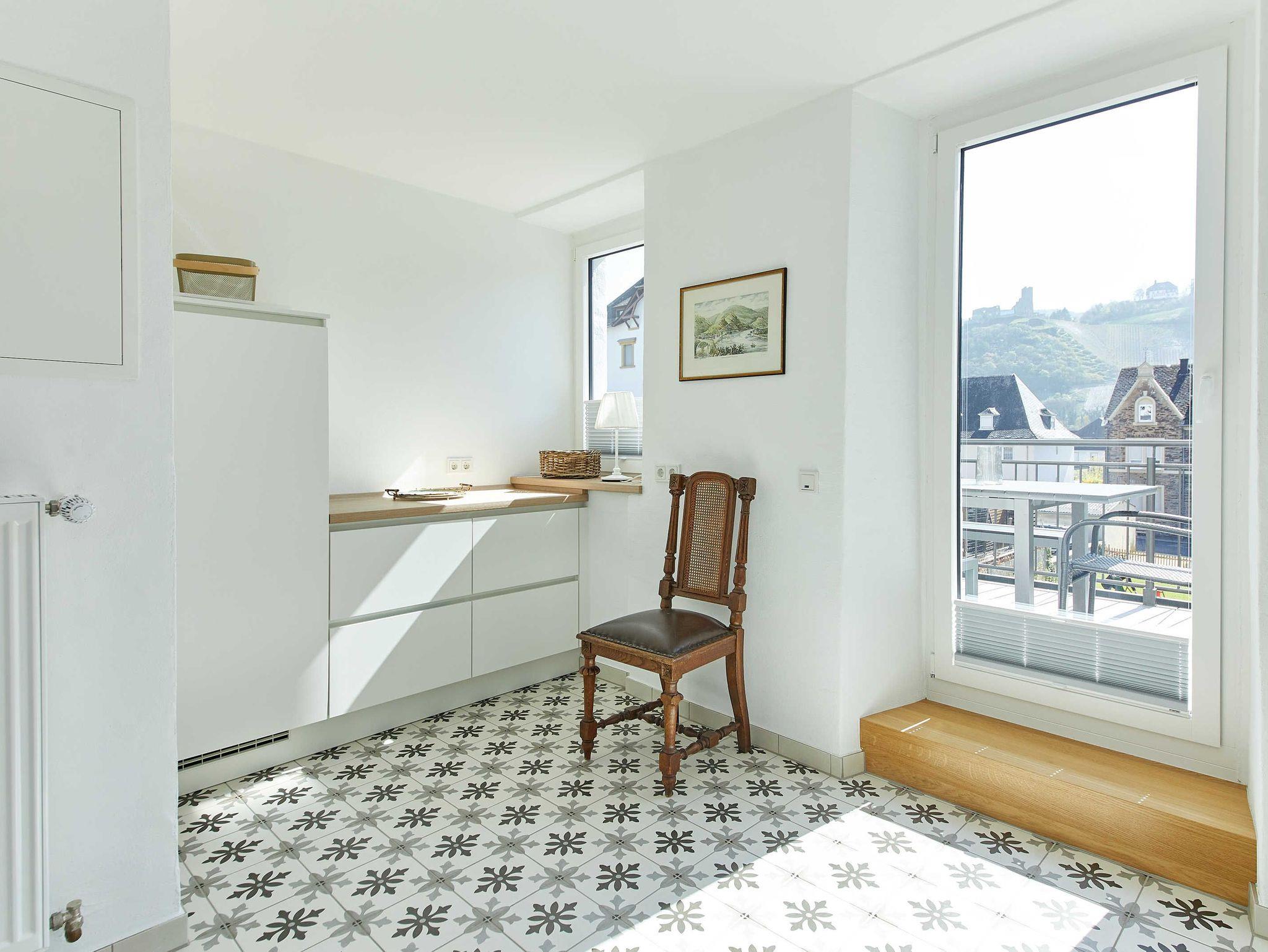 Das alte Bruchsteinhaus im Stadtteil Kues wurde liebevoll renoviert und aufgearbeitet. Die alten Dielenböden und die original Holztreppe wurden aufwändig restauriert, die Fliesen in Küche und Flur sind den Originalfliesen des ehemaligen Winzerhauses nachempfunden. Der Mix hochwertiger Ausstattung sowie antiken Möbeln und moderner Einrichtung geben dem Haus einen ganz besonderen Charme.