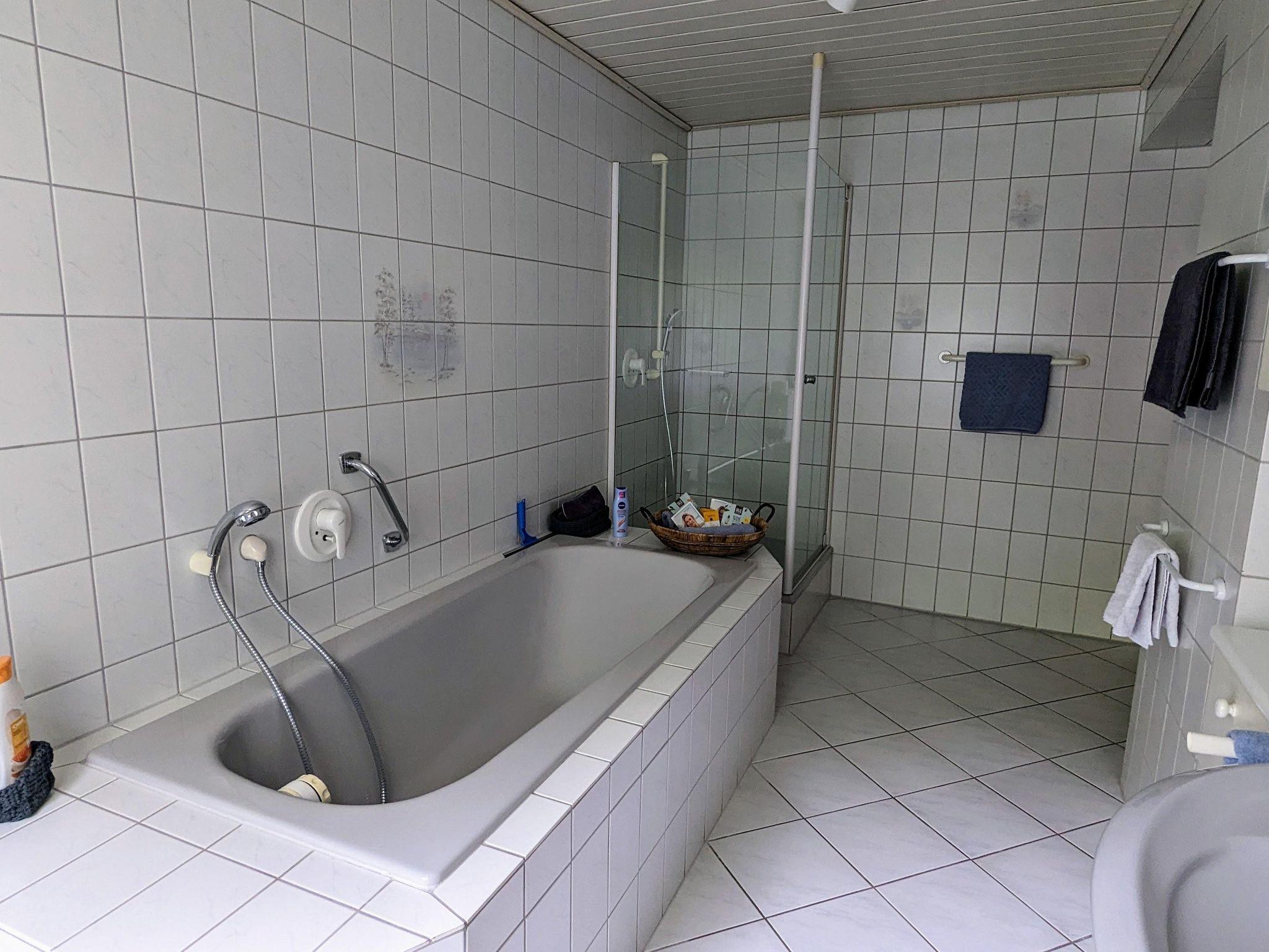 Die über einen seperaten Eingang erreichbare Ferienwohnung verfügt über ein Wohnzimmer mit Essbereich, 1 Schlafzimmer, 1 Küche sowie ein großzügiges Bad mit einer Dusche und einer schönen Badewanne.