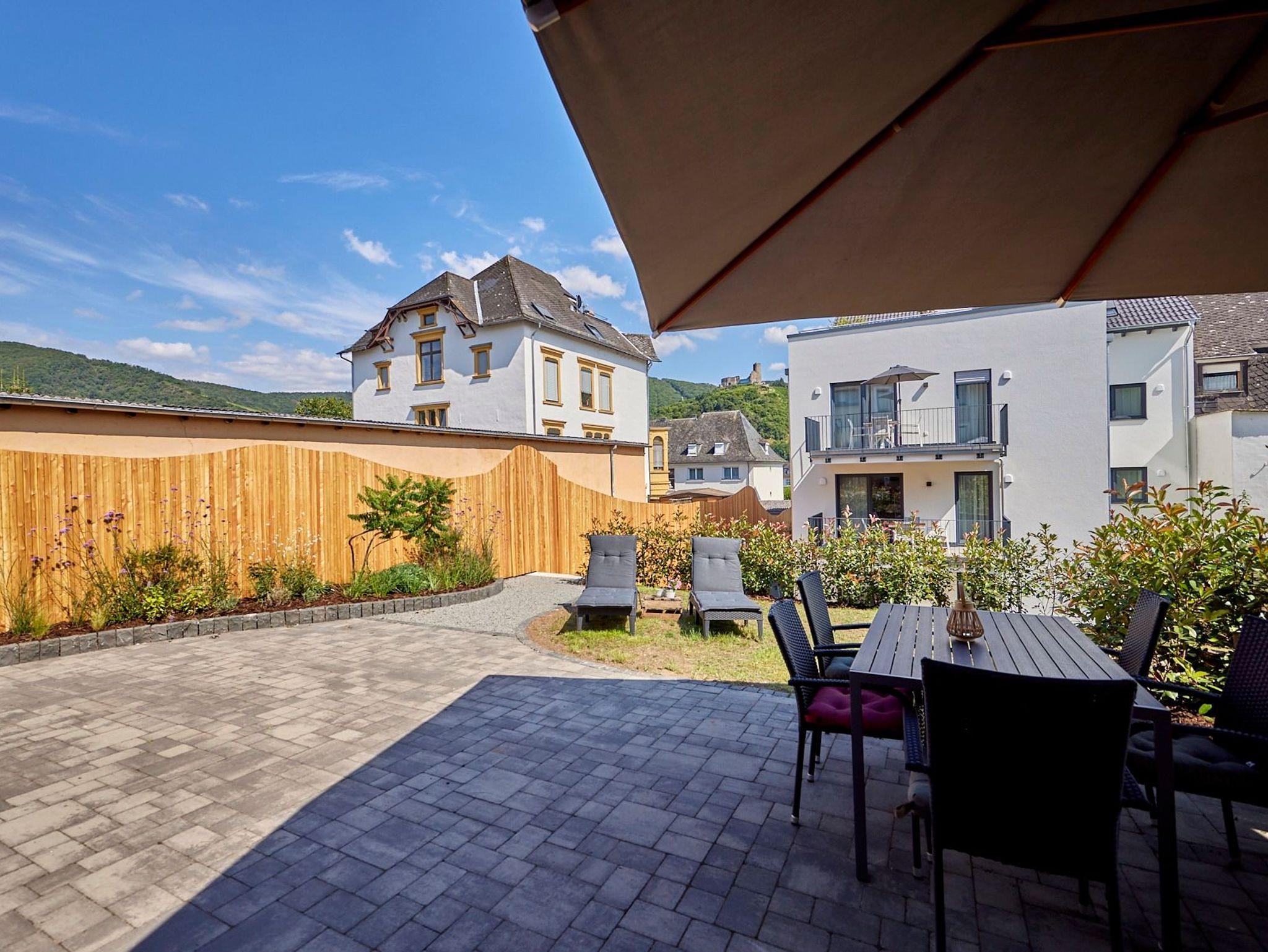 Zum Feriendomizil gehört der idyllische Innenhof des ehemaligen Weinguts mit Sitz- und Grillmöglichkeiten und einem phantastischen Blick auf Weinbergshänge und zur Burg Landshut. Das Winzerhaus in Bernkastel-Kues ist ein Ort für Familien und Freunde zum Krafttanken und Wohlfühlen von der ersten Minute an.