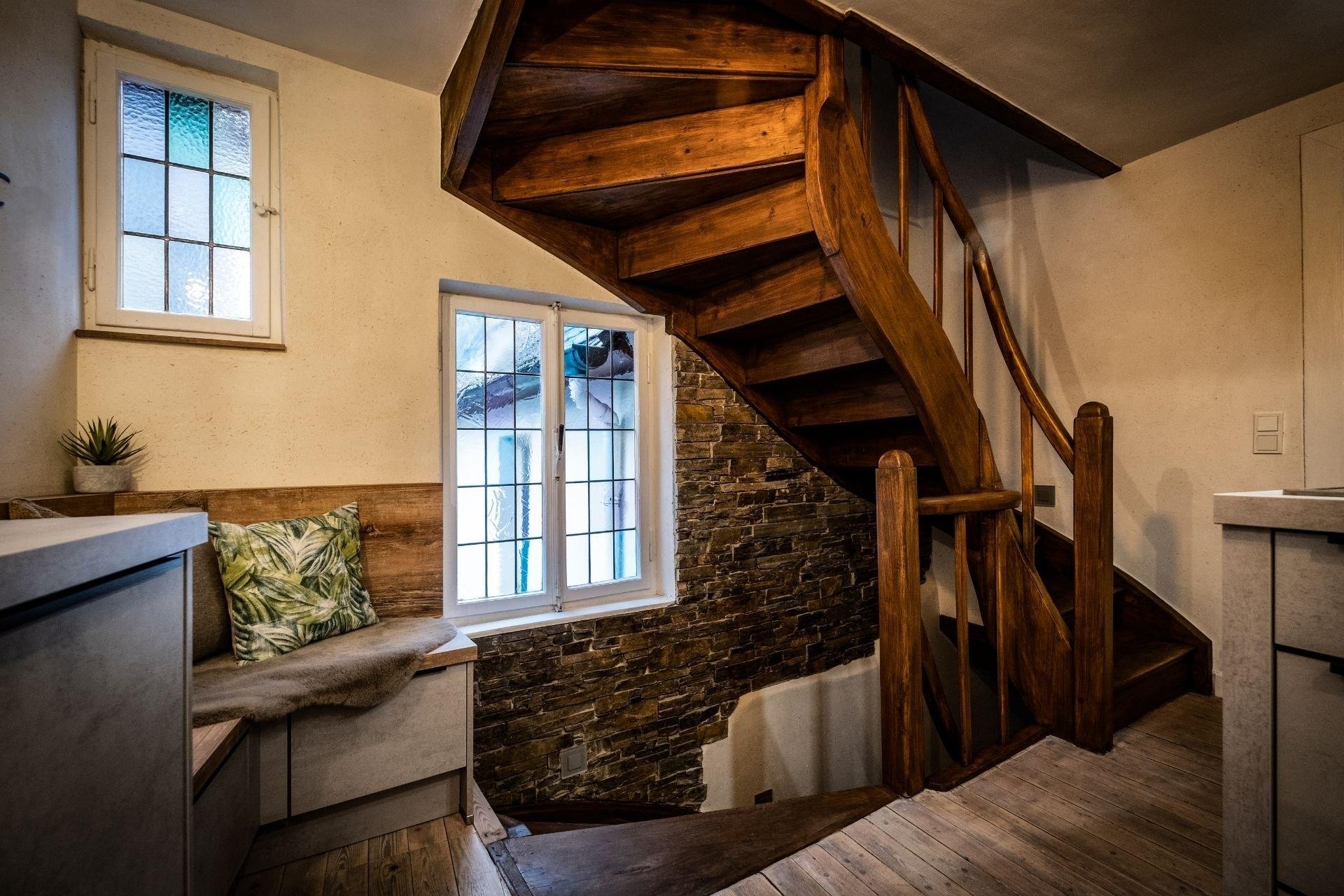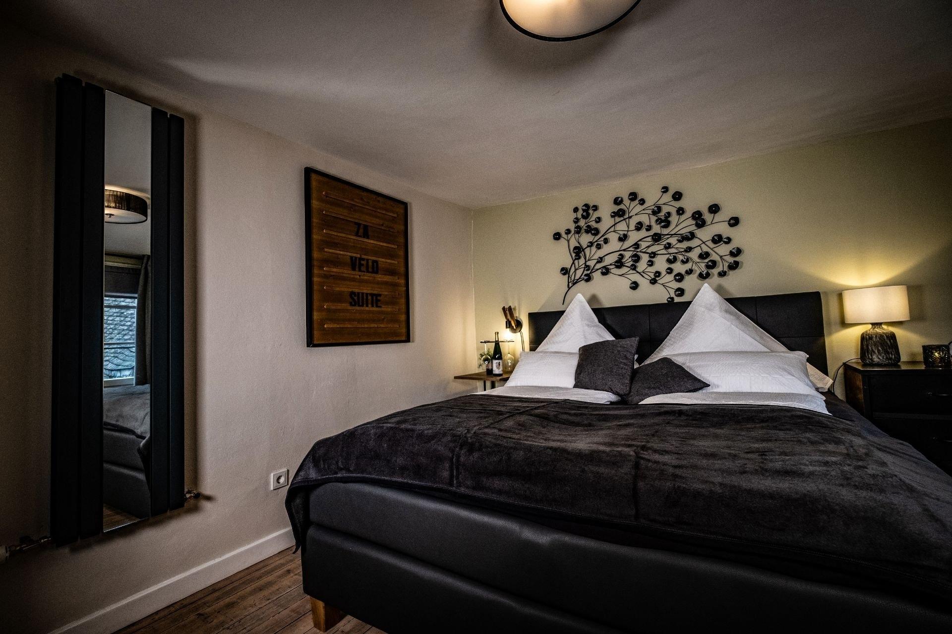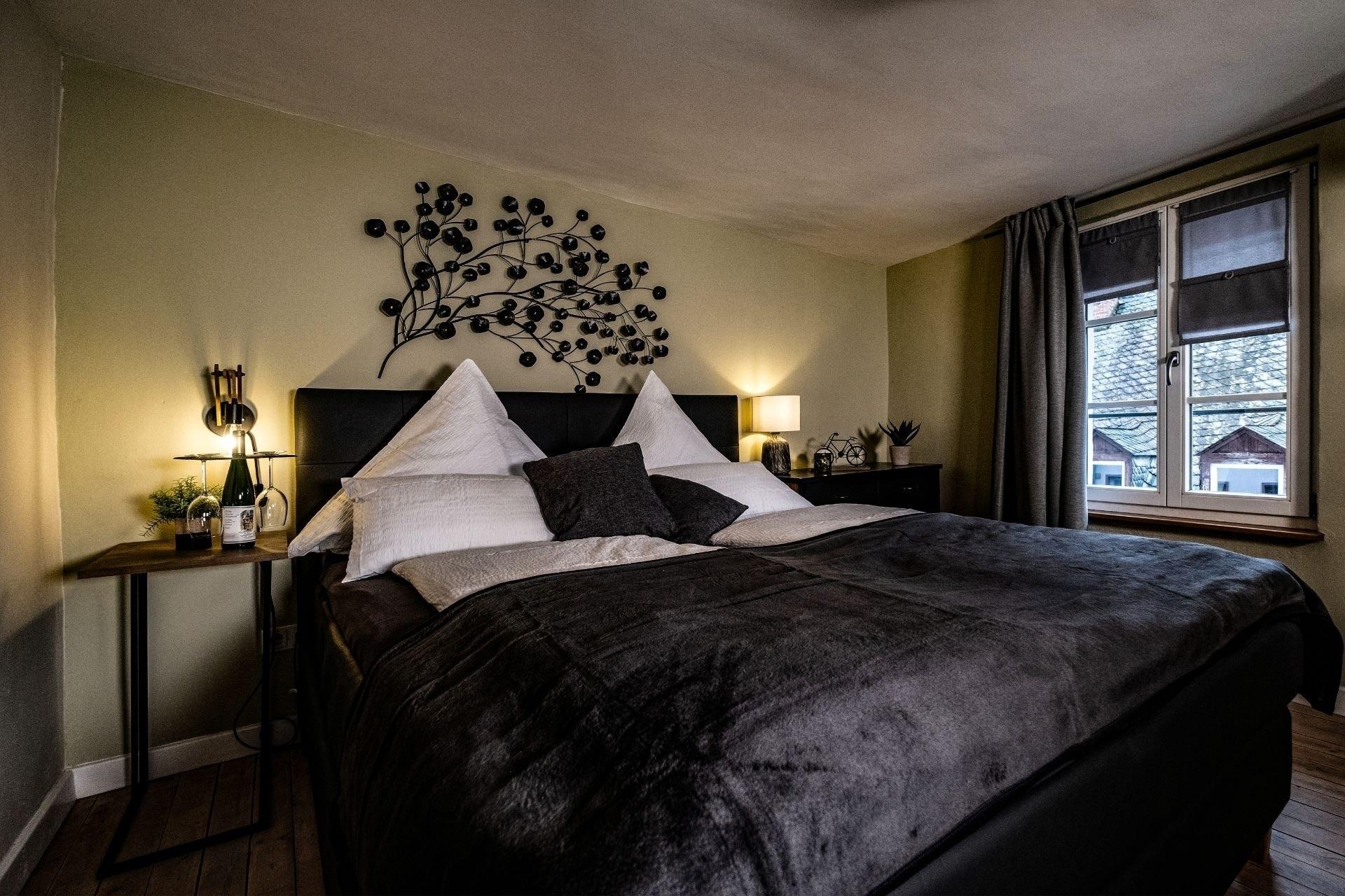 Die Suite 44 in Bernkastel-Kues für 4 Personen verfügt über 1 Schlafzimmer mit Bad, sowie ein weiteres Schlafzimmer mit separatem Badezimmer, einer Bio-Lehm-Sauna, Regendusche in jedem Badezimmer, einer Wohnküche und einen gemütlichen Wohn/Essbereich um die Abende bei einer Flasche Wein mit Freunden ausklingen zu lassen.Bei der Renovierung war es uns sehr wichtig den Charme des alten Gebäudes wirken zu lassen. Daher wurden ausschließlich Naturbaustoffen verwendet. Alle Wände sind mit Lehm verputzt und in mancher Wand sind kleine glitzernde Highlights eingearbeitet. Gehen Sie auf Entdeckungstour in unserem kleinen Stadthaus. Vielleicht entdecken Sie noch selber manche Besonderheiten.
